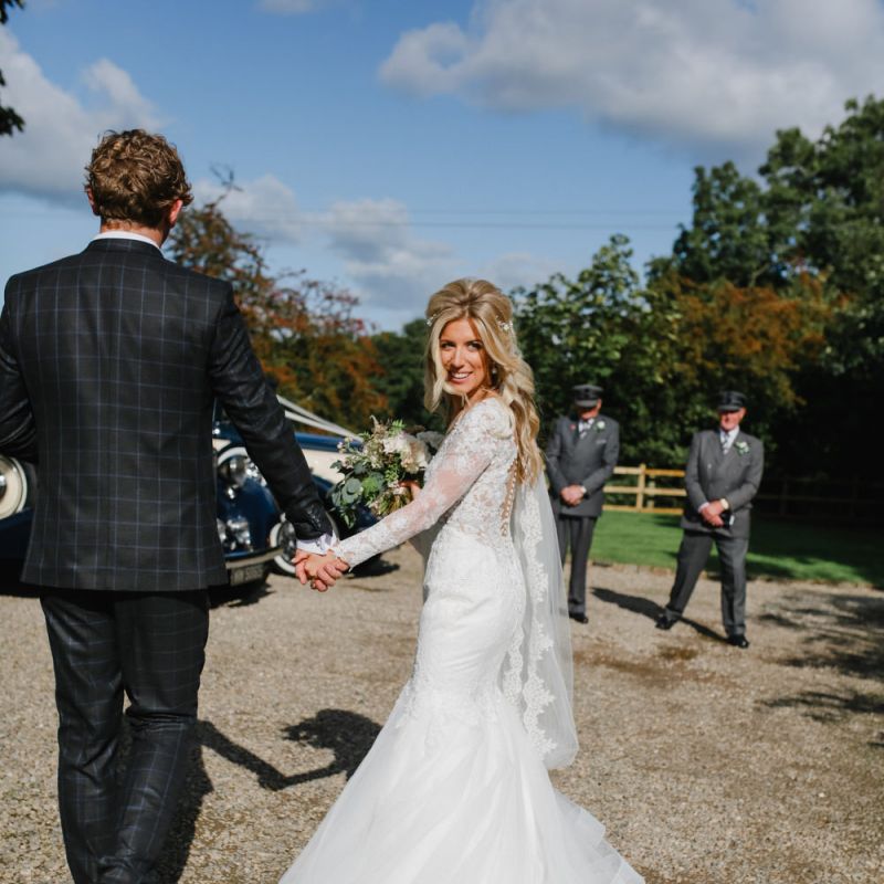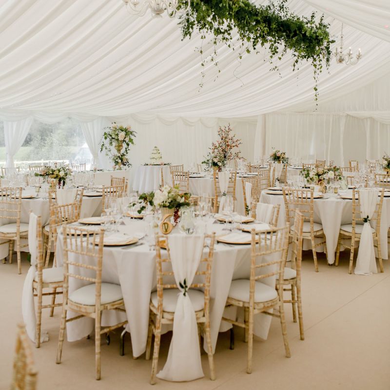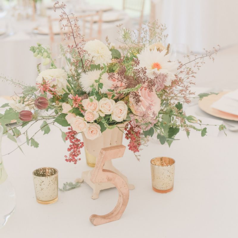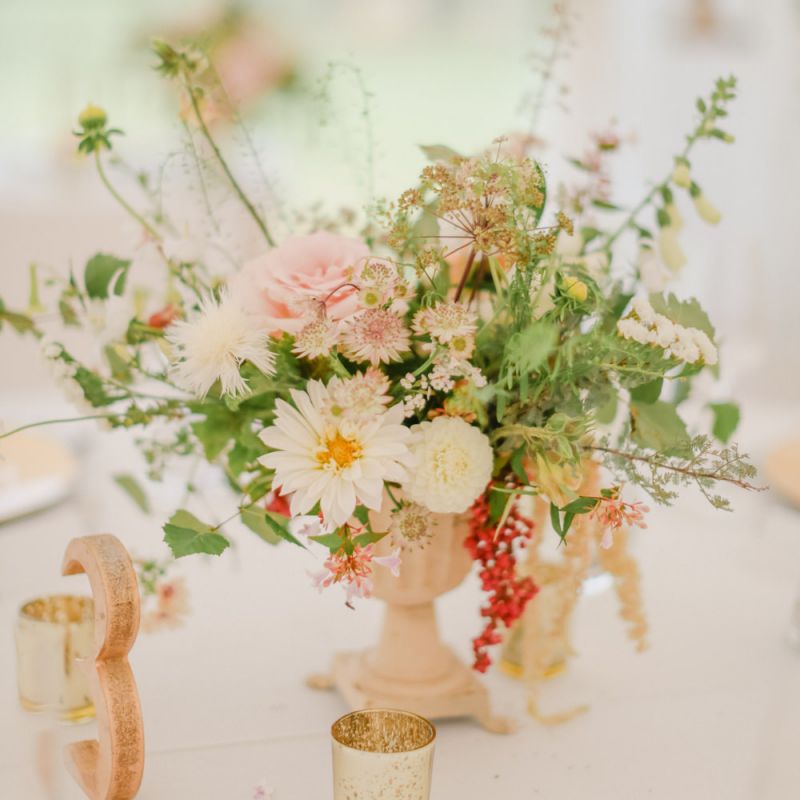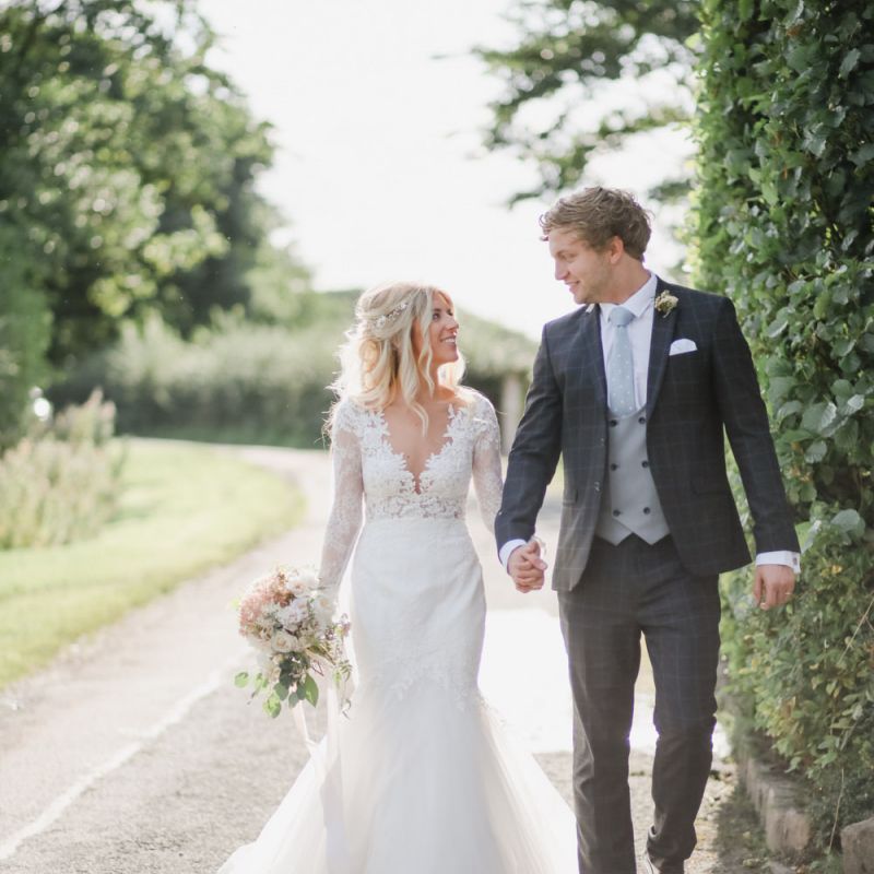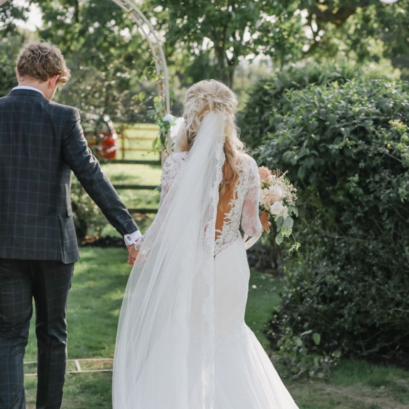 We wanted our wedding to be personal to us, with a marquee being a blank canvas we wanted the style and day to reflect us. We were set on a summer wedding, with lots of greenery, with the flowers being unstructured, ethereal, and wildflower. We wanted the colour palette to be quite neutral, with blush, whites and greens. With the location of my family home is set in the countryside, we wanted it to have a classic English summer vibe. Will designed the whole marquee layout, and helped design all our stationery too!!