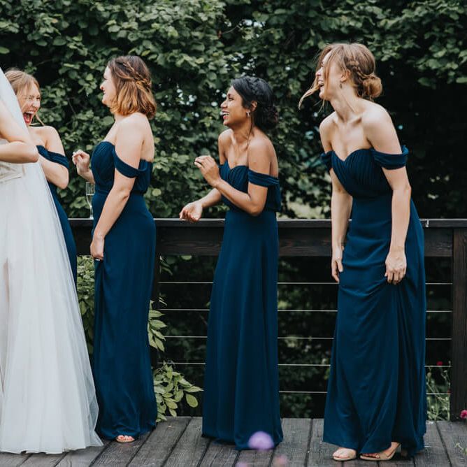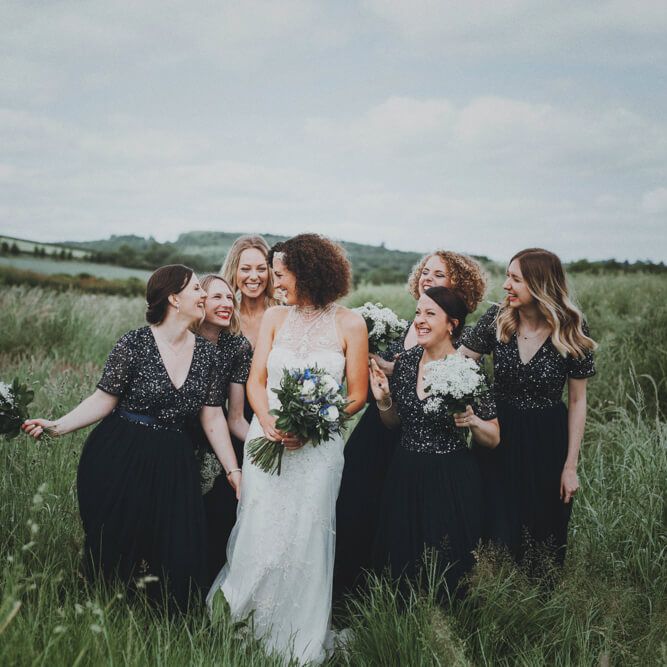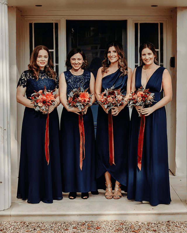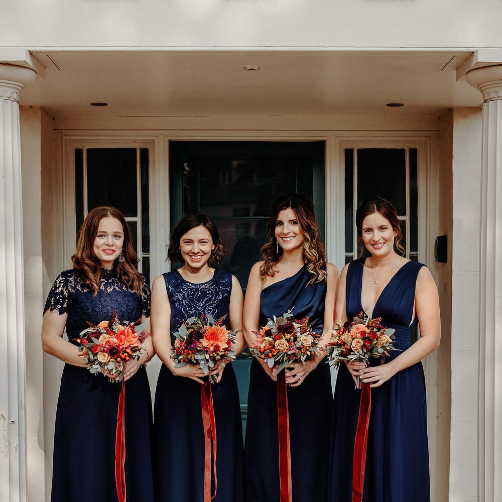 Black Bridesmaid Dresses At Autumn Wedding In East London