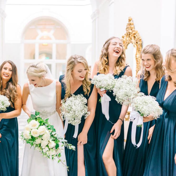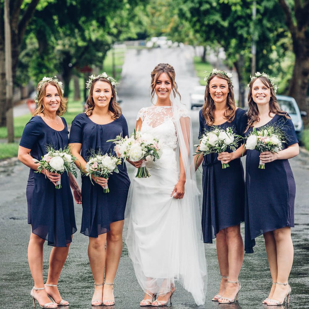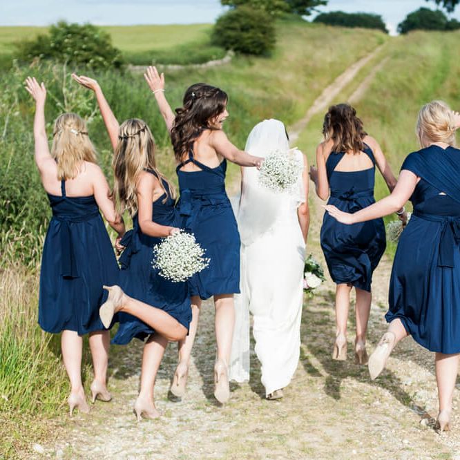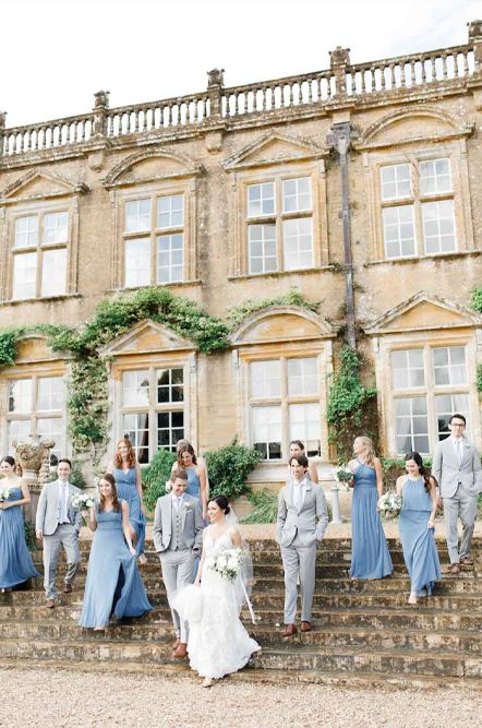 Blue Bridesmaid Dresses For Classic Wedding At Brympton House