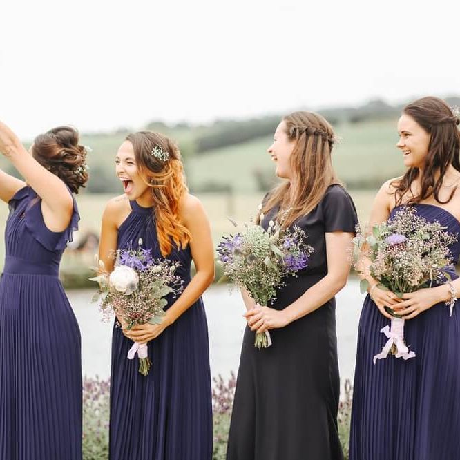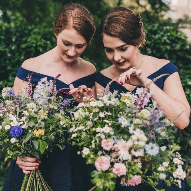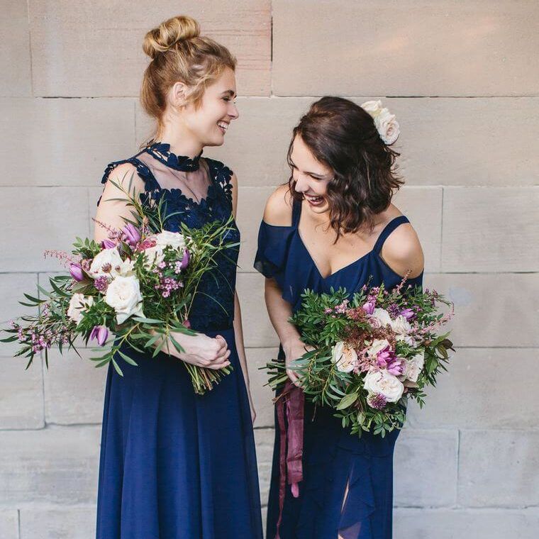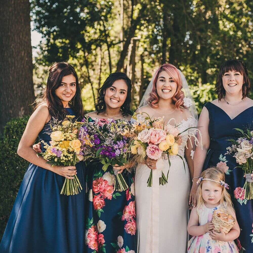 Blue Floral Bridesmaid Dresses with Wildflowers