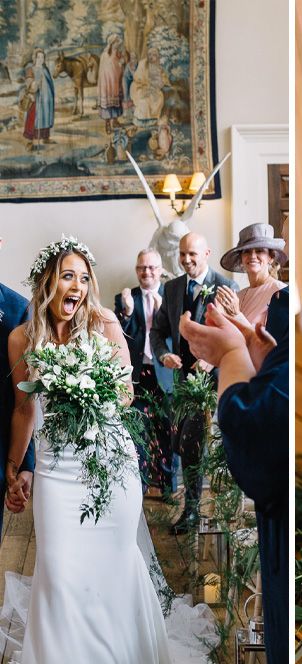 Elmore Court Wedding with Silver Mist TH&TH Bridesmaid Dresses and White and Green Wedding Flowers