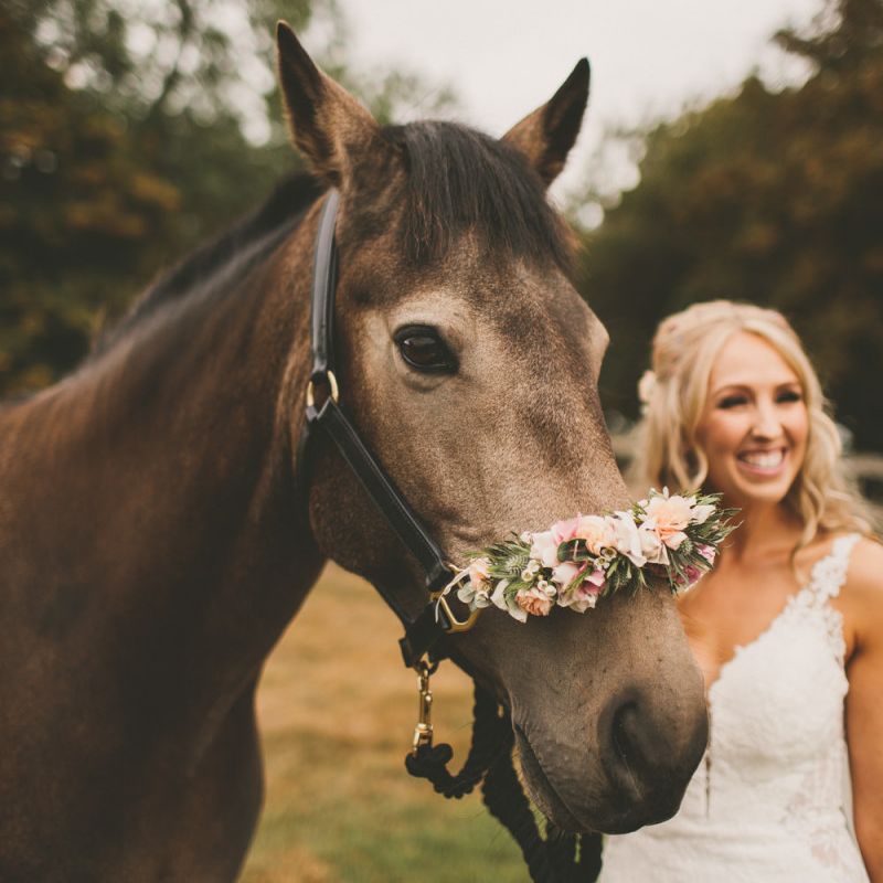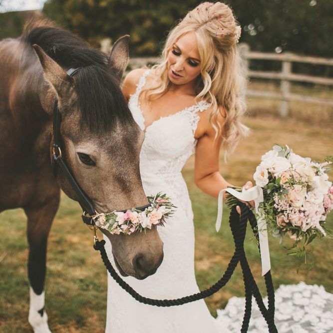 I think the addition of our furry family made our day really special and a bit different from others. We had our black labrador, Lyra walk down the aisle before me and sit in the church throughout the ceremony. After we were married and making our way across the field to the Barn for the reception, my horse Spencer greeted us and our guests and we had some amazing photos taken with them both and as a family!