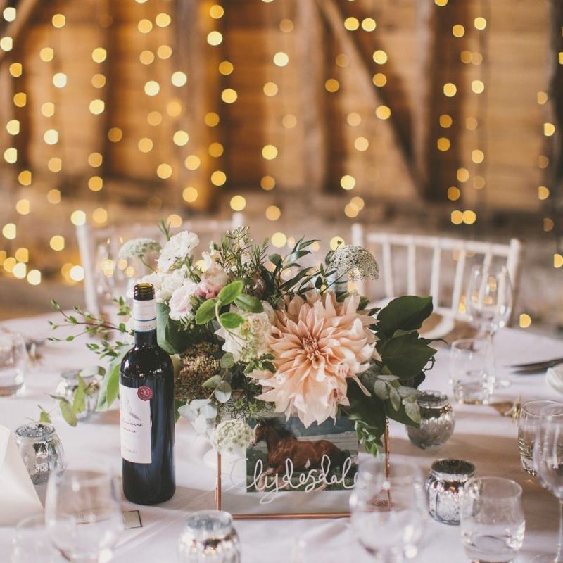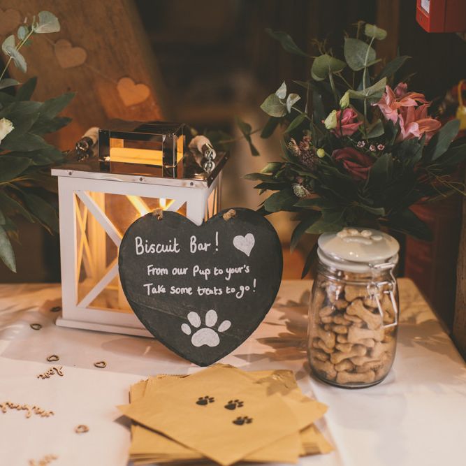 We lead a very outdoors lifestyle and the Bride especially spends the majority of her time in her Hunters in muddy fields with Lyra and Spencer. So we wanted to make sure that our outdoors lifestyle was reflected at our wedding and holding the Reception in such a beautiful, rustic and original Barn certainly ensured that. The addition of the animals as special guests, hay bales, views and sharing food bought that alive. All of the decor, tables, favours, menu board, seating plan etc were very in keeping in the barn vibe and the majority of the styling was made by us by hand.