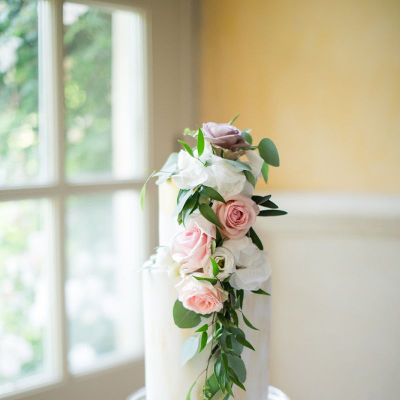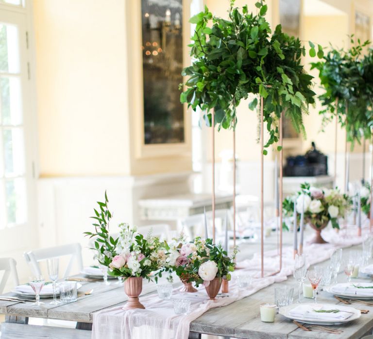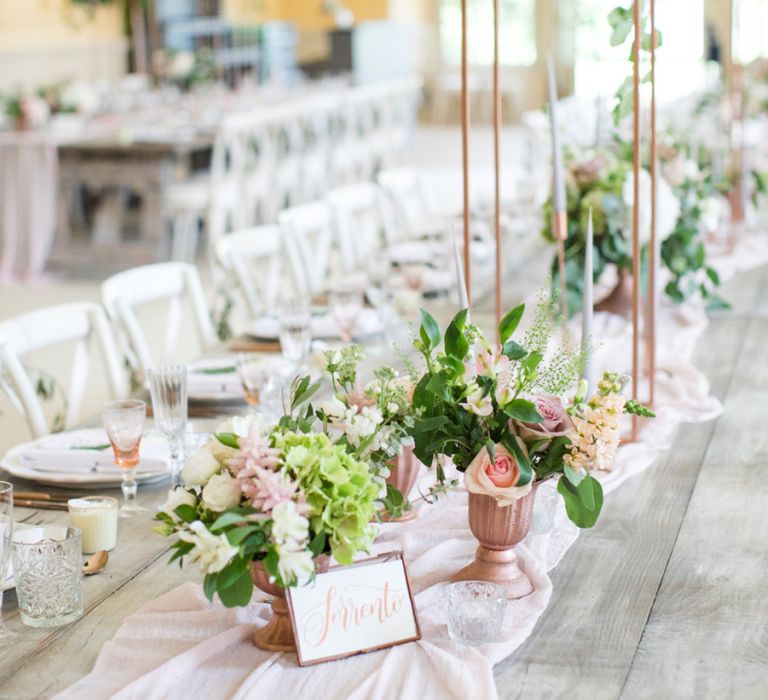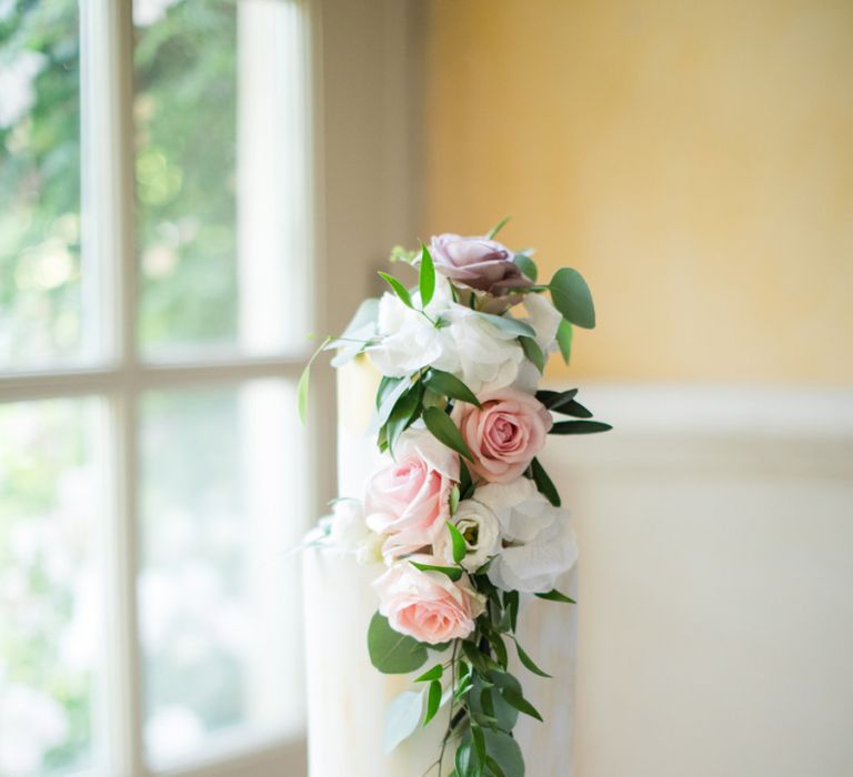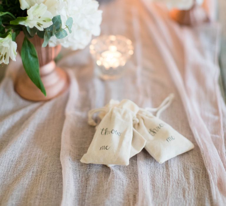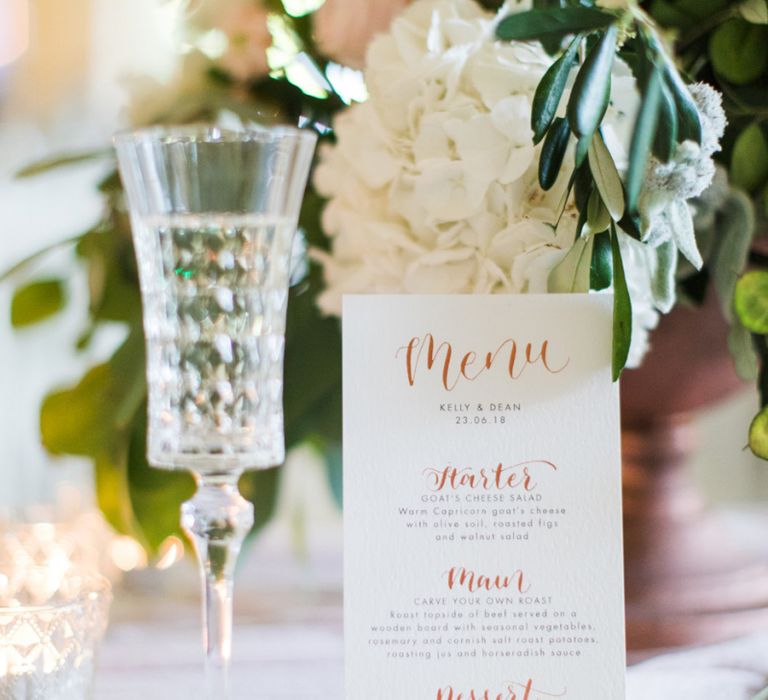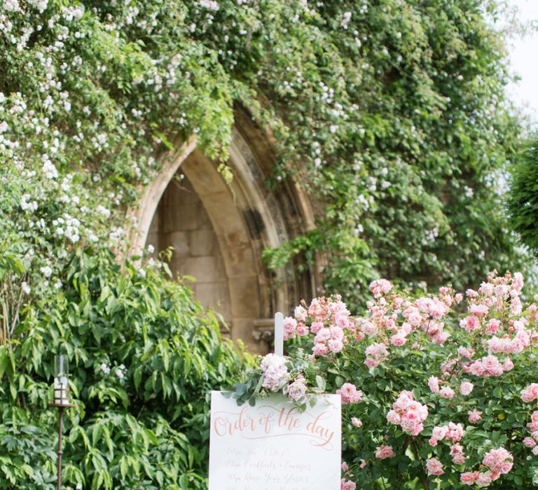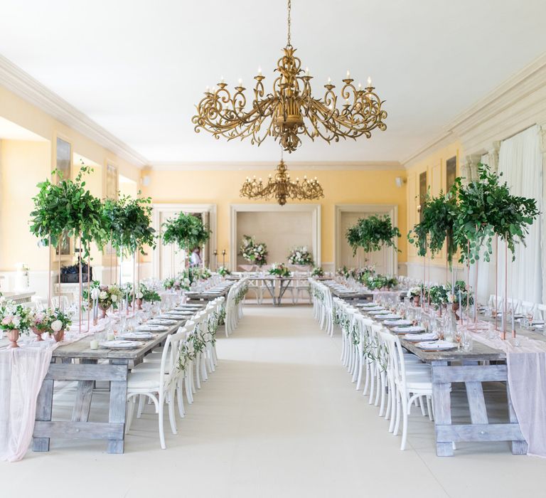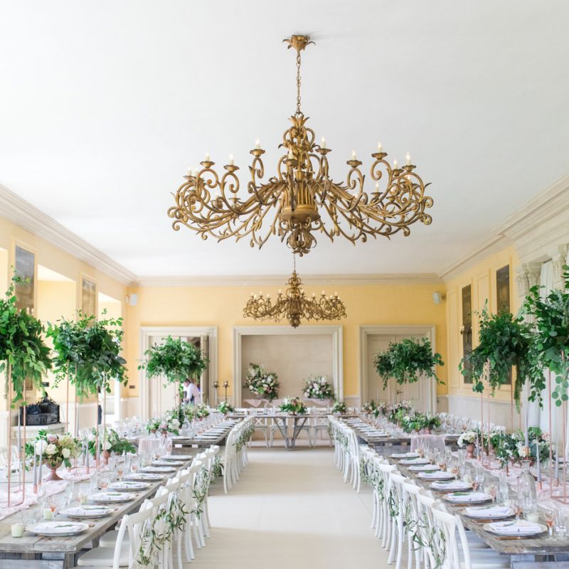 The natural charm of the venue, with climbing roses and orange trees, automatically created the romantic Italian fairytale feel we dreamt of. Our florist, Charlotte Elizabeth, used natural silvery greens such as eucalyptus and olive to bring in the Italian vibes, with hints of white and pale pink to create a luxe overall look. This even extended to the pink hibiscus fizz and gin-based Hugo cocktails served after our ceremony, which beautifully fit the colour scheme! In the poolroom, a timeless tablescape was created by draping hand-dyed pink runners over the trestle tables and displaying a variety of textured cut glass tea lights and tapered candles on top. The varying heights of the tall foliage stands and lower table arrangements created impact and scale.