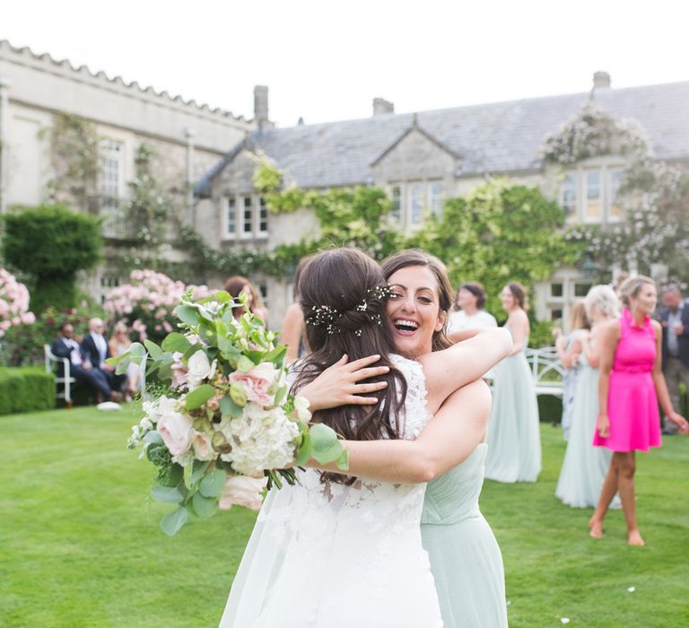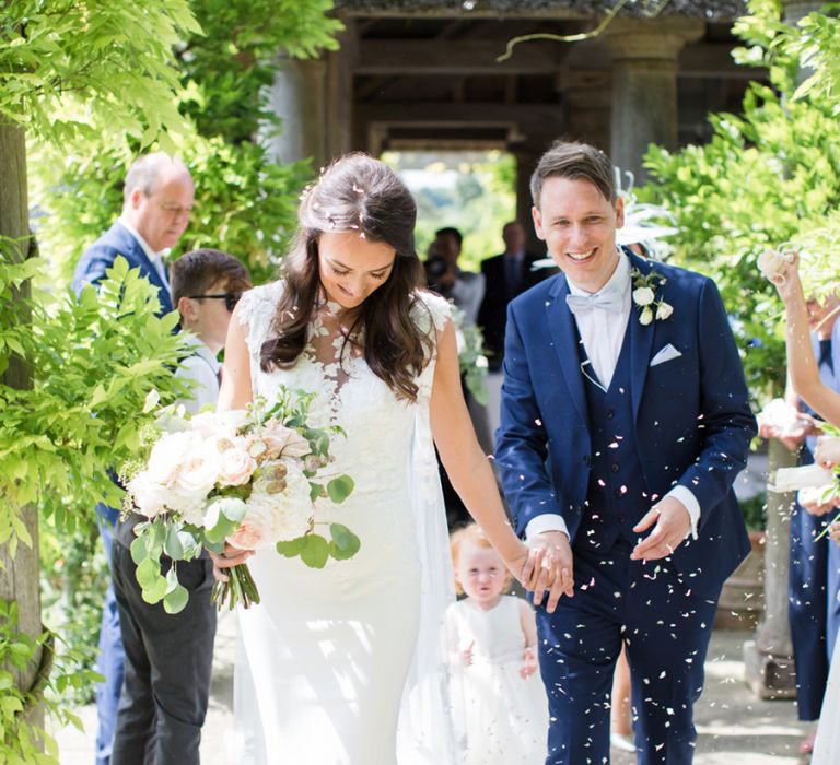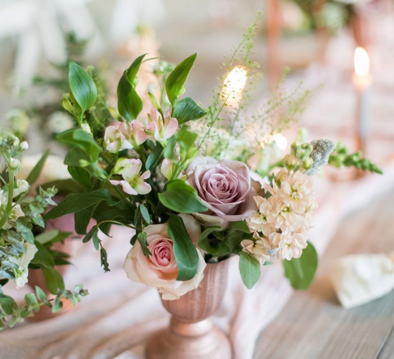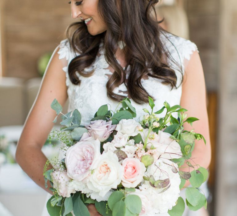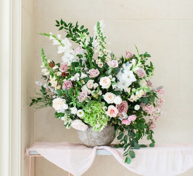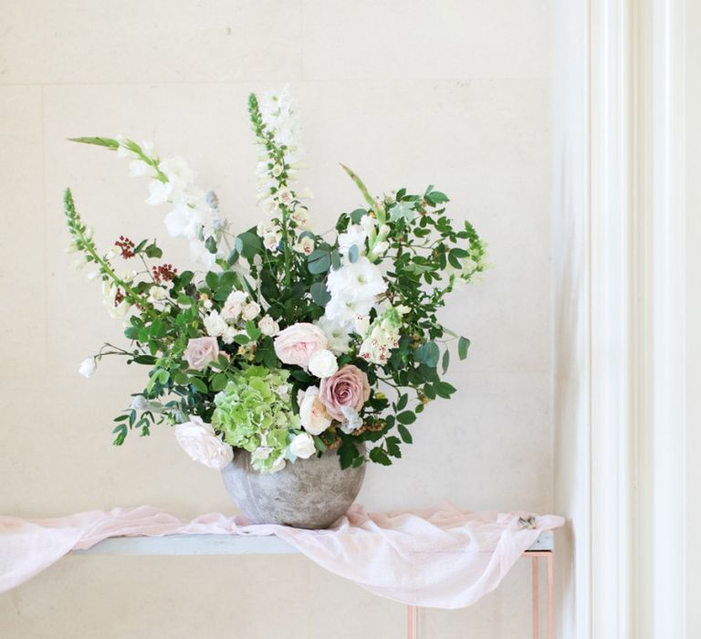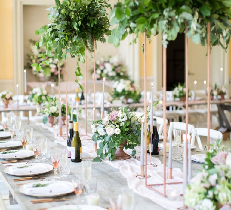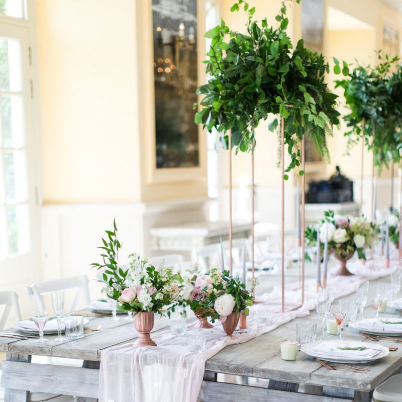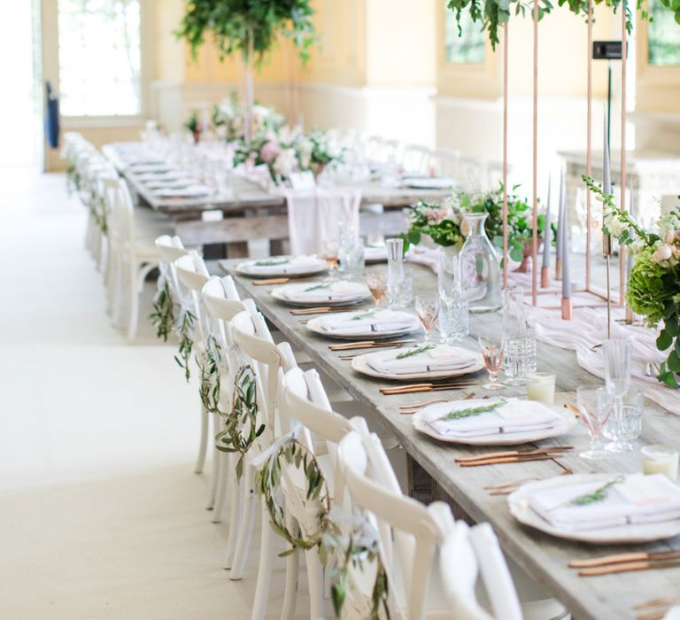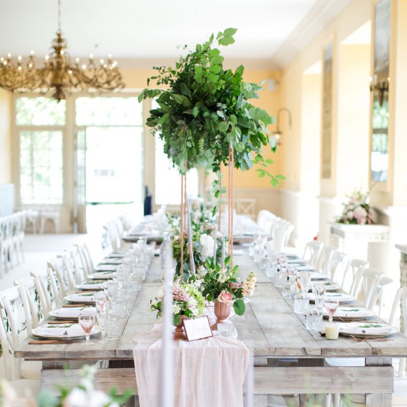 The natural charm of the venue, with climbing roses and orange trees, automatically created the romantic Italian fairytale feel we dreamt of. Our florist, Charlotte Elizabeth, used natural silvery greens such as eucalyptus and olive to bring in the Italian vibes, with hints of white and pale pink to create a luxe overall look. This even extended to the pink hibiscus fizz and gin-based Hugo cocktails served after our ceremony, which beautifully fit the colour scheme! In the poolroom, a timeless tablescape was created by draping hand-dyed pink runners over the trestle tables and displaying a variety of textured cut glass tea lights and tapered candles on top. The varying heights of the tall foliage stands and lower table arrangements created impact and scale.