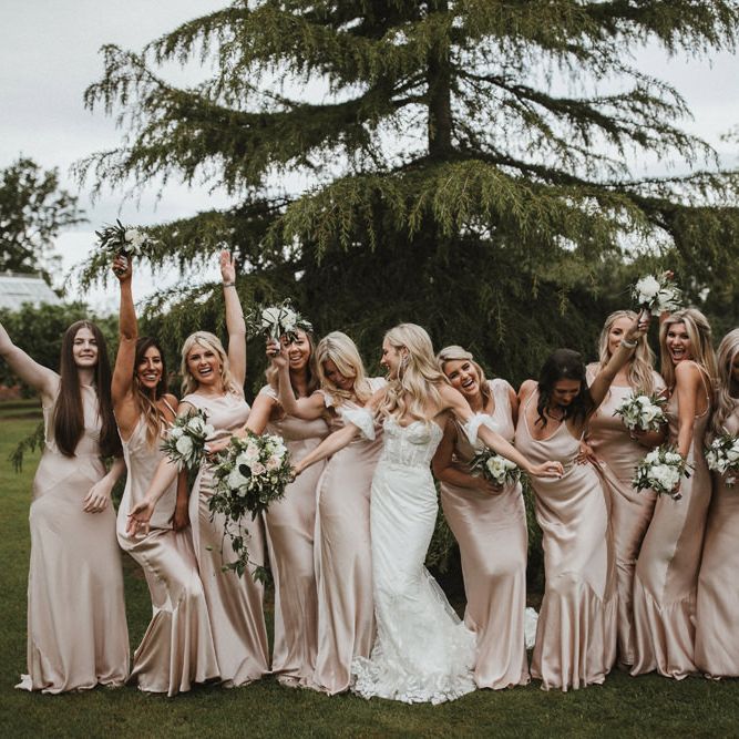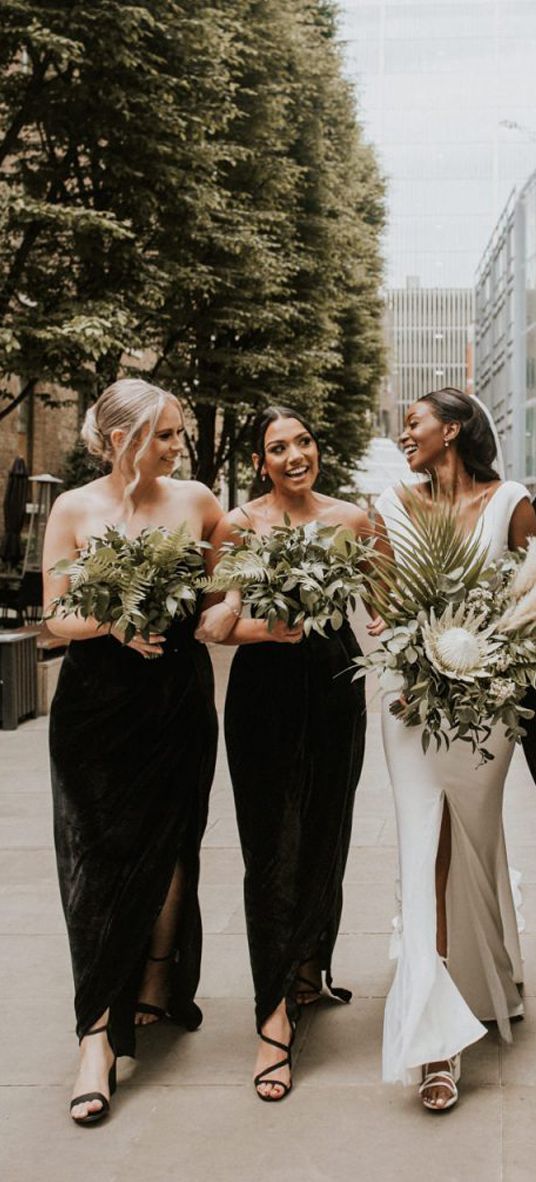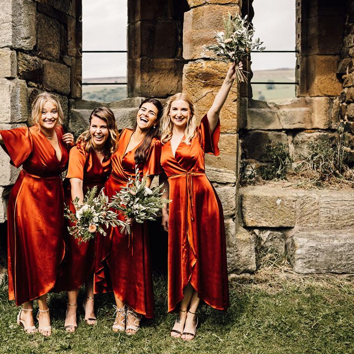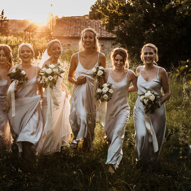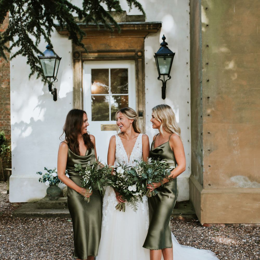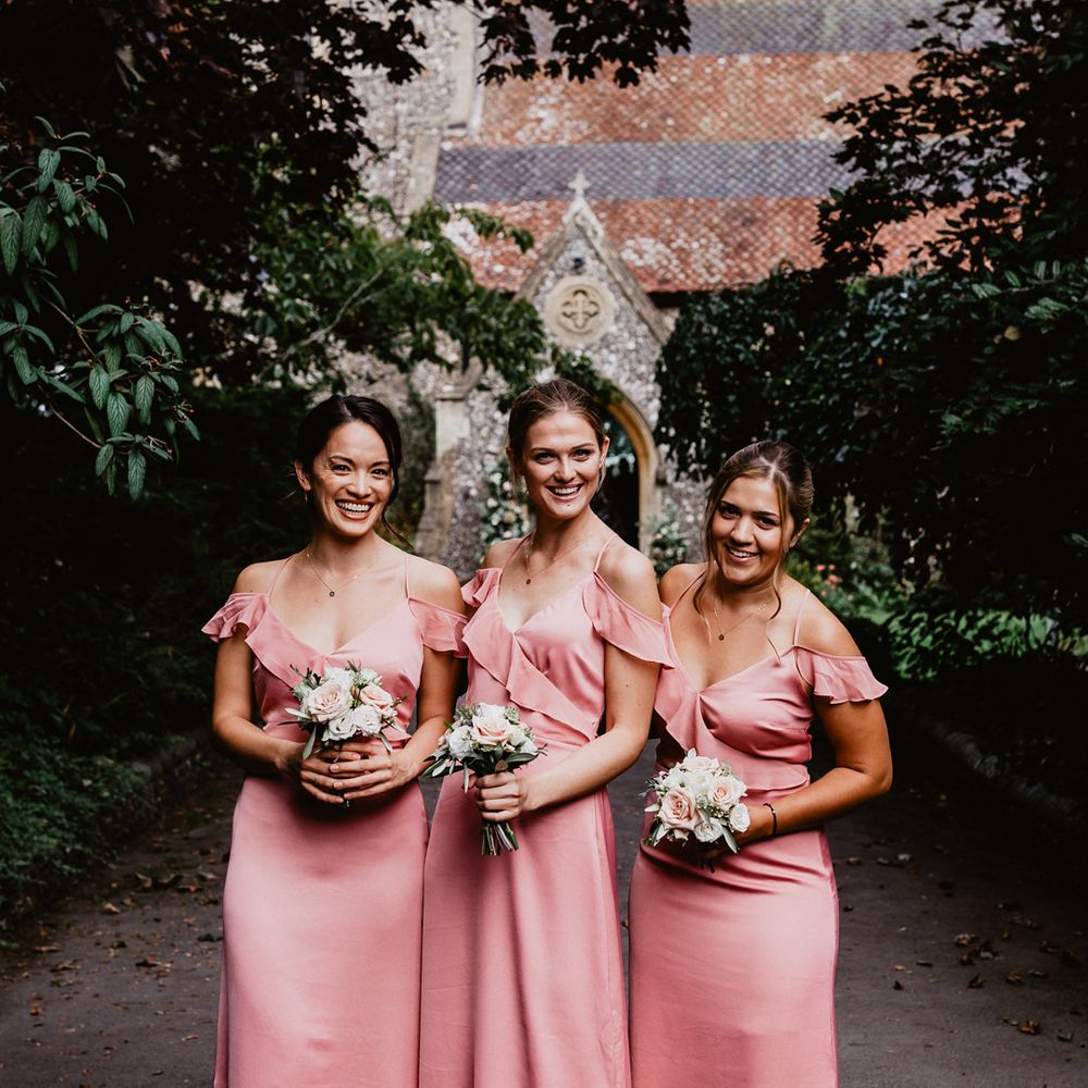 Satin is a type of fabric that typically has a shiny front and matte back, woven with silk, polyester and nylon to give it its luxurious appearance. There are many different types of satin, including slipper satin, duchess satin, charmeuse and more. Each one formed to bring us different satin bridesmaid dress designs including, slinky slips and heavy ball gowns.