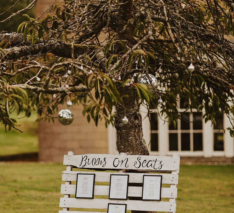 The weekend before our wedding we made our 'BUMS ON SEATS' pallet for about £10. I spent hours clicking away with my Dymo label maker using a cool neon pink colour to label everything! It drove Craig MAD.