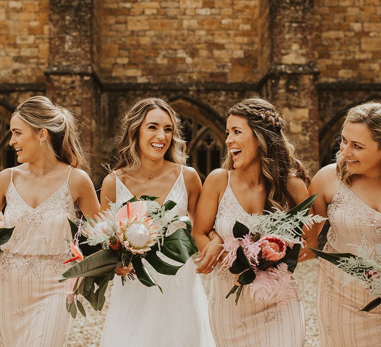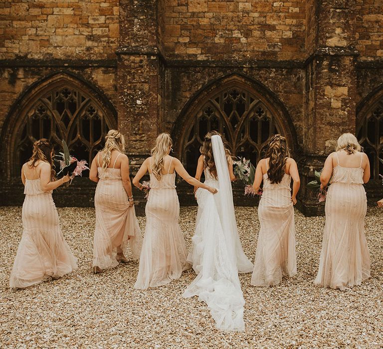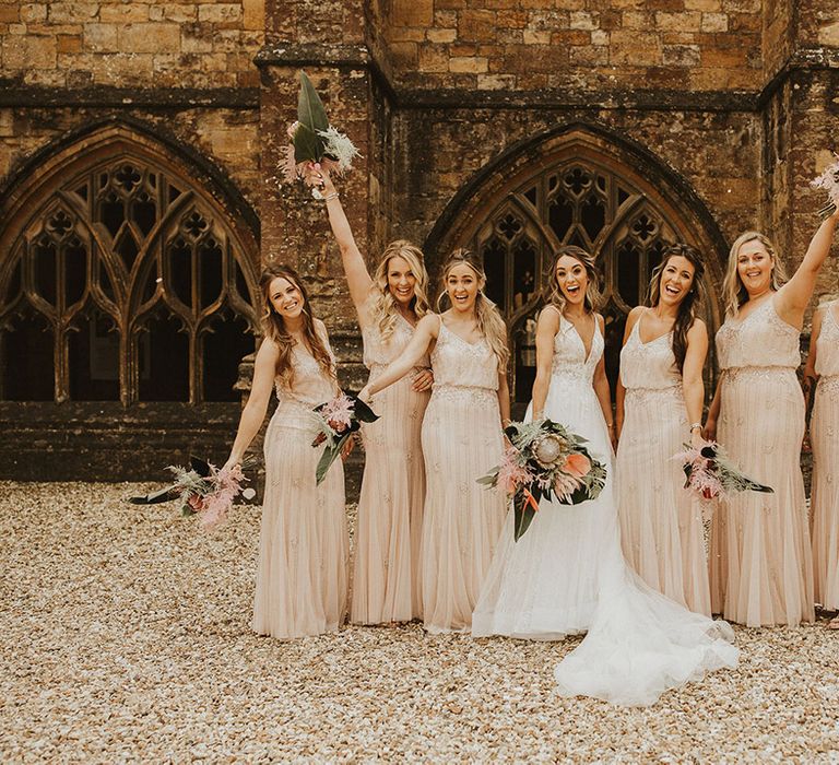 Blue Floral Bridesmaid Dresses with Wildflowers