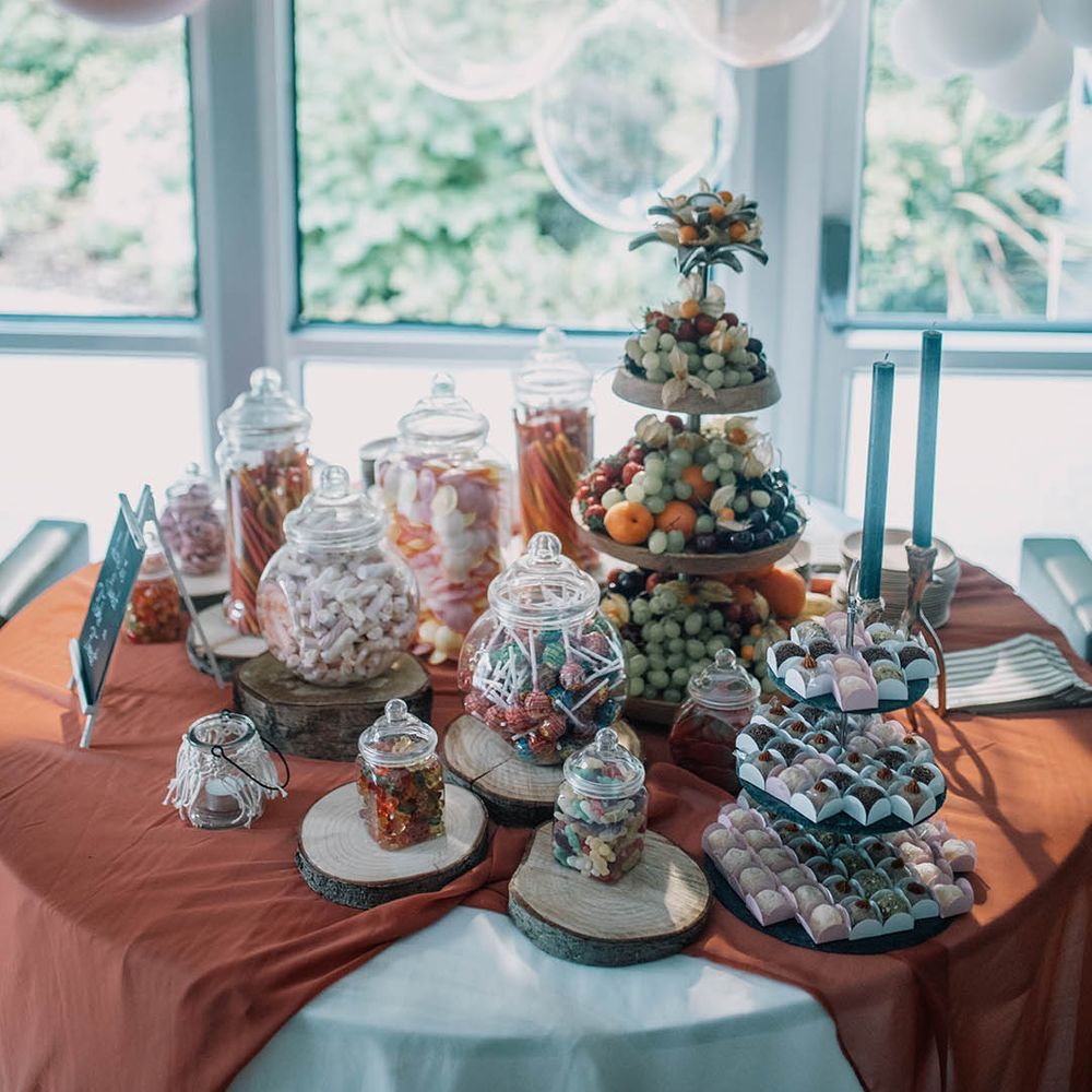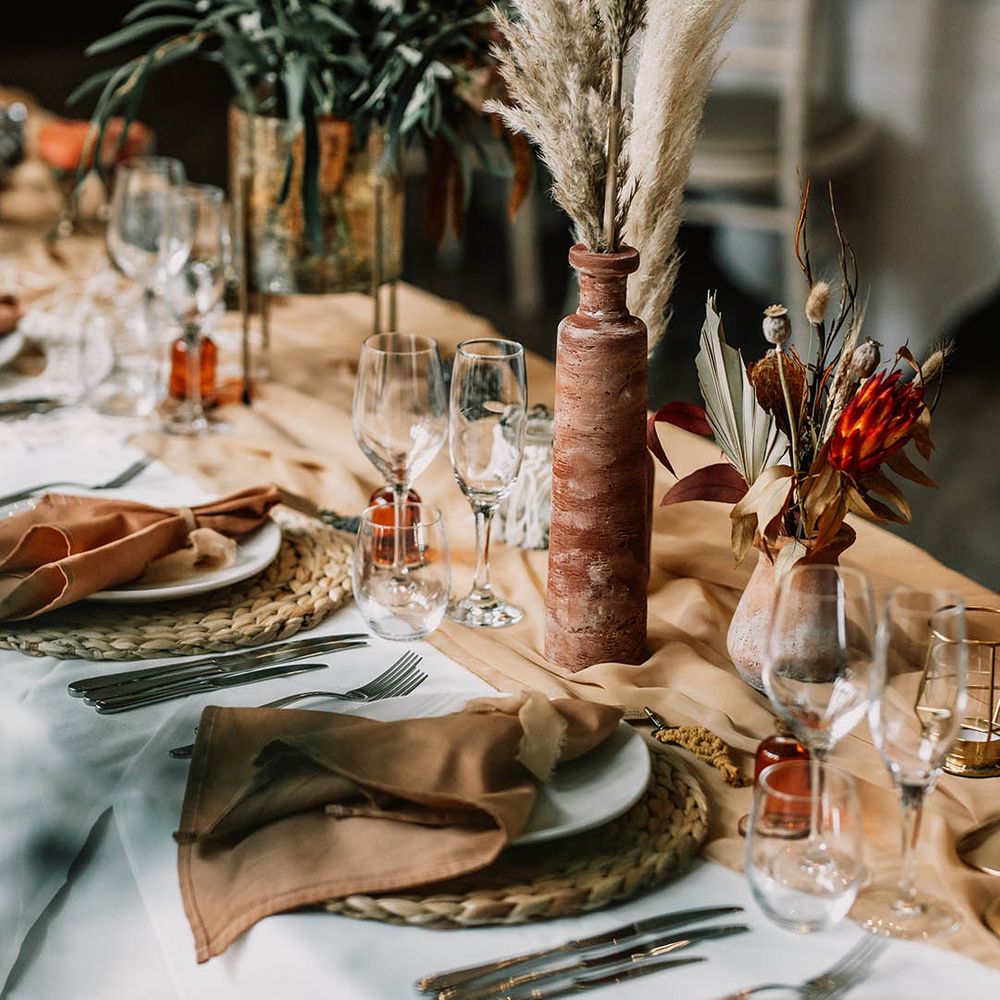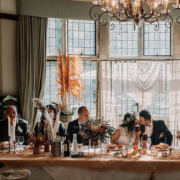 We made a lot of our wedding decor! Such as the macrame backdrop, vases, favours and much more.