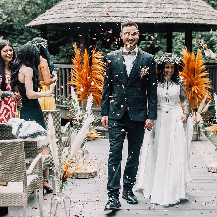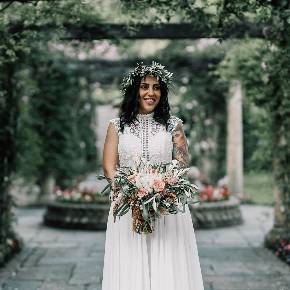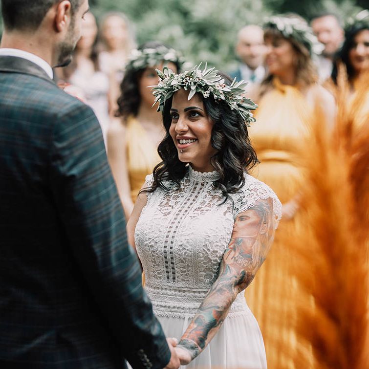 I made a big macrame backdrop, and that was a big project! I’d never done one before. My husband made beautiful vases out of wine and Prosecco bottles. We managed to incorporate our style into the florals with help of our amazing florist Liga. My favourite moment had to be when my now husband looked at me by the alter. He took my hand and turned me around to have a good look at me before anything else.