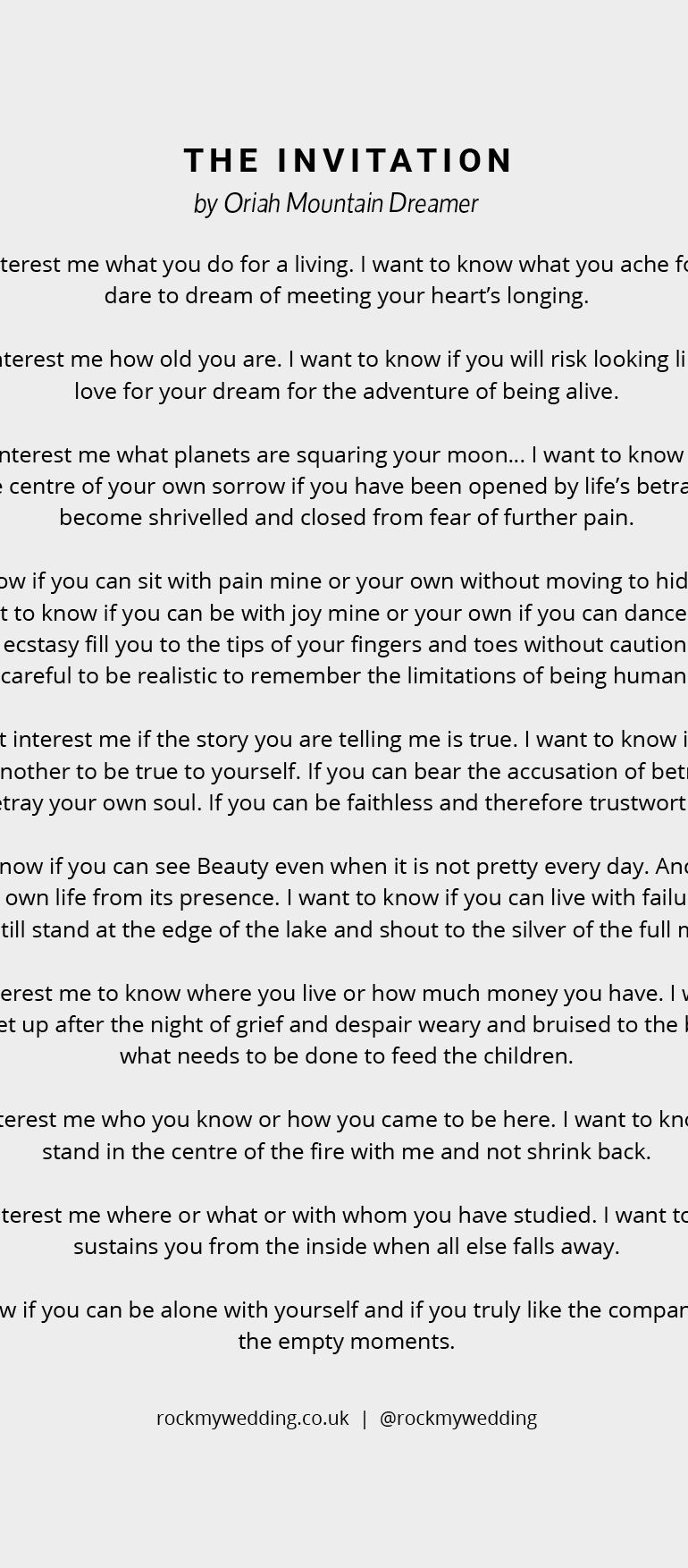 If you're in need of a copy of The Invitation by Oriah Mountain Dreamer then you're also in luck! As we have the free downloadable copy down below.