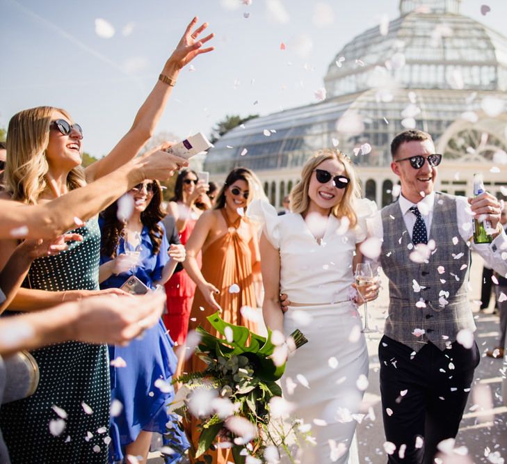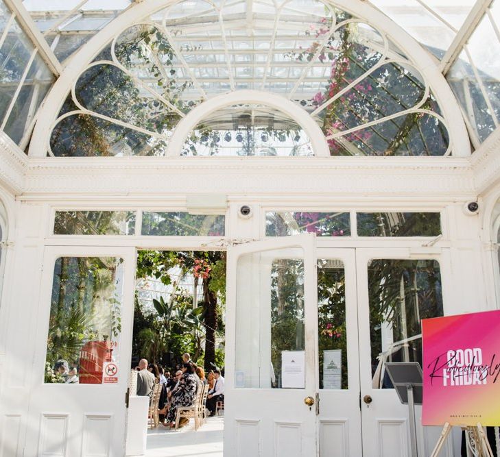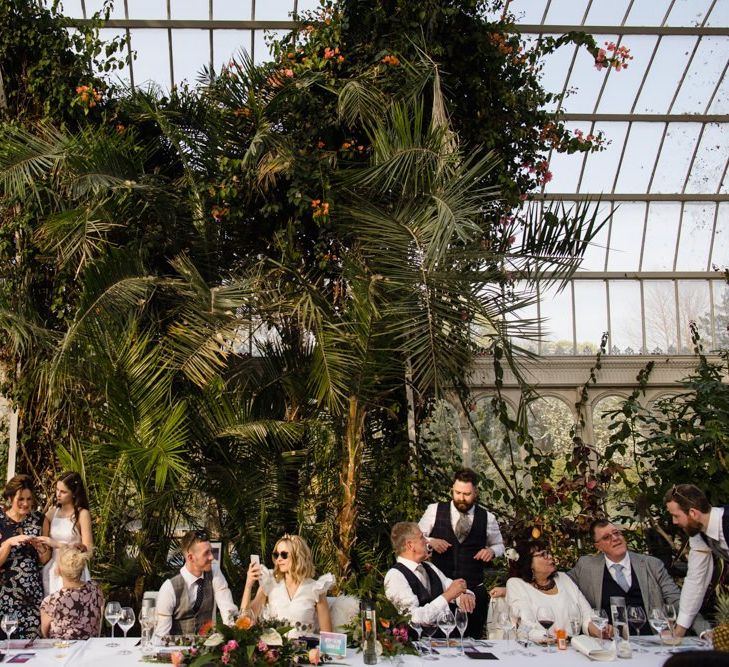 venue made our day so unique and special. Sefton Park Palm House is absolutely beautiful and we would recommend it to anyone. It’s perfect for weddings because it feels so grand yet intimate. Every photo looks impressive because the ceilings are so high and it's completely filled with beautiful tropical plants and flowers. All of that meant we didn't have to worry or even think about dressing the venue, we didn't add anything (well, apart from a glitter station, cigar bar and