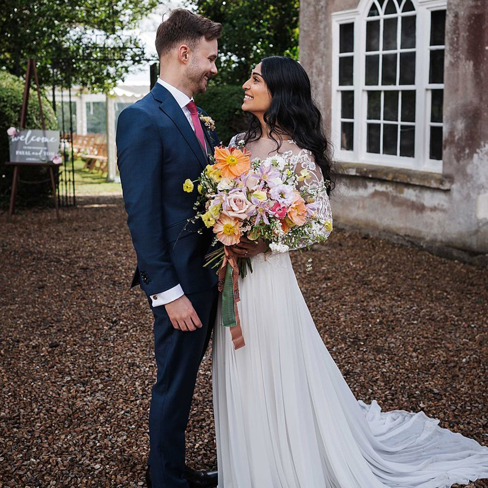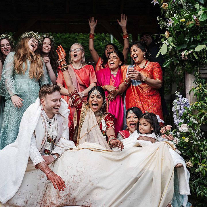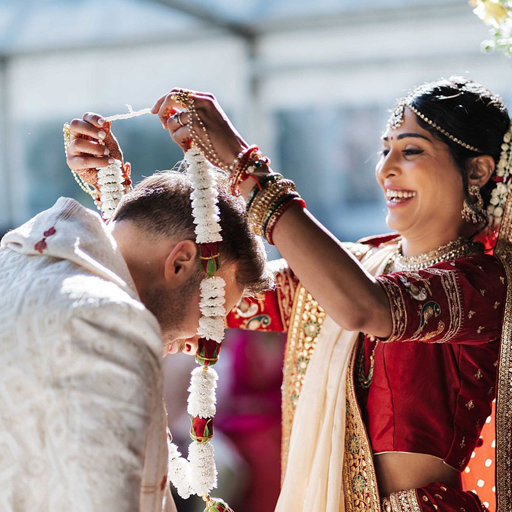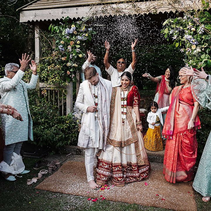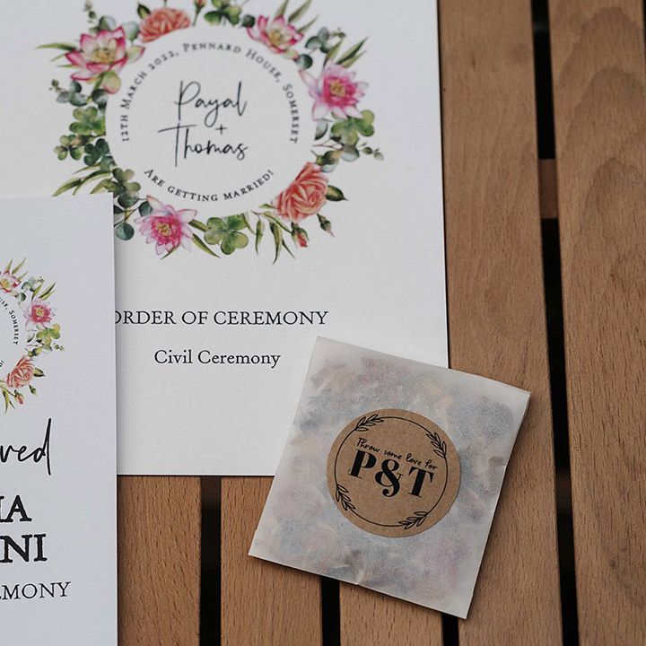 Our focus was on both our cultures coming together through the small details! This began with the initial invites through to the stationery on the day. We included the rose, shamrock and lotus to represent our cultures coming together. The wedding breakfast tables were named after the birthplace of our parents and grandparents, incorporating this playfully into an ‘around the world’ theme. We were so excited to celebrate our special day and also wanted to include our guests in our celebrations. We had no airs and graces, and encouraged everyone to get involved whenever they could!