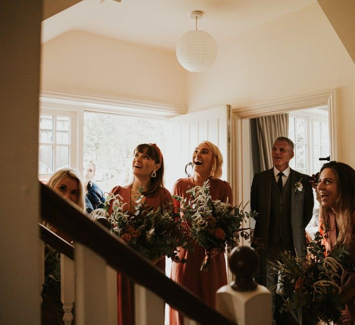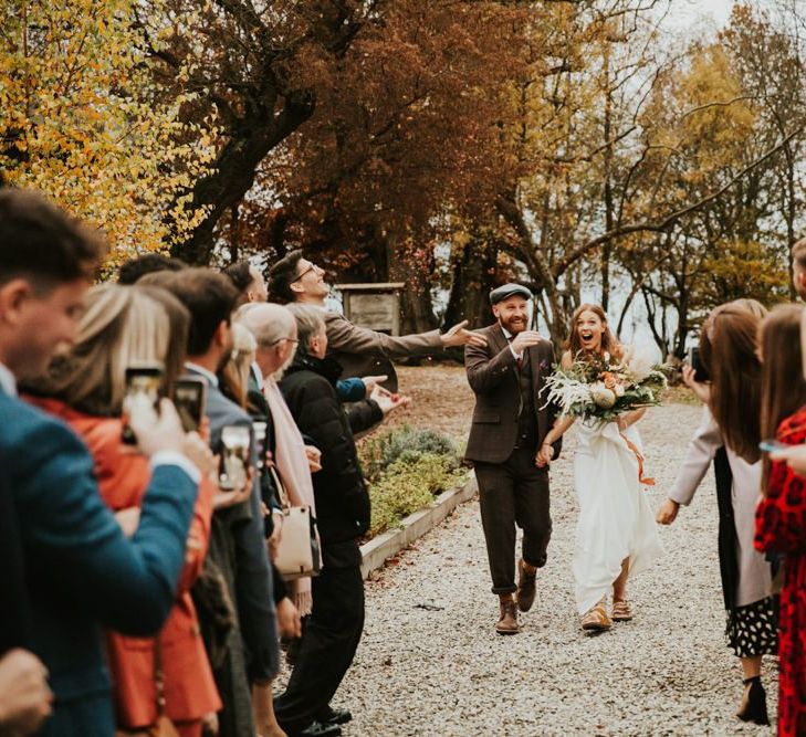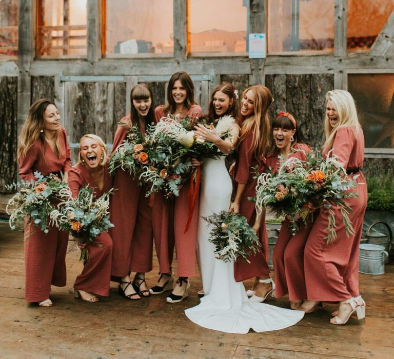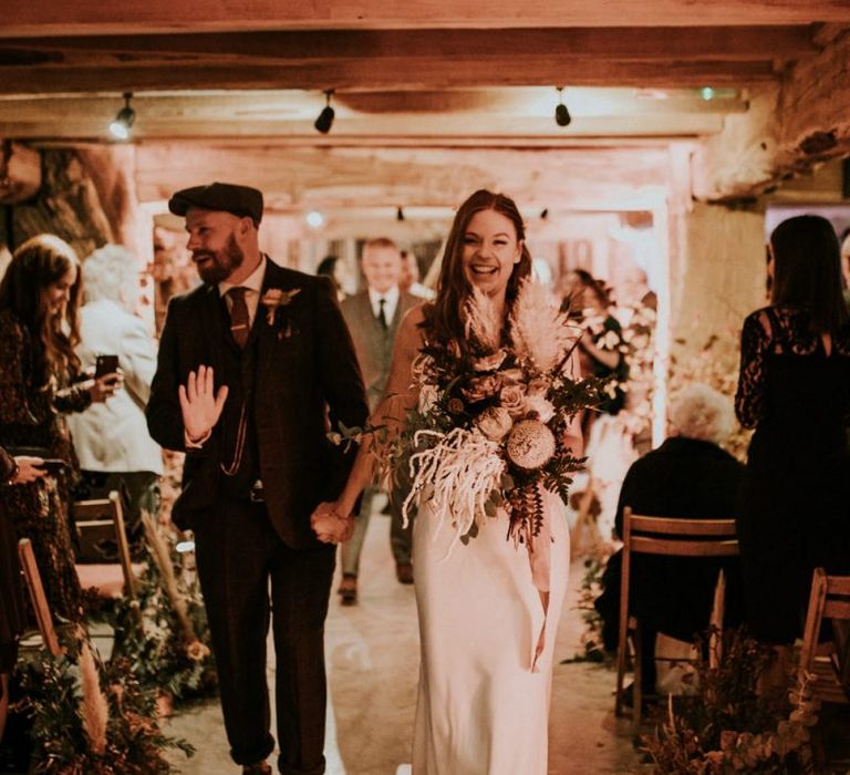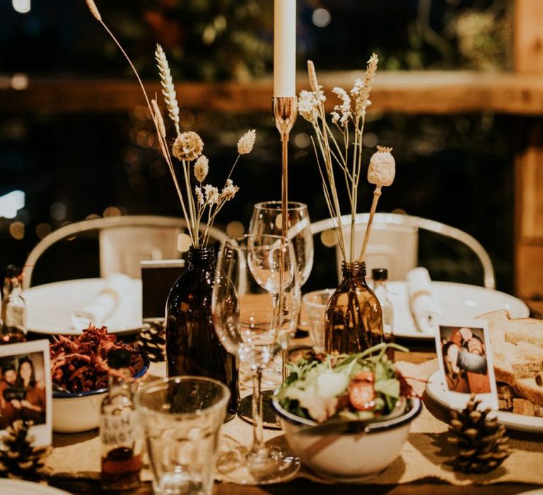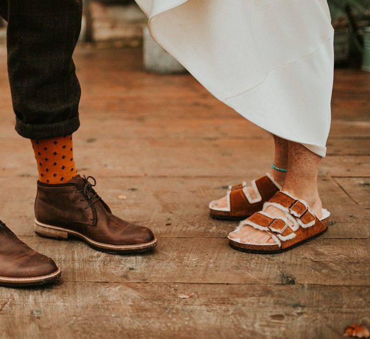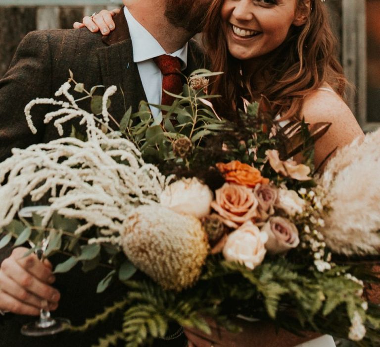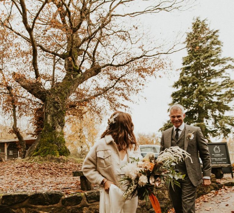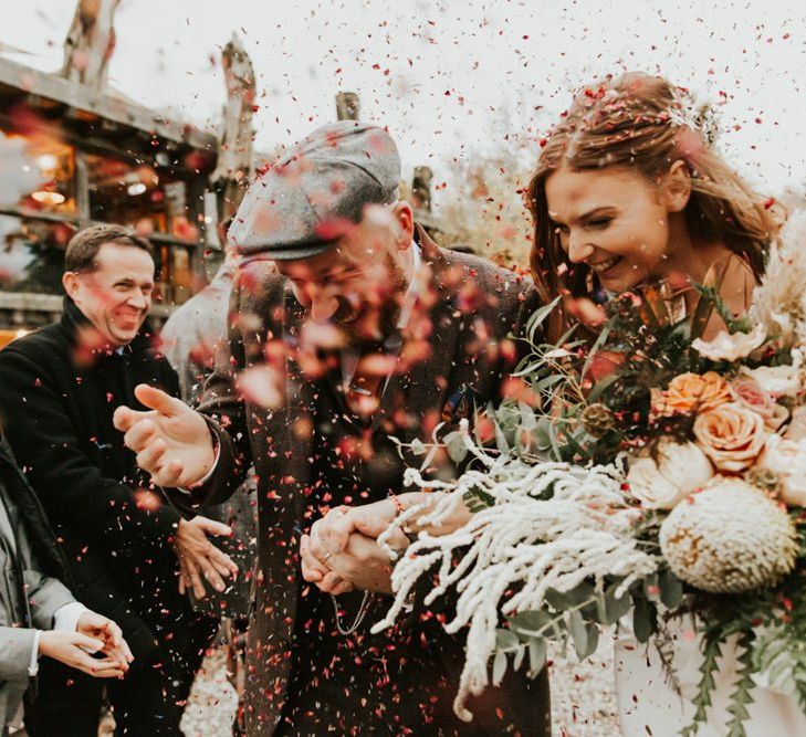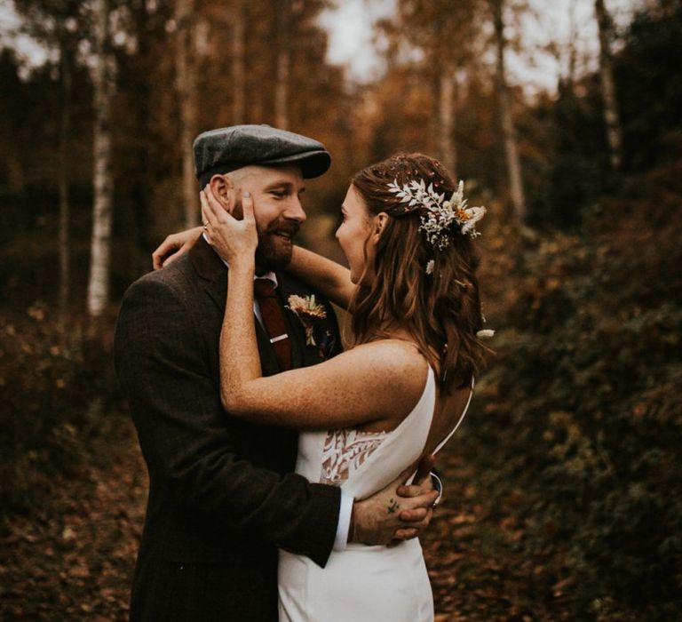 Autmnal boho vibes. Tom and I love the travelling boho vibes, we live in a van and travel around and we wanted that style in our wedding. We also love autumn, being a red head and Tom with his red beard the autumn colours are very much in a our pallet. This was brought in through the flowers, the forest veneu, Hoedown, up lit our whole venue with warm orange lights, there was a big open fire in the ceremony. One of our memoires from the ceremony is just this warm hugh over everything it was stunning.