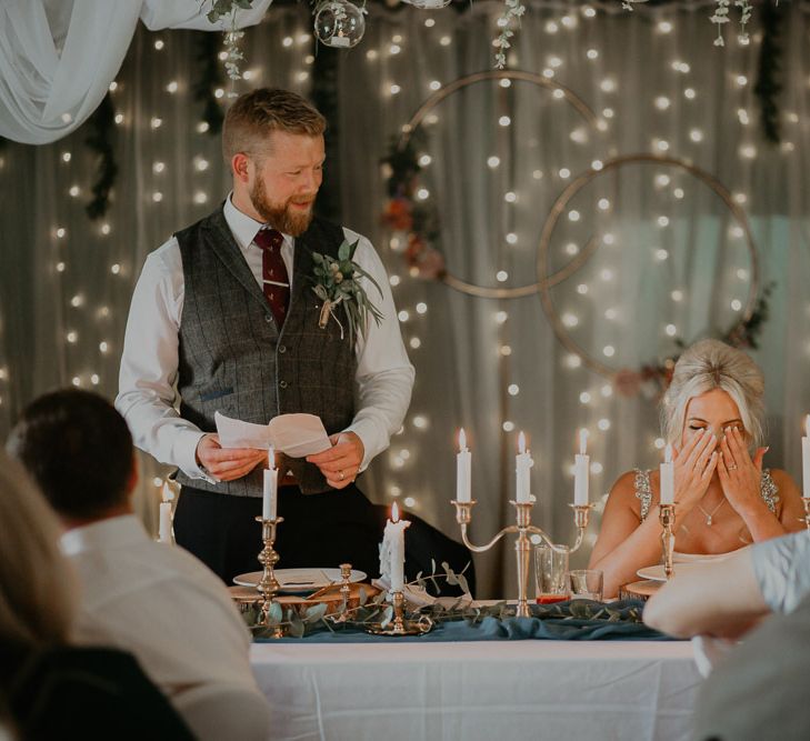 The wedding ceremony was actually conducted in a fernery (potting shed) set in the corner of the Coach house garden. We loved the setting which was made more ideal being surrounded by wildflowers and overlooked by the Hoad monument. We also had our dog, Archie, as ring bearer, wearing a matching suit harness to the Groom made by Tuna and Bear. It was funny during our vows as he let out a single bark just at the right moment.
