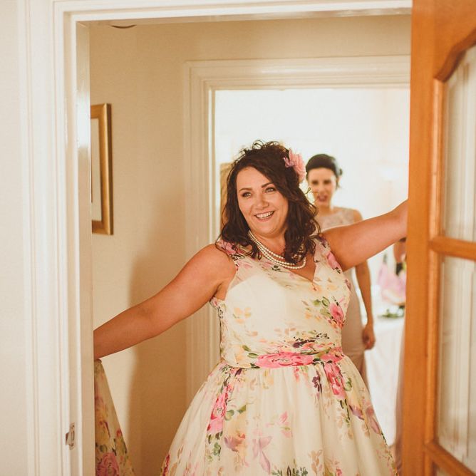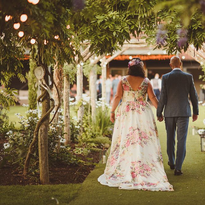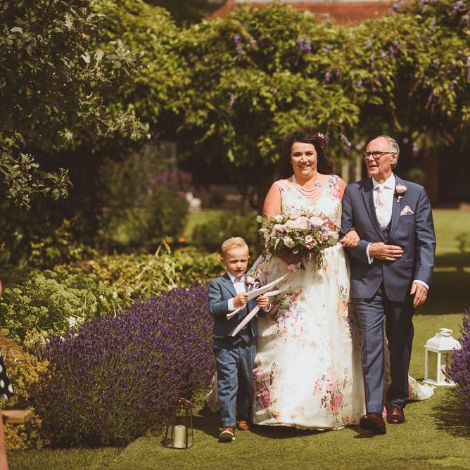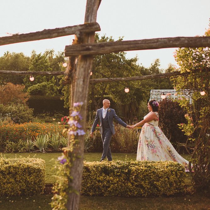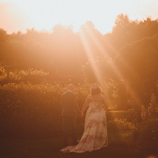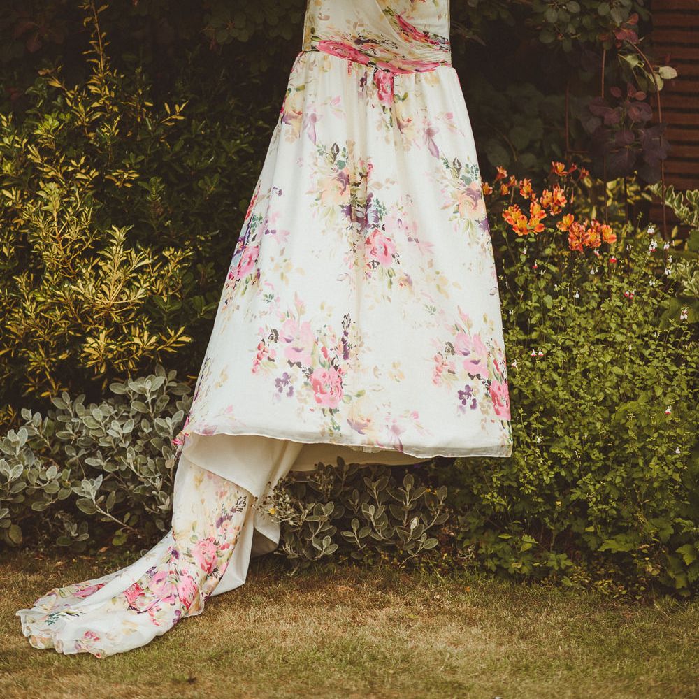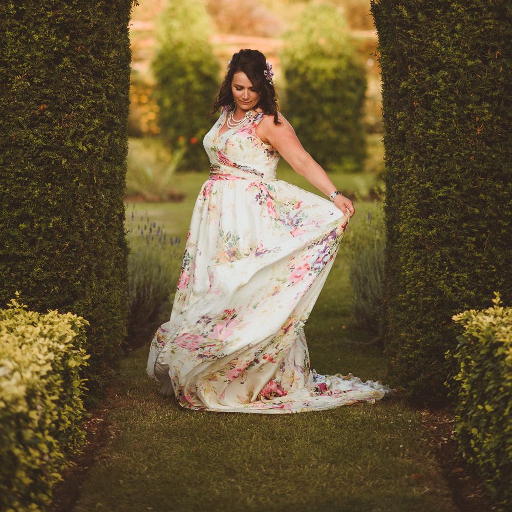 Bride in Floral Wedding Dress for an English Country Garden Wedding