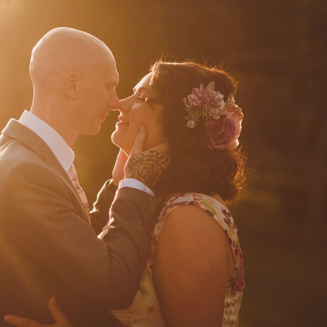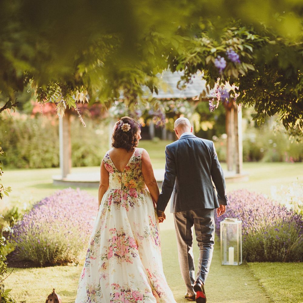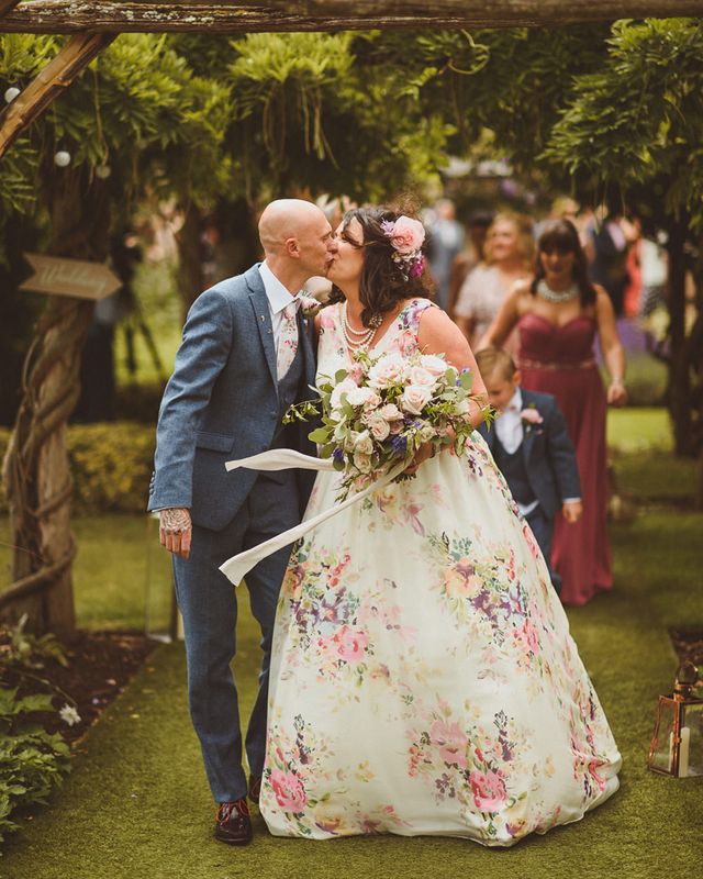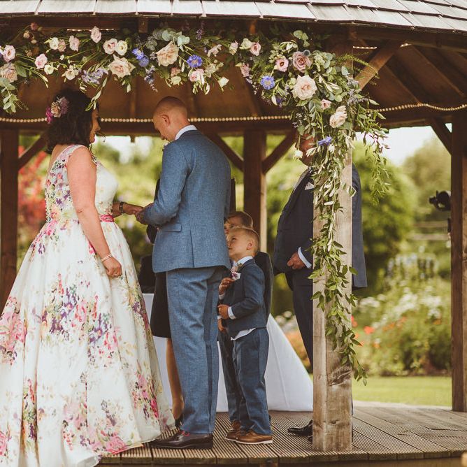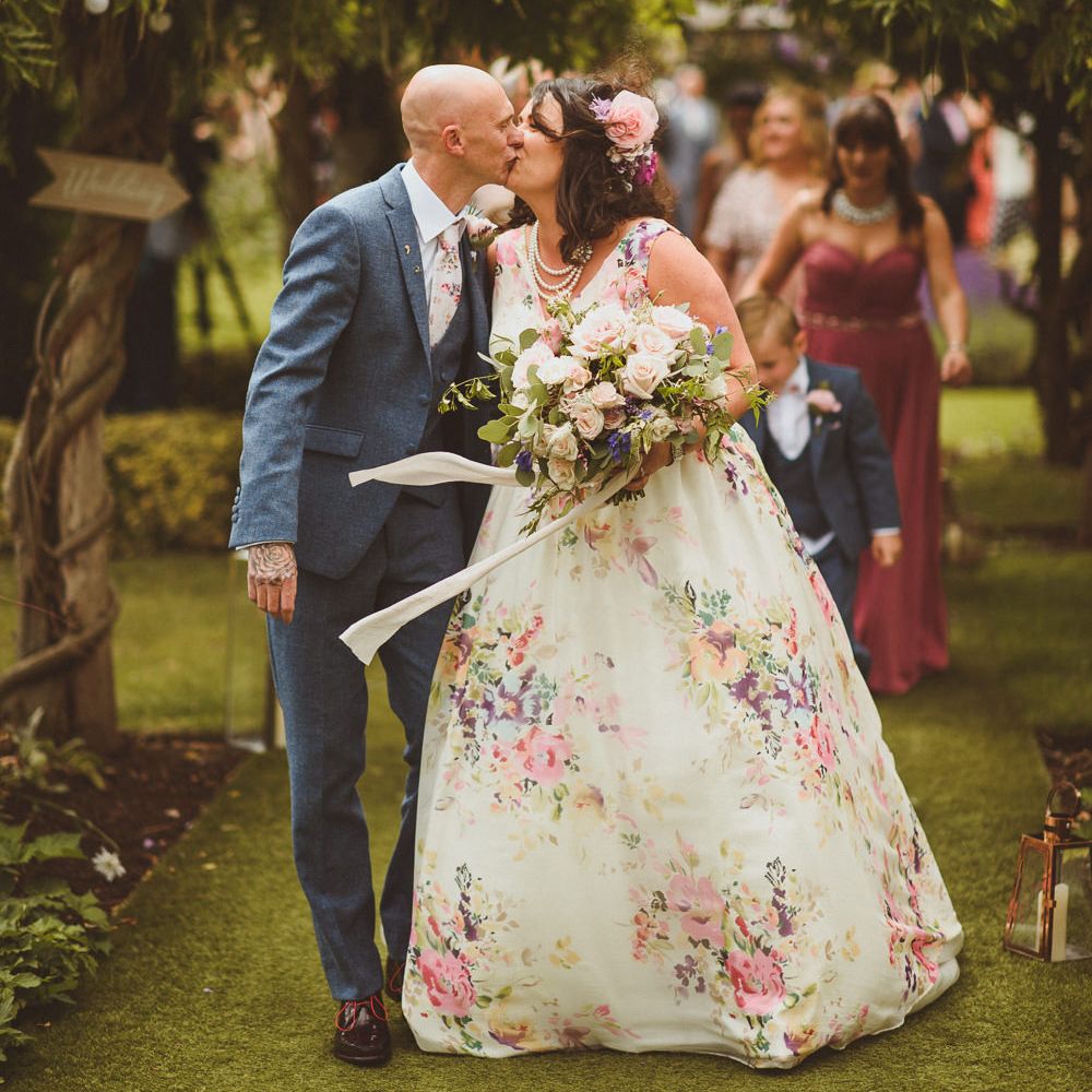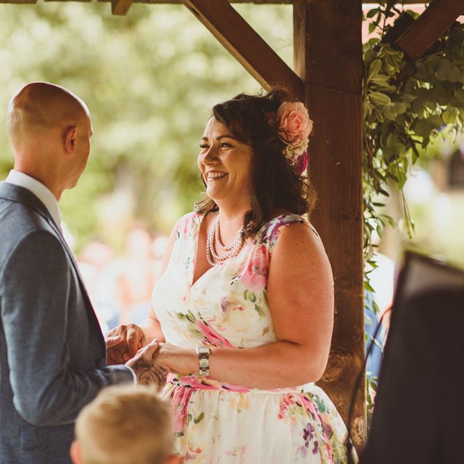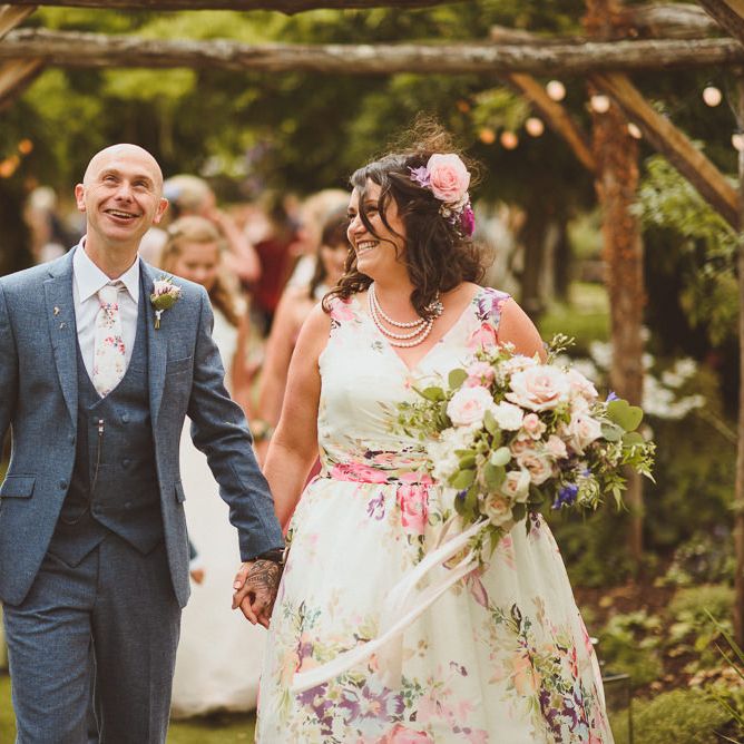 Bride in Floral Wedding Dress for an English Country Garden Wedding