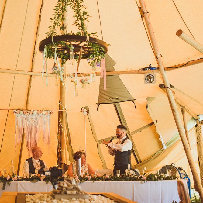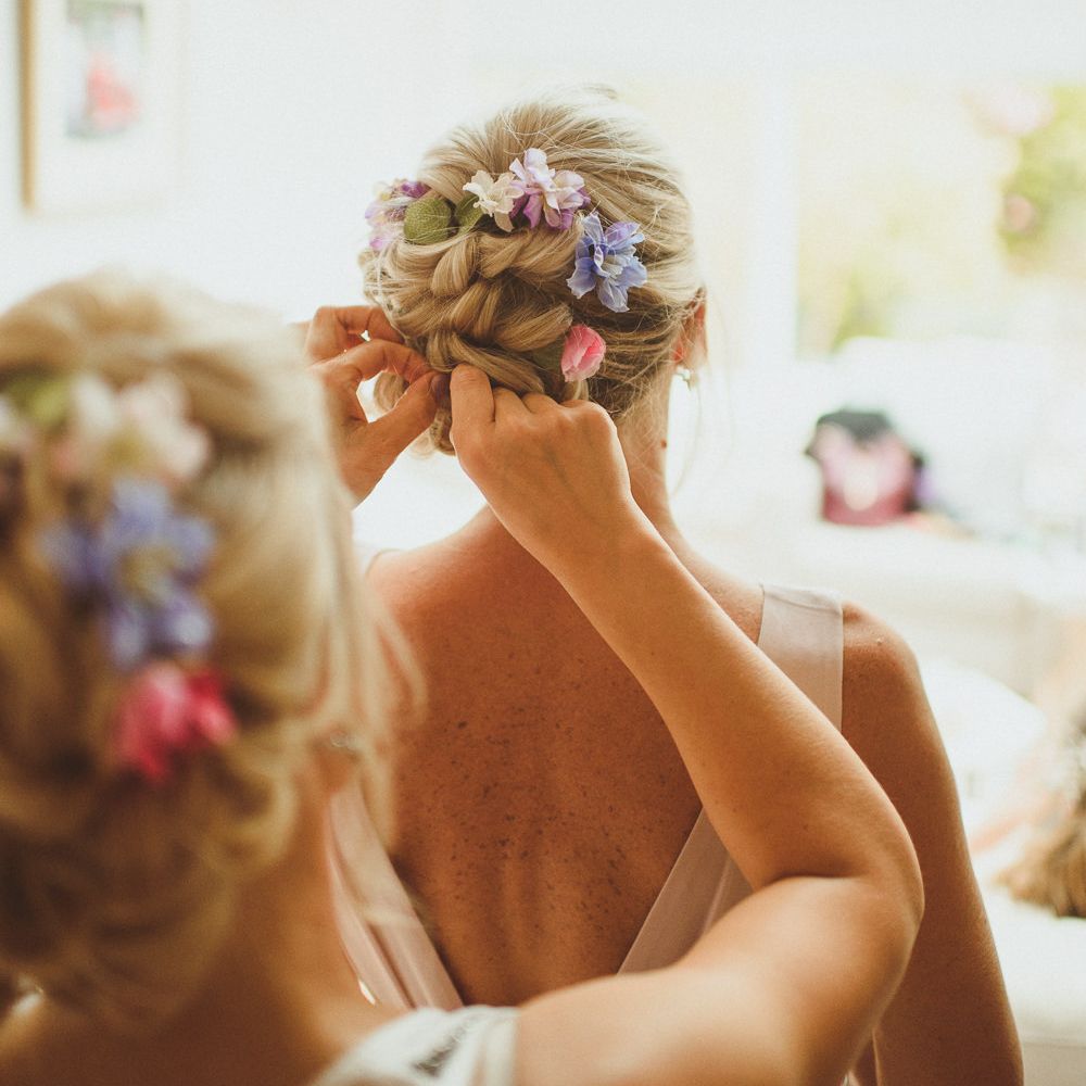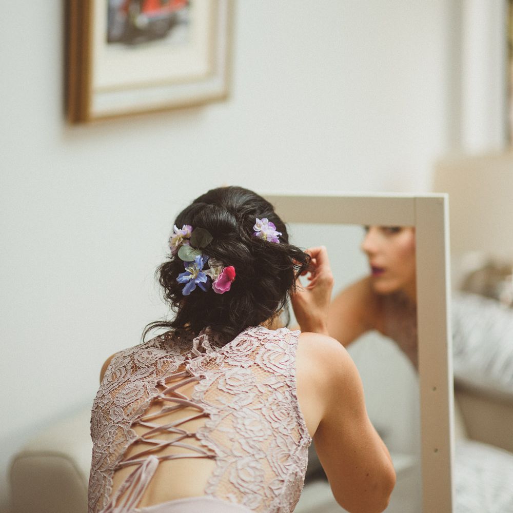 I wanted it to be very English garden with lots of soft pretty colours. Anywhere I could slip in a bit of rose gold I did! Lots of the decorations I made myself; from the dreamcatchers, to the bridesmaids hair clips, to the place names. We wanted it all the feel very relaxed, like we were at a big garden party.
