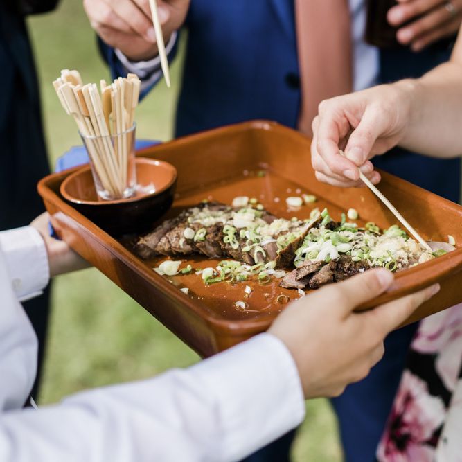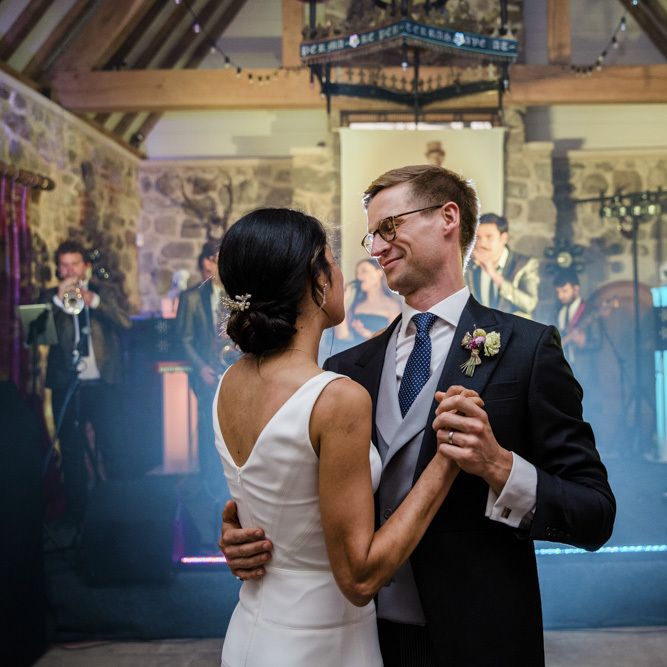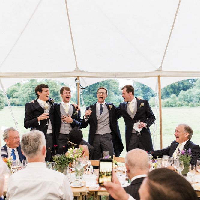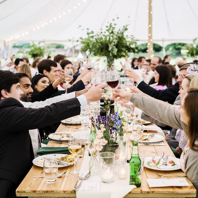 We knew we didn’t want a cookie-cutter wedding, and that we wanted to involve as many of our guests as possible. Cal was the mastermind behind some (arguably) over-the-top ideas, such as a cake cutting "ceremony", complete with a Master of Cake Cutters (the Grand Duke Sir Lemon Drizzle), a 4-foot Celtic sword and the groomsmen kazooing "God Save the Queen". During the evening party between the band’s sets, we organized mandatory group karaoke, bringing unwitting family and friends up on to the stage to belt out the songs with us. The photos of everyone singing their hearts out are some of our favourites!