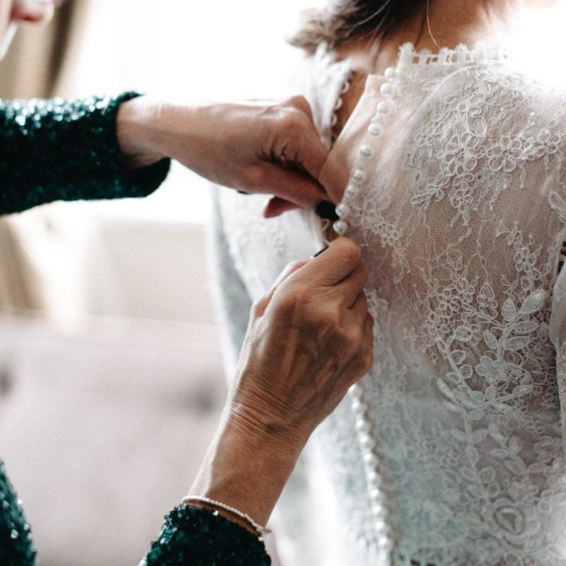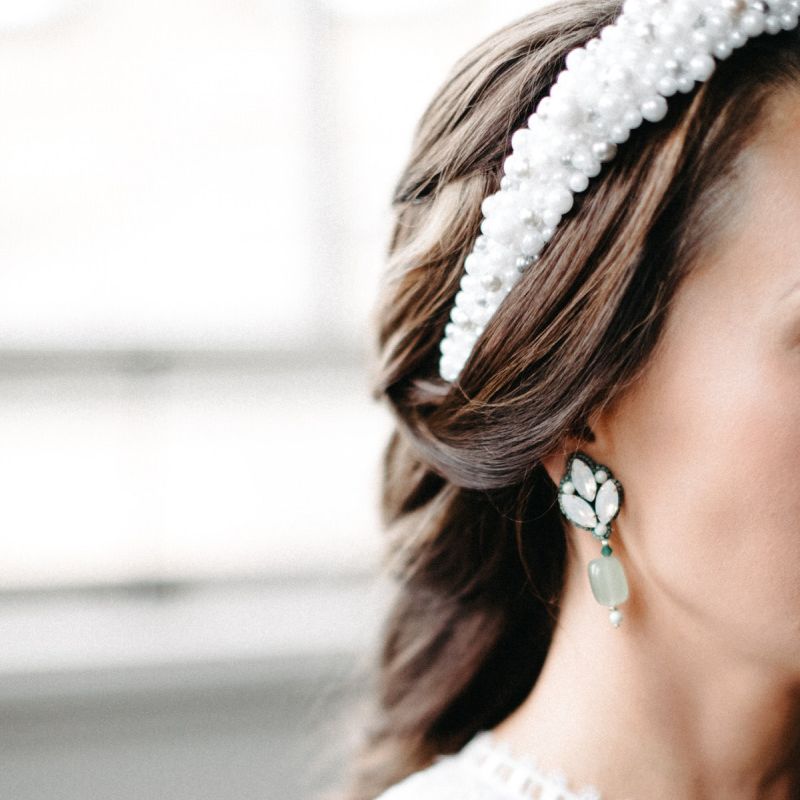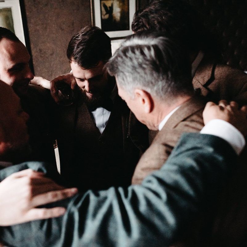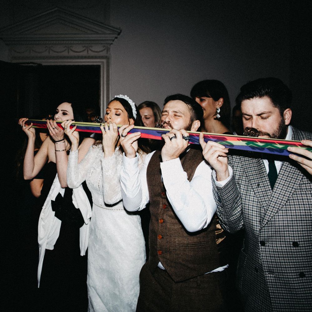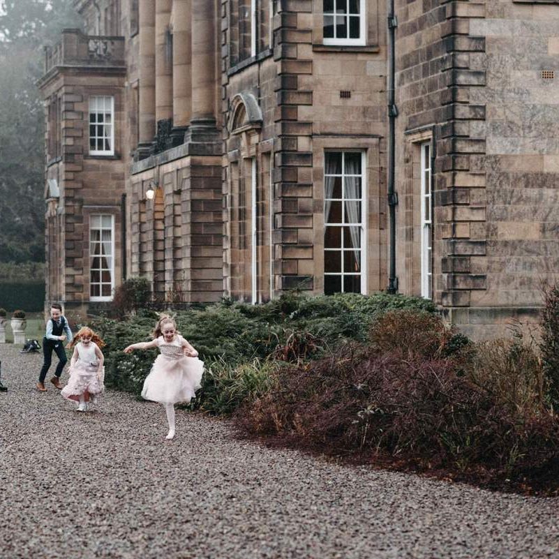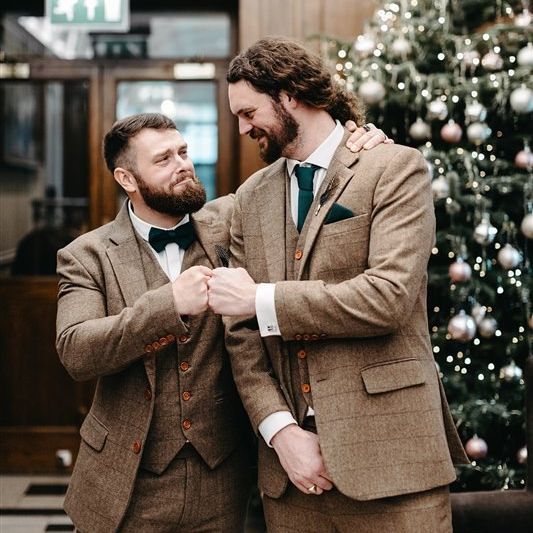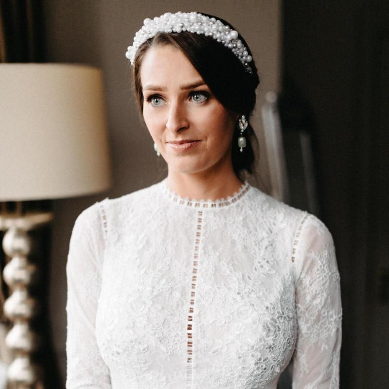 Classic, vintage, with a hint of rock n roll! After meeting in the French Alps, we wanted a Winter wedding to be as close to ski/snow vibes as possible. We both love Christmas and thought this was the perfect time of year to get married, and this set the basis for our styling. We went for whites & Christmas greens for bridesmaid dresses and groomsmen ties/pocket squares and for the flowers - my bouquet was all white and greens with anemones with black centres for the hint of rock n roll, I also had black nails with glitter (since it was Christmas time!)