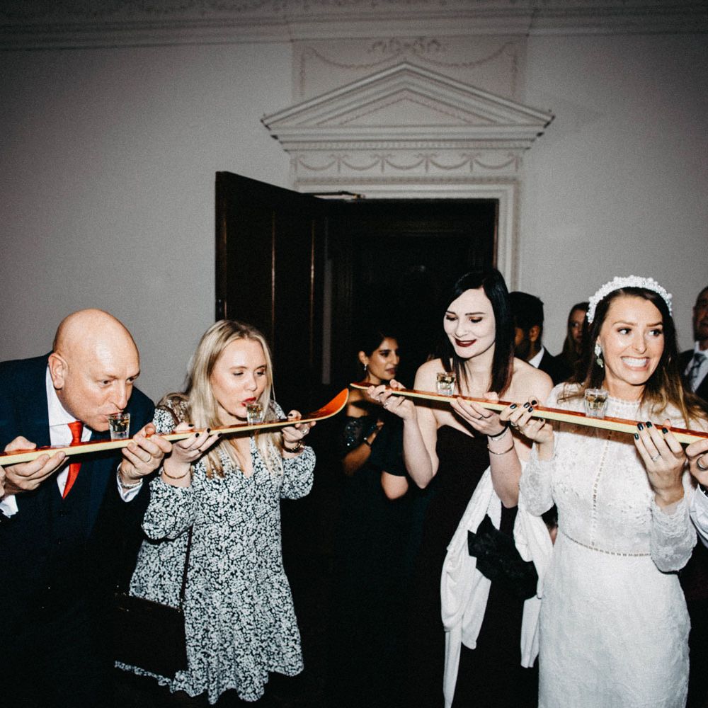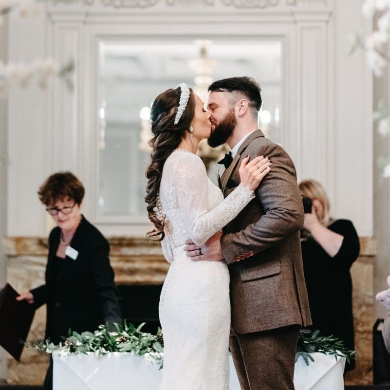 We met in a ski resort in the French Alps, so had a slight ski theme to our day complete with shot skis and Génépi! Our invitations were beautifully hand-designed watercolour sketches of us sat on a chairlift as bride & groom, and our wedding breakfast tables were named after ski resorts we had been too together. Jake's best man is in a band - The Secret Elephant. The rest of the band members set up while the wedding breakfast was going on, and they played for our evening entertainment which was a really special personal touch and even wrote a song about us! (their album is now on Spotify so pretty special) They are a modern rock band, so we were a bit worried it may not be everyone's cup of tea, but everyone including my mum was rocking on the dancefloor till the early hours! Our favourite moment was the ceremony, I walked down the aisle to an acoustic version 'You're my best friend' originally by Queen. Jake cried when he saw me and it took some effort for me to hold back the tears to prevent my make-up from being ruined! We both wrote our own vows which were very personal about our journey and it was hugely emotional and special, a memory we will both treasure always. Everyone cried and commented on how it was one of the best and most emotional ceremonies they had ever experienced.