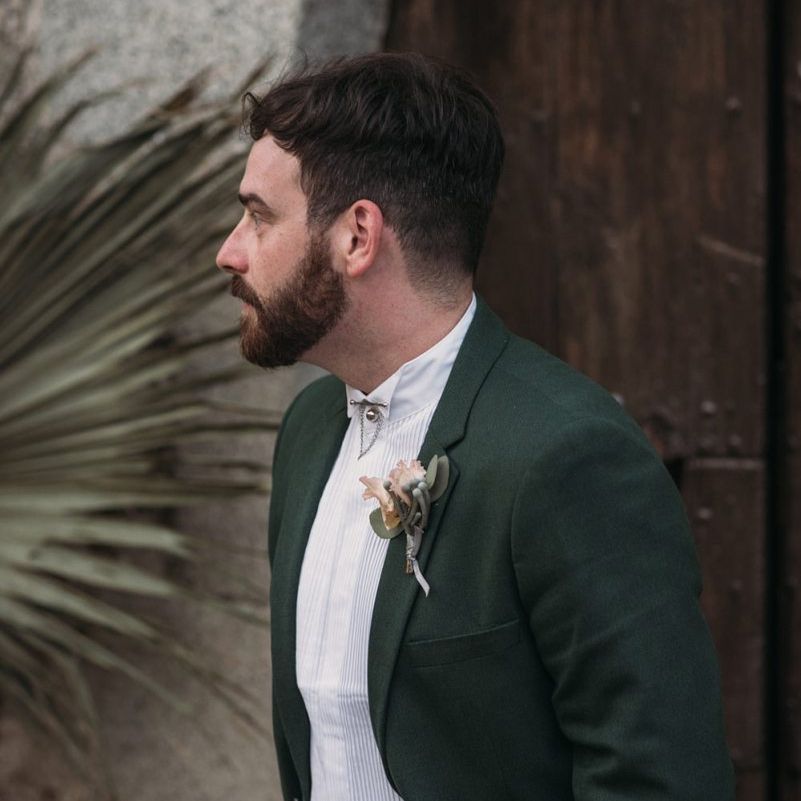 It was a family wedding, very emotional and relaxed. All the details are handmade for us and our guests really appreciated it. We change the normal order of a wedding and receive our guests with a tropical look for the welcome cocktail. Then we went to change our look and entered the ceremony with our groom suits that nobody had seen. The songs made written especially for us. And our singer friend Carola was the one who officiated the ceremony.