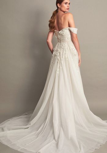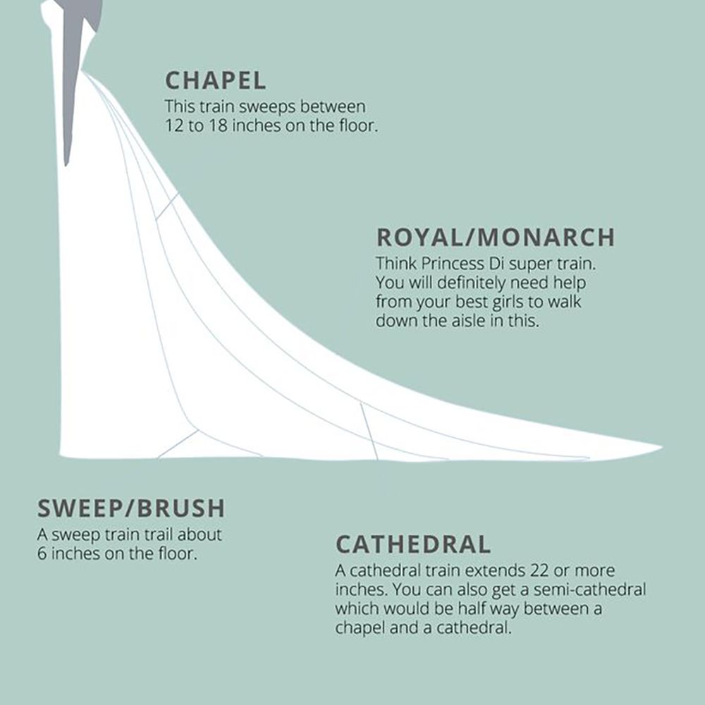 guide to the different wedding dress train lengths, including cathedral, sweep, chapel, etc.