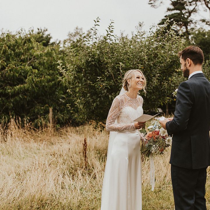 Meeting each other in the orchard before the ceremony was incredibly special. It was private and personal, and it meant we could read our vows to each other that had all of the inside jokes and anecdotes we wanted! Our main ceremony was also very special and our officiants were brilliant and so kind! It was still personal but concise and chilled. Our guests really appreciated the personal messages at their place, and I felt that these were better than wedding favours as they took them home. Having friends and family attend from all over the world meant so much!