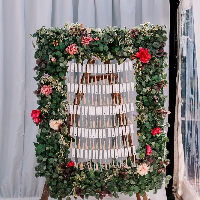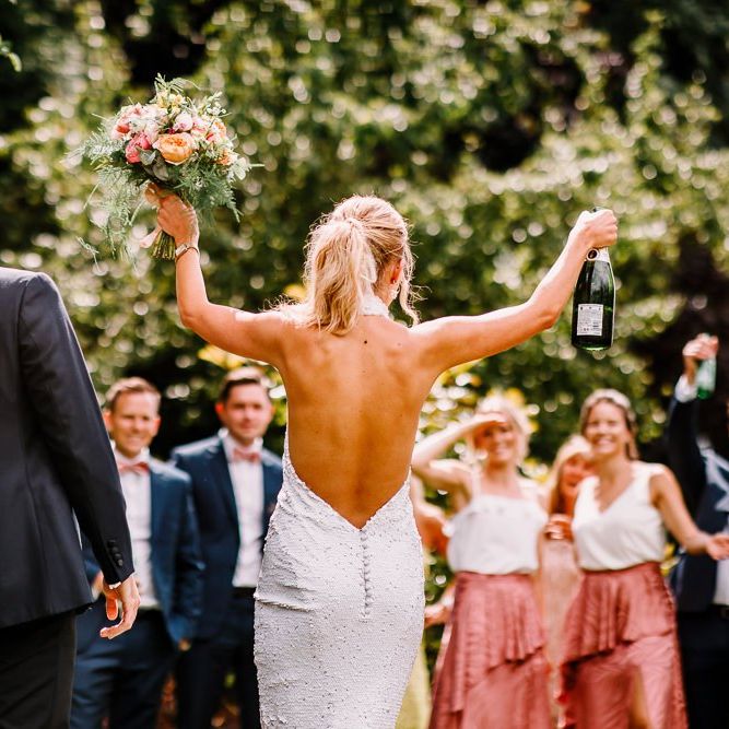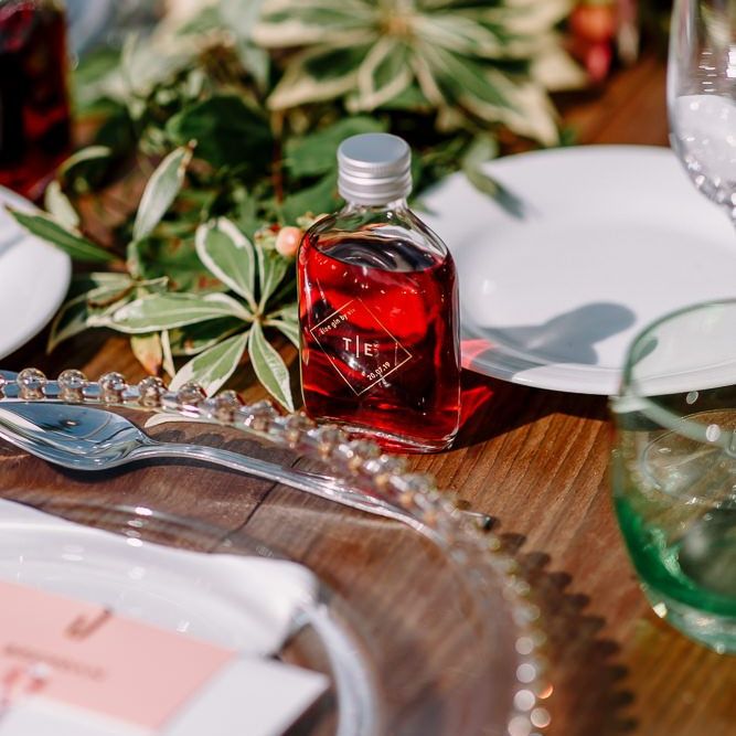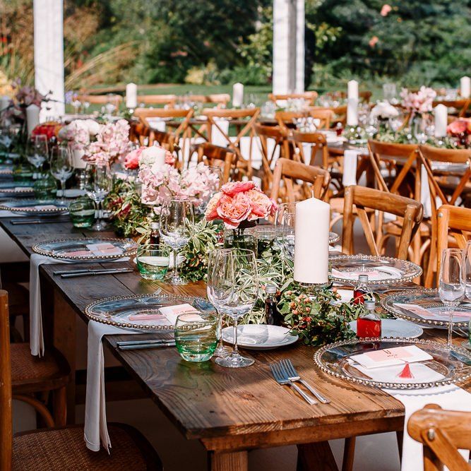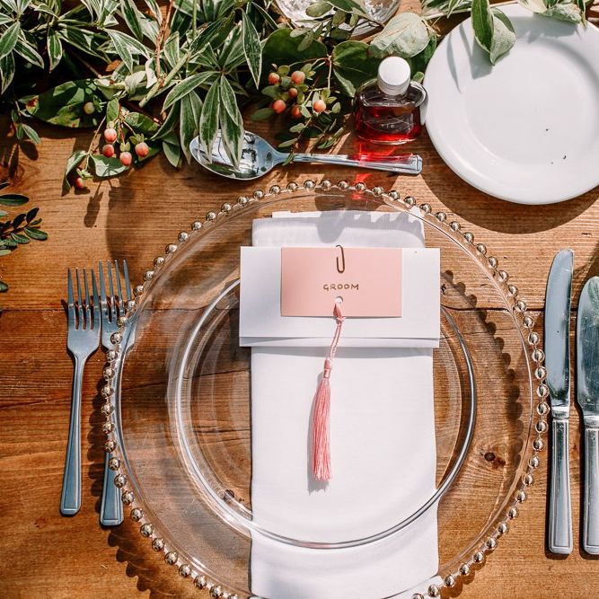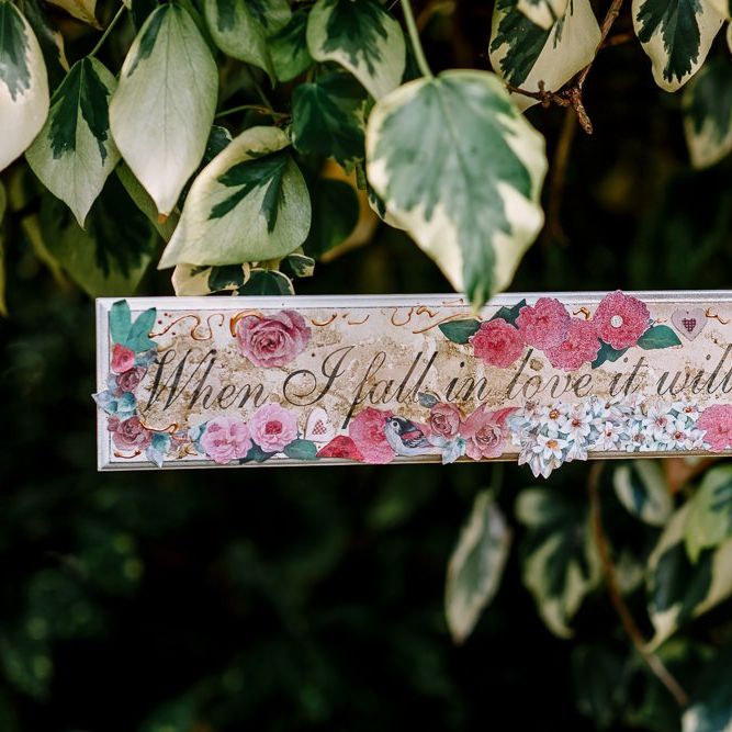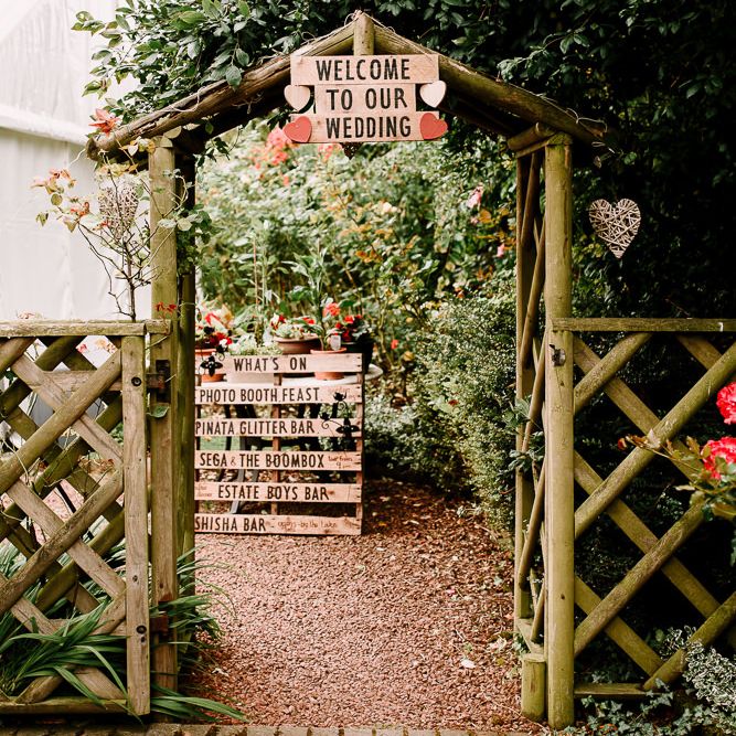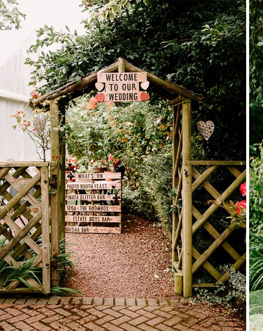 We wanted it to be very individual to us and completely filled with fun and an overall festival-vibe. We wanted to only keep the traditions that made sense to us and go against the usual formula where we could. Visually, we also wanted to make it a luscious garden of Eden with a glass roofed marquee to make the most of the British summer. In terms of decorations, this was an ongoing project over the course of the whole year mainly by my mum and my aunt who managed to find everything from incredible huge candles and silver candle holders for the tables, to thousands of fairy lights for the bushes, to props for the photo booth, to old wood to create signposts with.