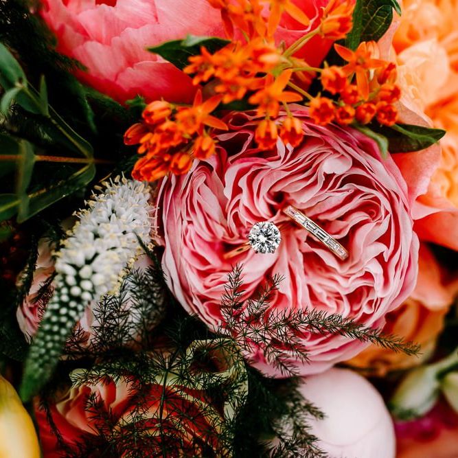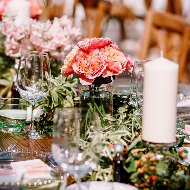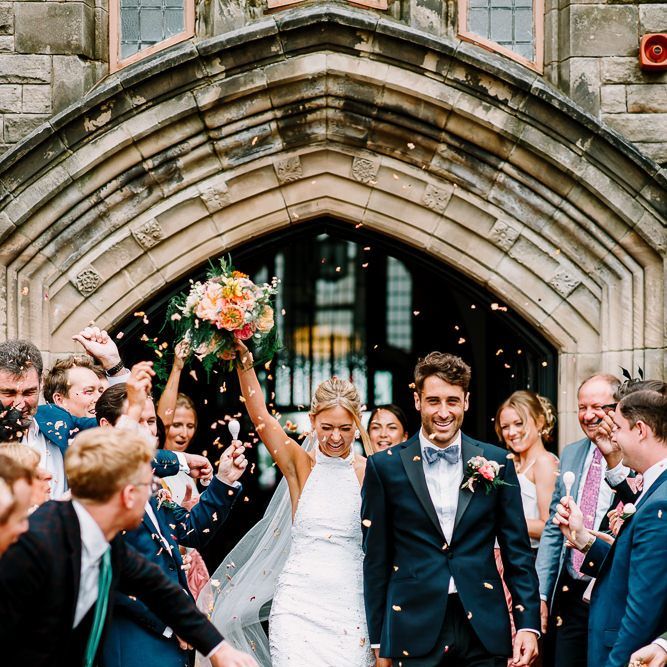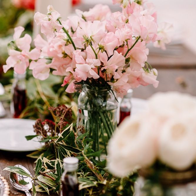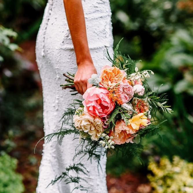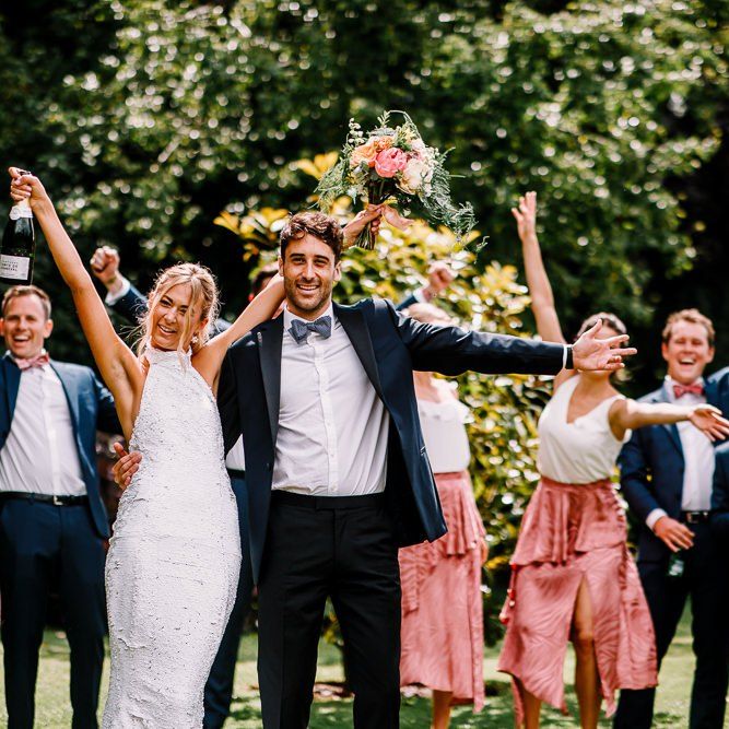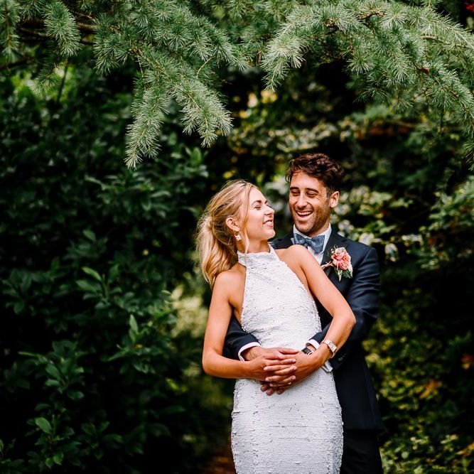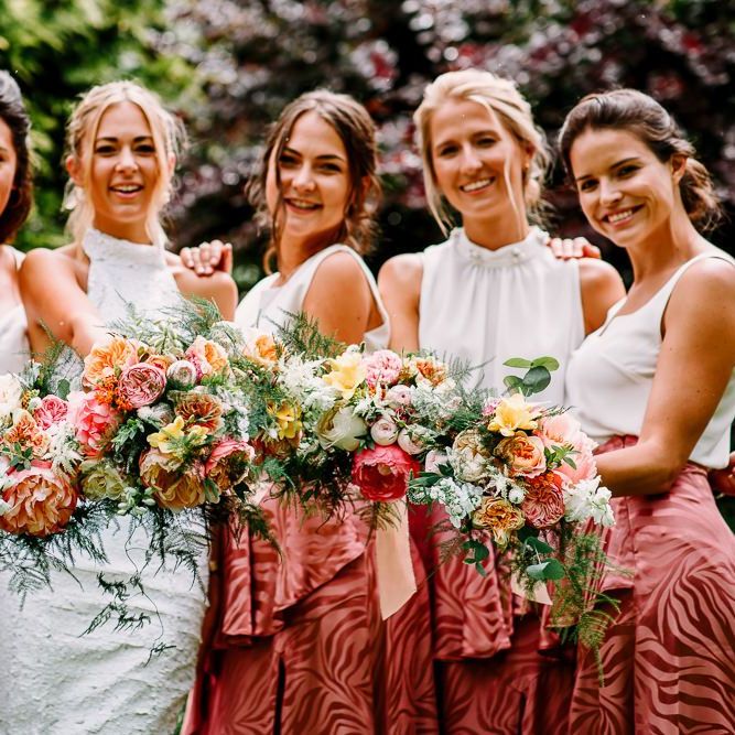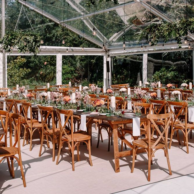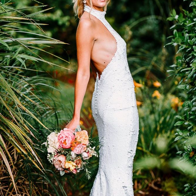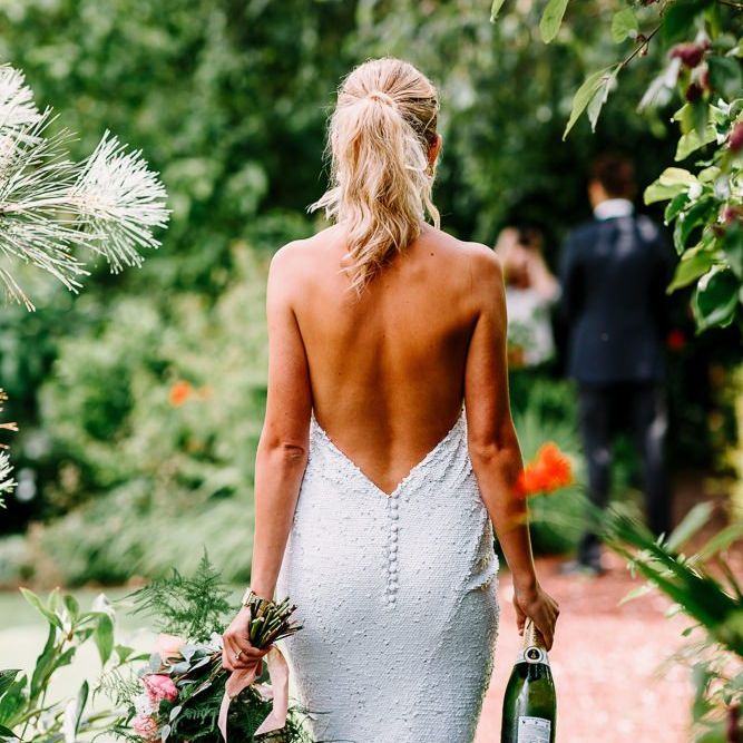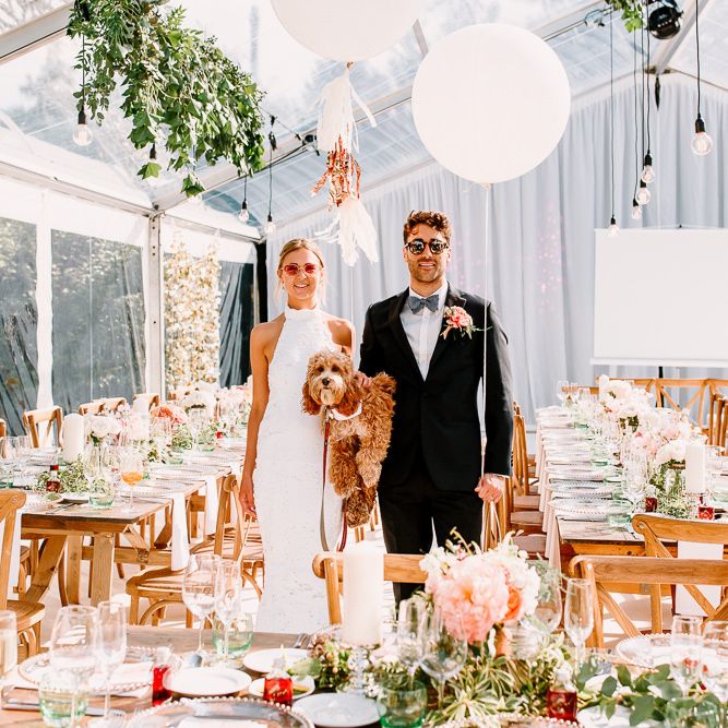 "Having a garden wedding gave us complete control to make the day unique. It’s an unusually shaped garden with different pockets and flowers to explore on various levels so we knew (thanks to my parents gardening) it would create a tropical paradise in the midst of the Peak District! The glass-roof marquee was bespoke to fit the odd shape of the house but it worked and kept the space light, bright and merged within the outdoors. We also went wild with our decorations including a speakeasy late night bar, kissing booth, huge glitter station and piñata tree." - Ellie & Tony