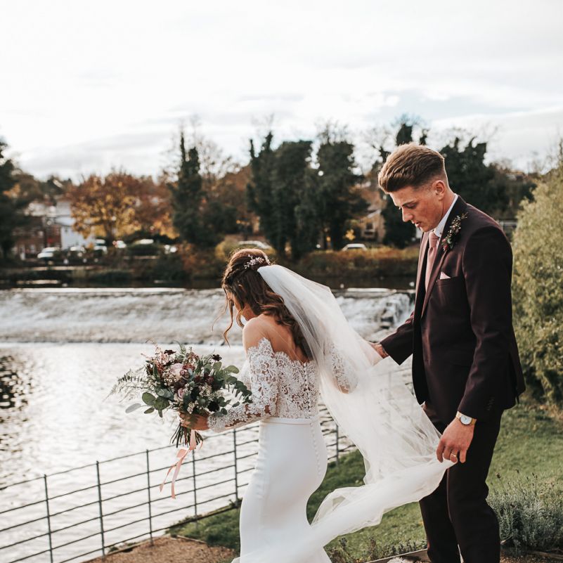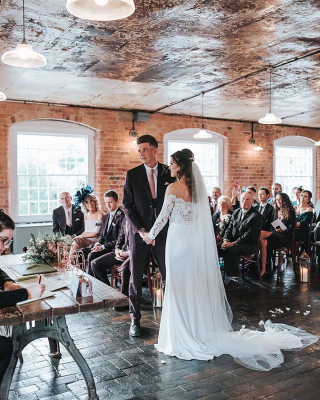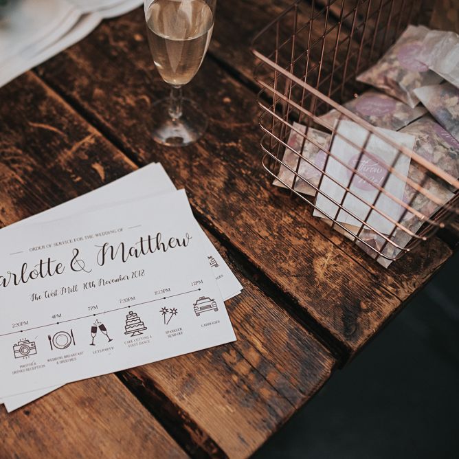 The West Mill already has a great vibe that we knew suited us, and our initial thoughts for the styling. We liked the industrial feel and loved The West Mill so knew we didn't need much styling but used this as a starting point. We really wanted our day to be unique to us and show our personalities, so we tried to do a lot of it ourselves. As Matt is a Gas engineer we wanted to create the table numbers and seating plan out of copper pipe, we tied this together with copper lanterns, glass lightbulbs filled with copper lights and candles for centrepieces. I also made the menus, seating plan and table plan and the homemade fudge favours.