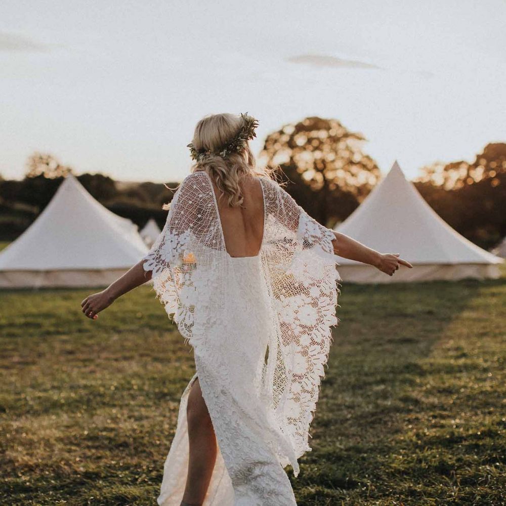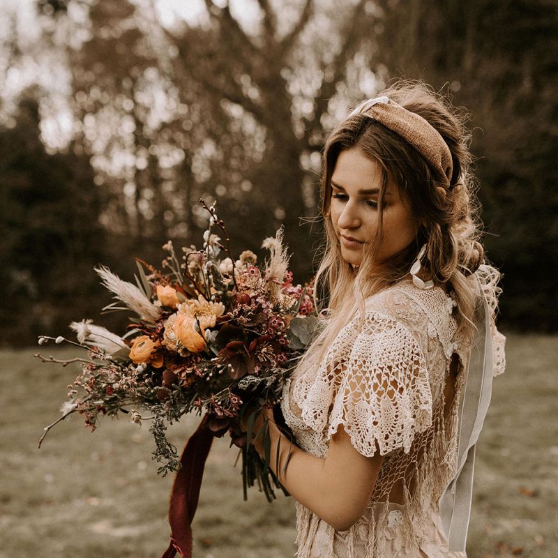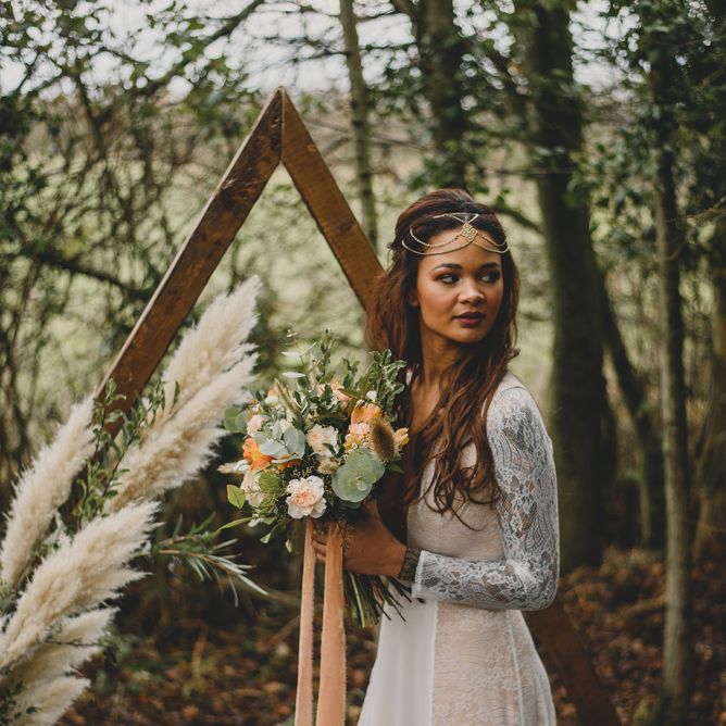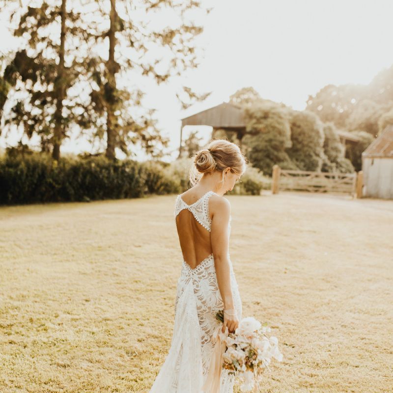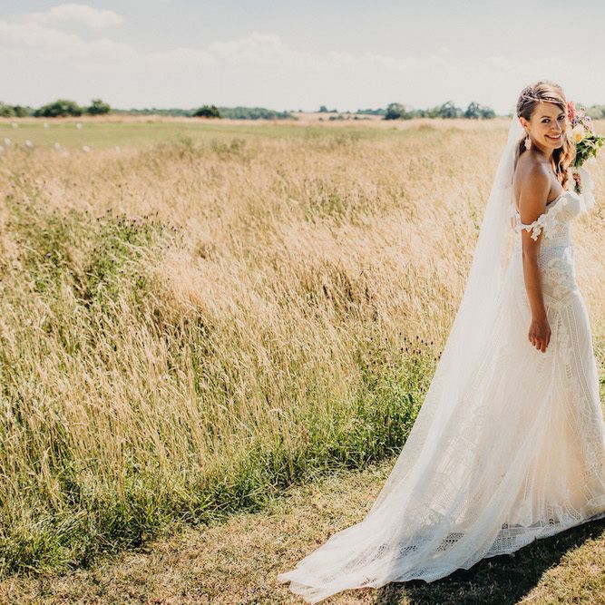 Boho Style Wedding Inspiration at Patrick's Barn Sussex with Lace Wedding Dress