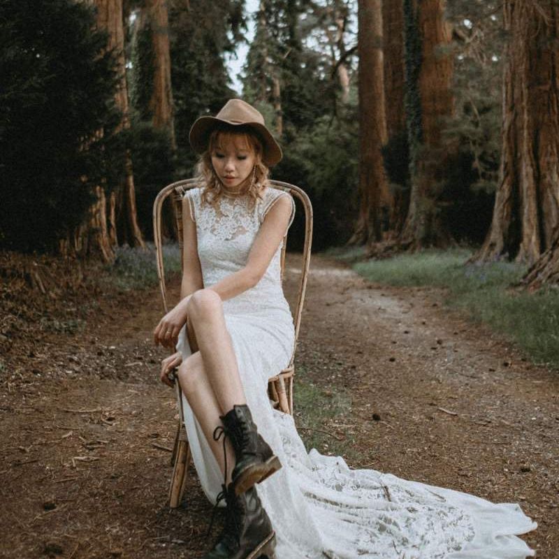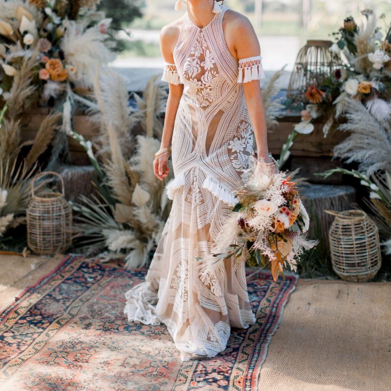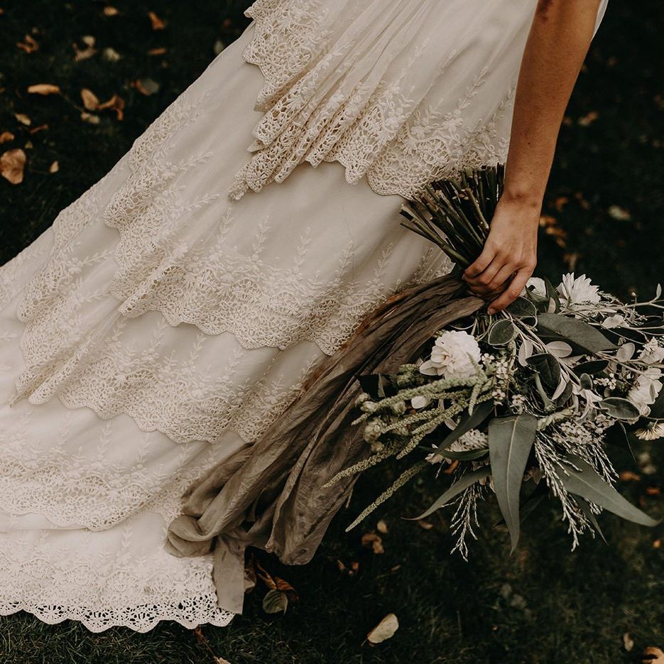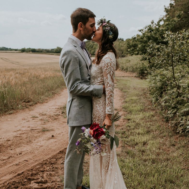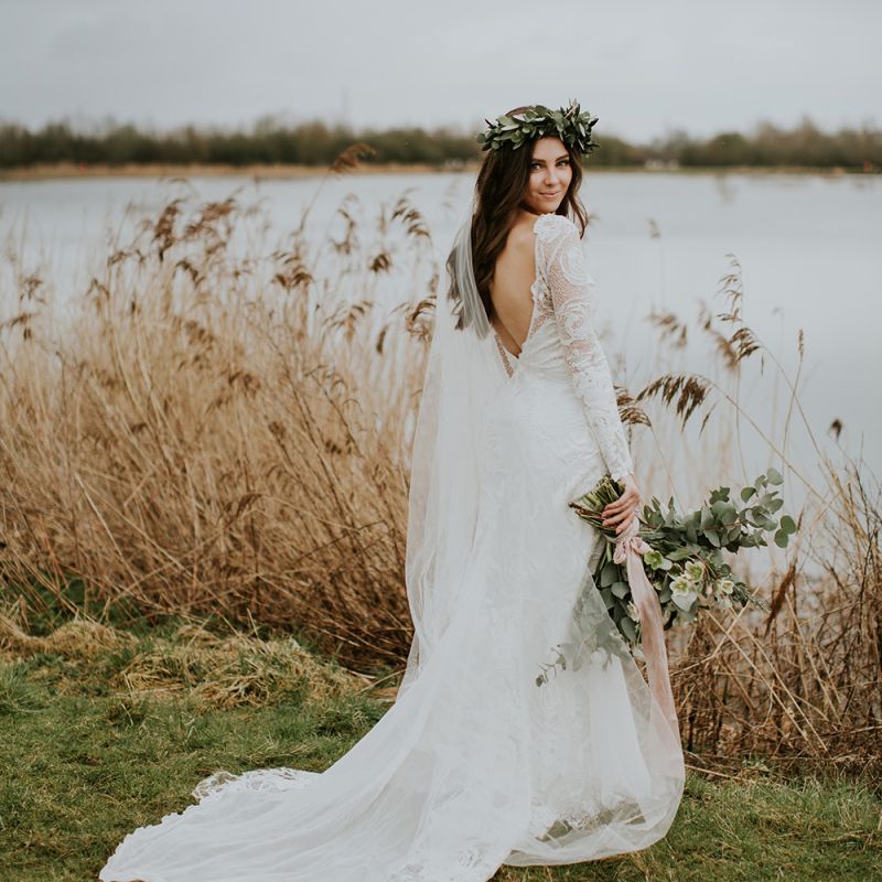 Boho Style Wedding Inspiration at Patrick's Barn Sussex with Lace Wedding Dress