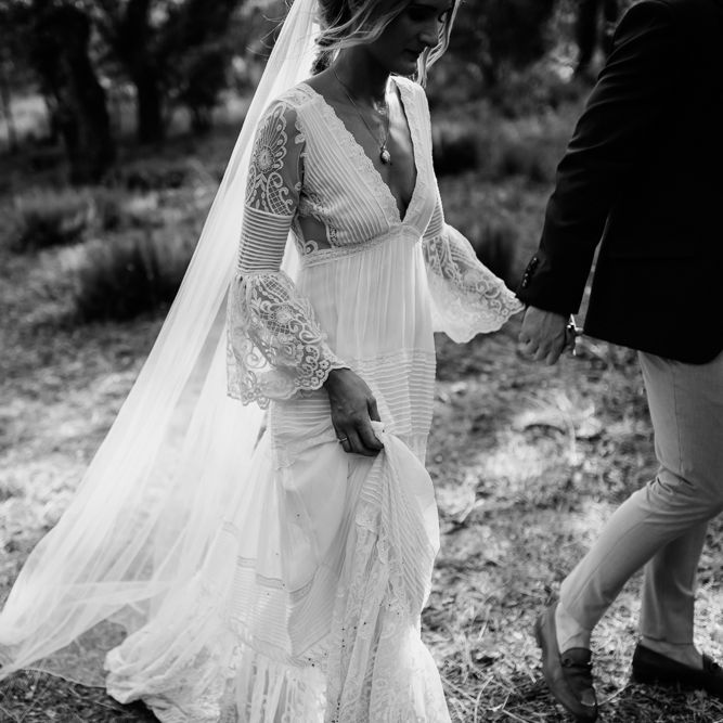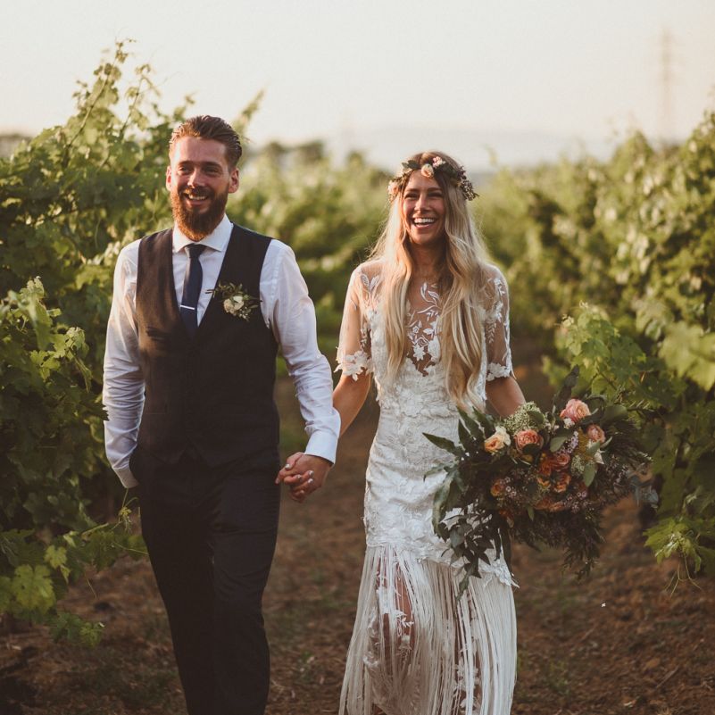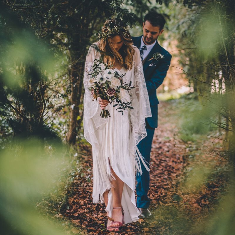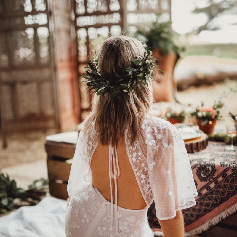 Boho Wedding with Bride in 'Grace Love Lace' Wedding Dress & Foliage Flower Crown