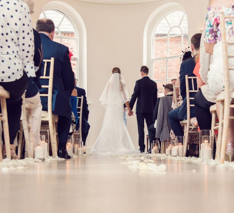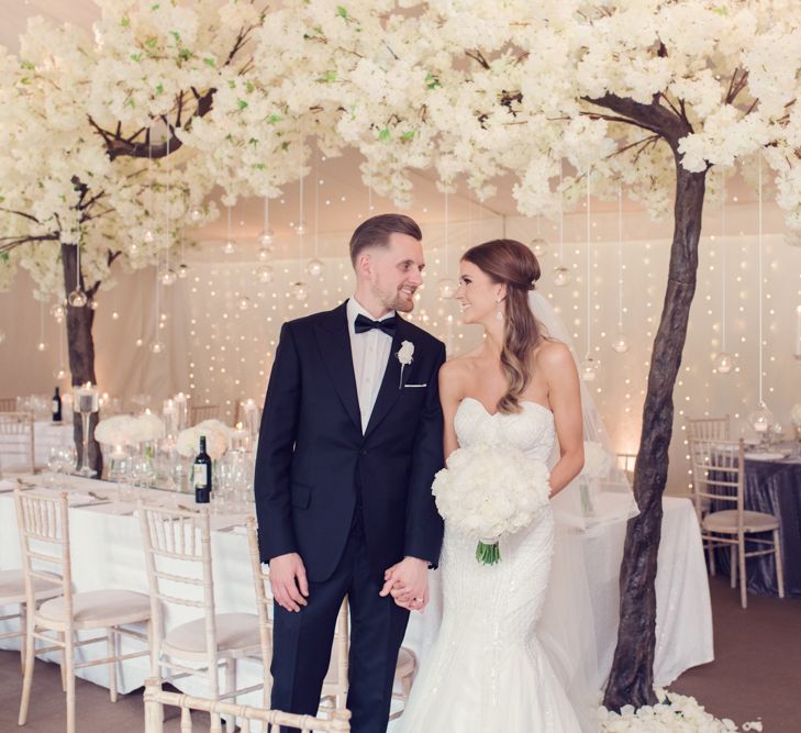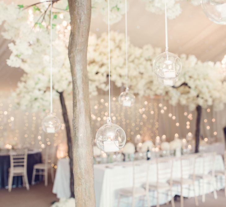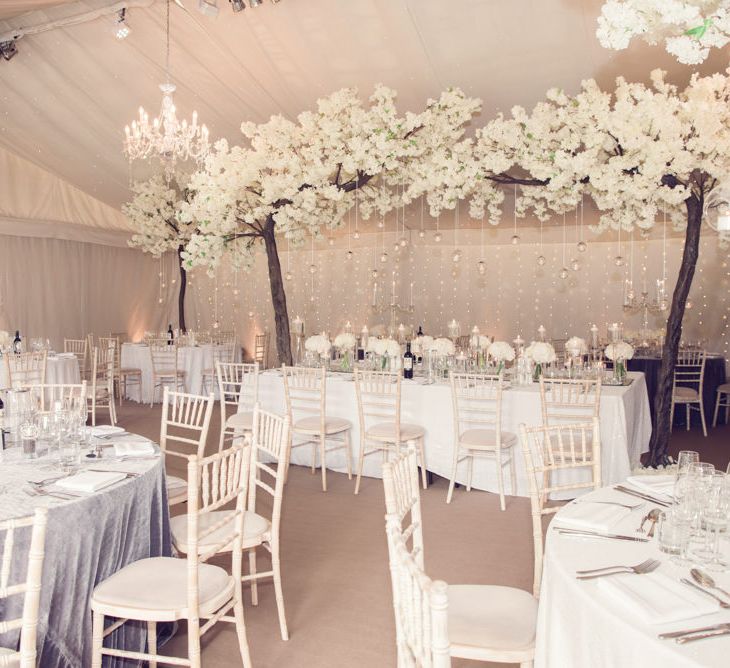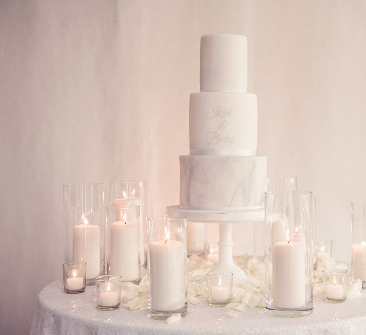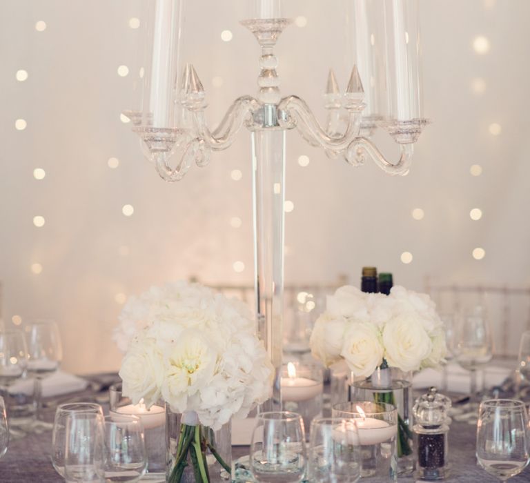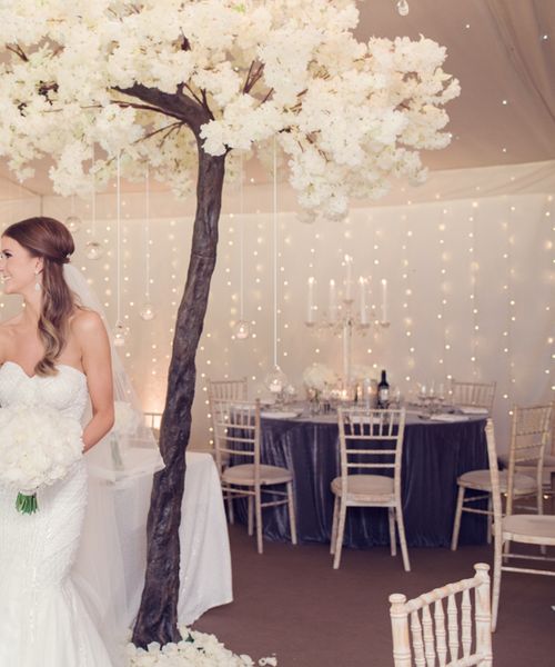 The styling of the day was one of the easiest parts. As we had a blank canvas in the marquee it was very exciting for myself and our amazing florist Kelly Louise to come up with some ideas, we decided on a grey & White theme keeping it classy but contemporary with masses of candles. As I work in the events industry I wanted the marquee to stand out and one of the ways we decided to do this was to move the top table into the centre of the room to make this a focal point.