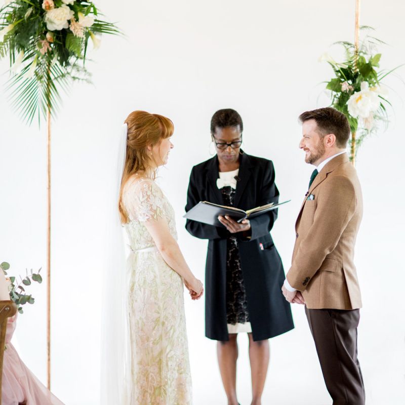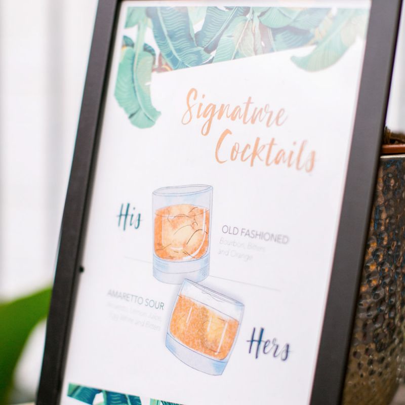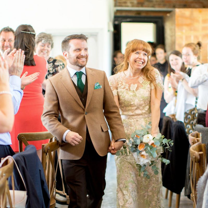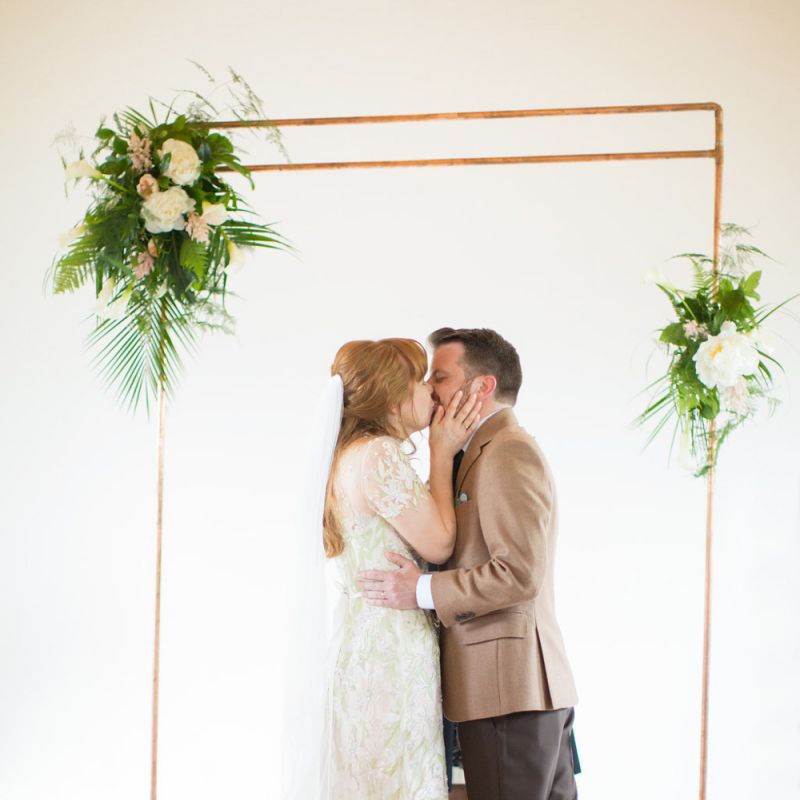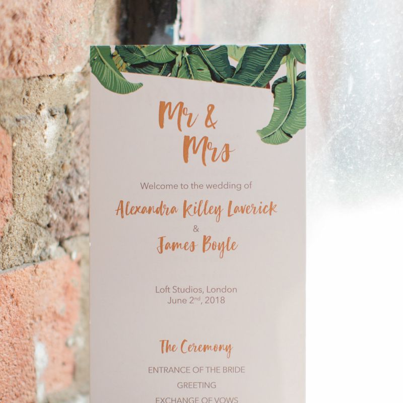 We've both lived independently in LA but built our relationship together in London so we wanted to celebrate our love for both places in a modern, welcoming way that was relaxed & intimate; we were determined to combine unexpected touches with details that people would instantly recognise as us. We featured palm trees wherever we could, embraced the warehouse beauty of bare bricks and natural light then filled the day with joy; from an old-school London cab arrival to succulents housed in copper terrariums and an easel timeline of our relationship, nothing was box-ticking and everything was personal.