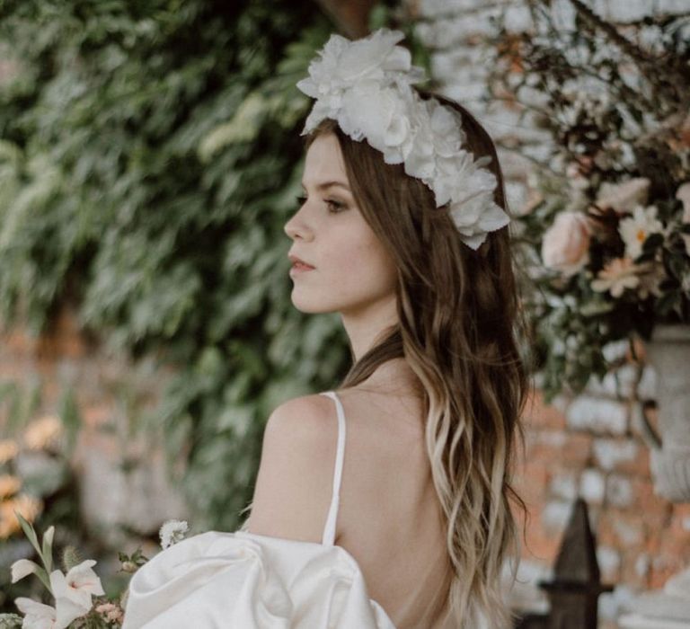 Emma Beaumont Puffed Sleeve Wedding Dress for an English Garden Themed Wedding at Combermere Abbey