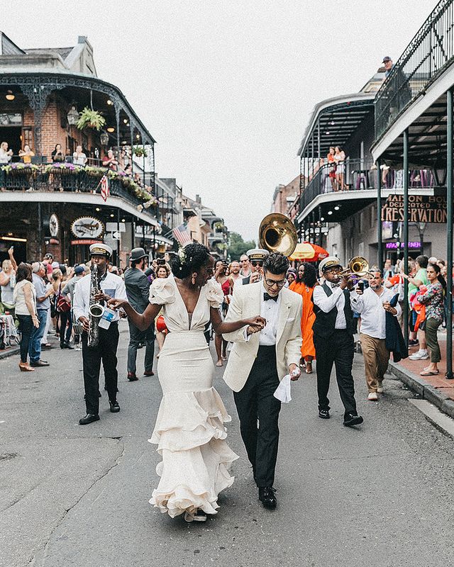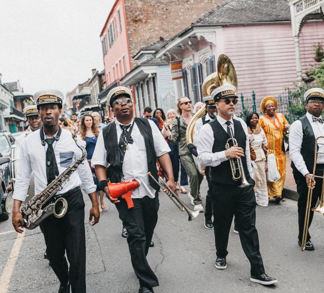 Well firstly we flew from London to New Orleans! Most of our guests had never been there before, but we fell in love with the city when we visited once before. Having a brass band playing us out of our wedding ceremony and onto our wedding ceremony venue, was pretty unique! We found our wedding planner Michelle Norwood, through one of the venues that we were going to book. She came highly recommended. Luckily she was pretty established and knew which suppliers would fit into our budget. We were mostly concerned with beignet cost-efficient but also proving our guests with a typical New Orleans experience. We were particularly adamant about the food being authentic Southern BBQ, which all our guests adored