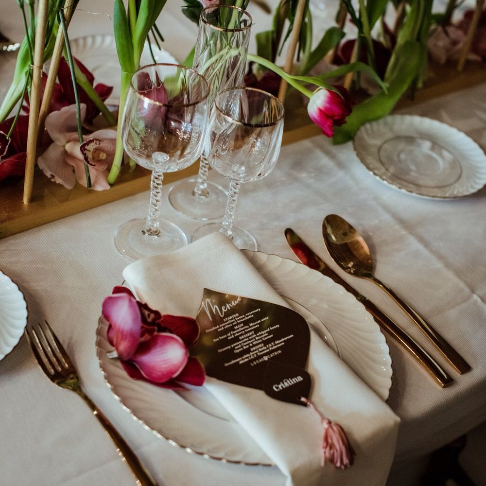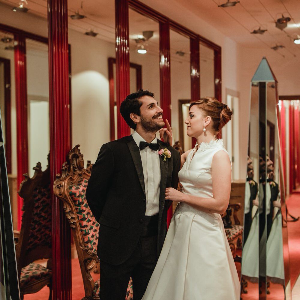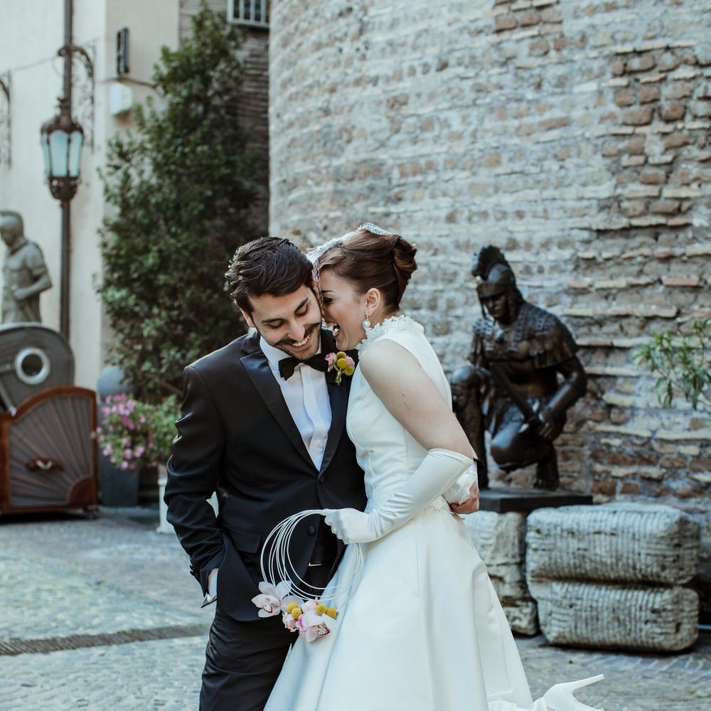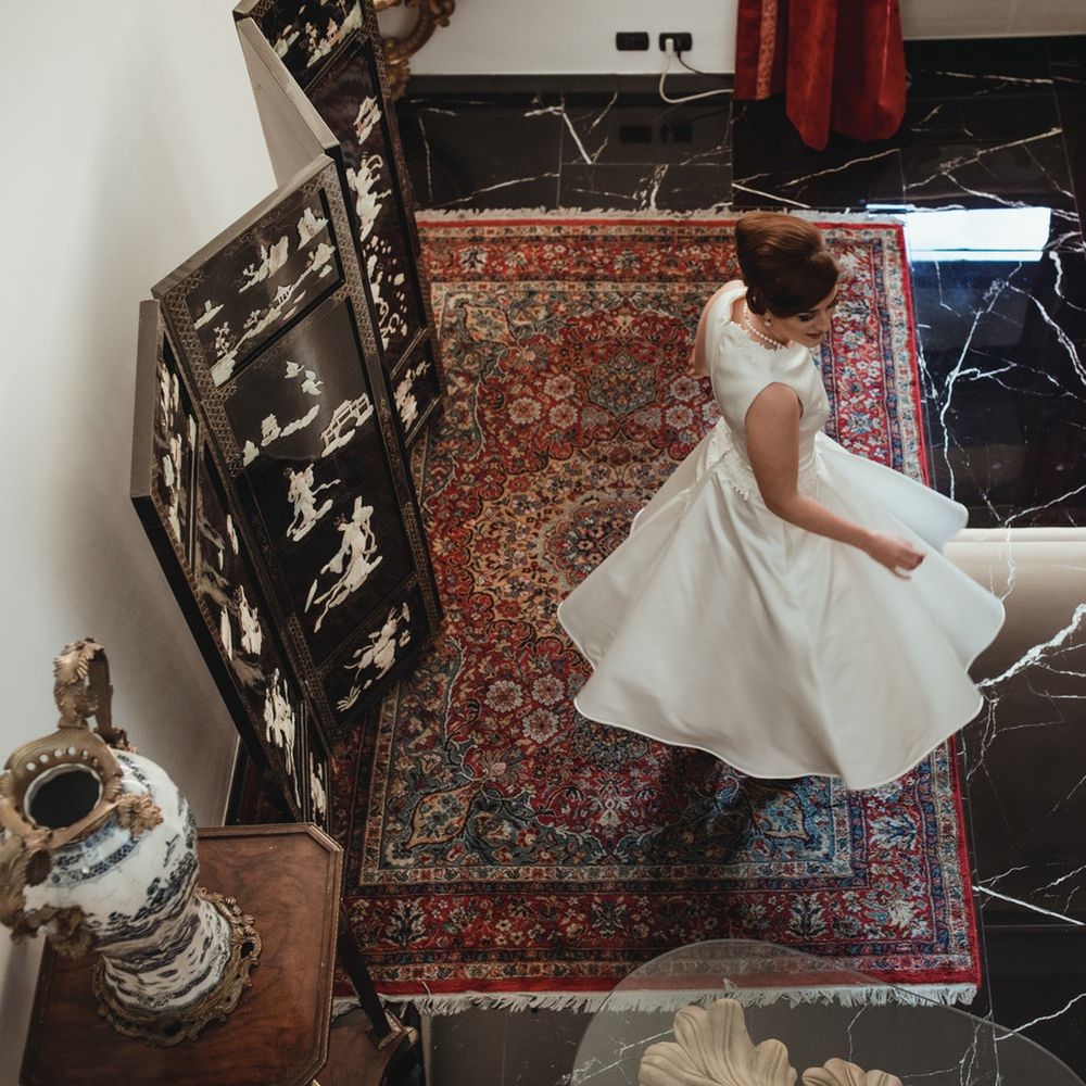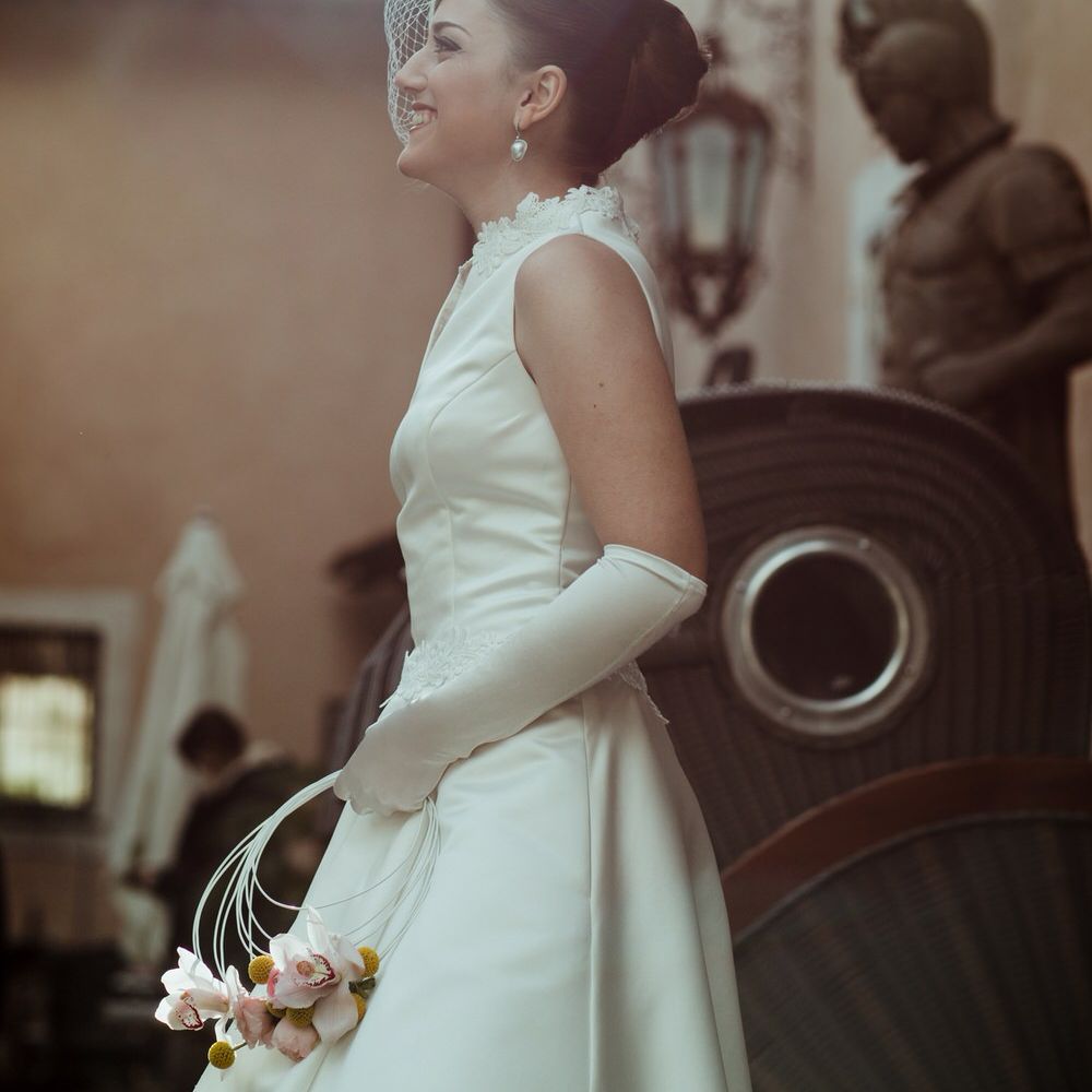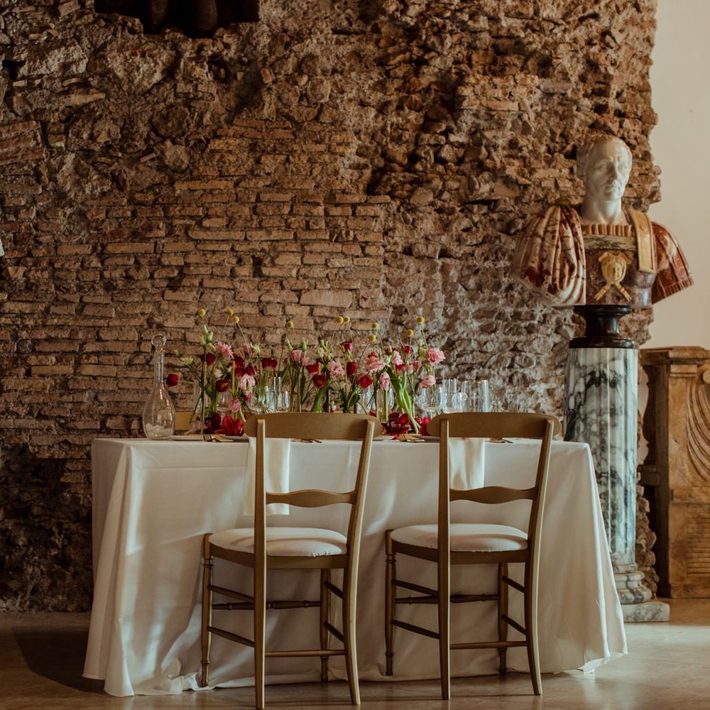 We found the photographer thanks to your vendors list, and decided to use all local vendors because we lived in Rome for our studies. Rome was also the city where Lucas proposed to me. From our invitations to our wedding dinner, everything was create exclusively for us. We loved sharing our vision with our suppliers. Maya of Missprint immeditately understood our needs and created the most beautiful stationery and favours for us and our guests. Our photographer Rosapaola was our perfect match because of her fun attitude and beautiful portfolio. Daniela at La Vie en Blanc Atelier had the perfect 60s vintage style wedding dress I wanted. Once she understood my vision she took care everything, choosing my elegant bridal shoes, gloves and hat with a veil. For our flowers, I loved the way Viviana took care of each detail. The asymmetrical wedding décor during the ceremony and the flowers on our dinner table were truly original.