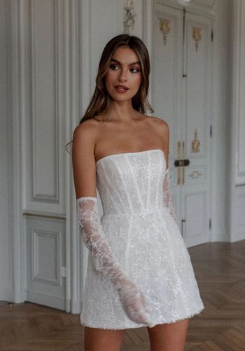 You can find almost any style of wedding dress for rent at By Rotation, from chic short wedding dresses to glam full-skirted gowns, but we’re taking a moment to highlight some of the best glitzy minis on offer.
