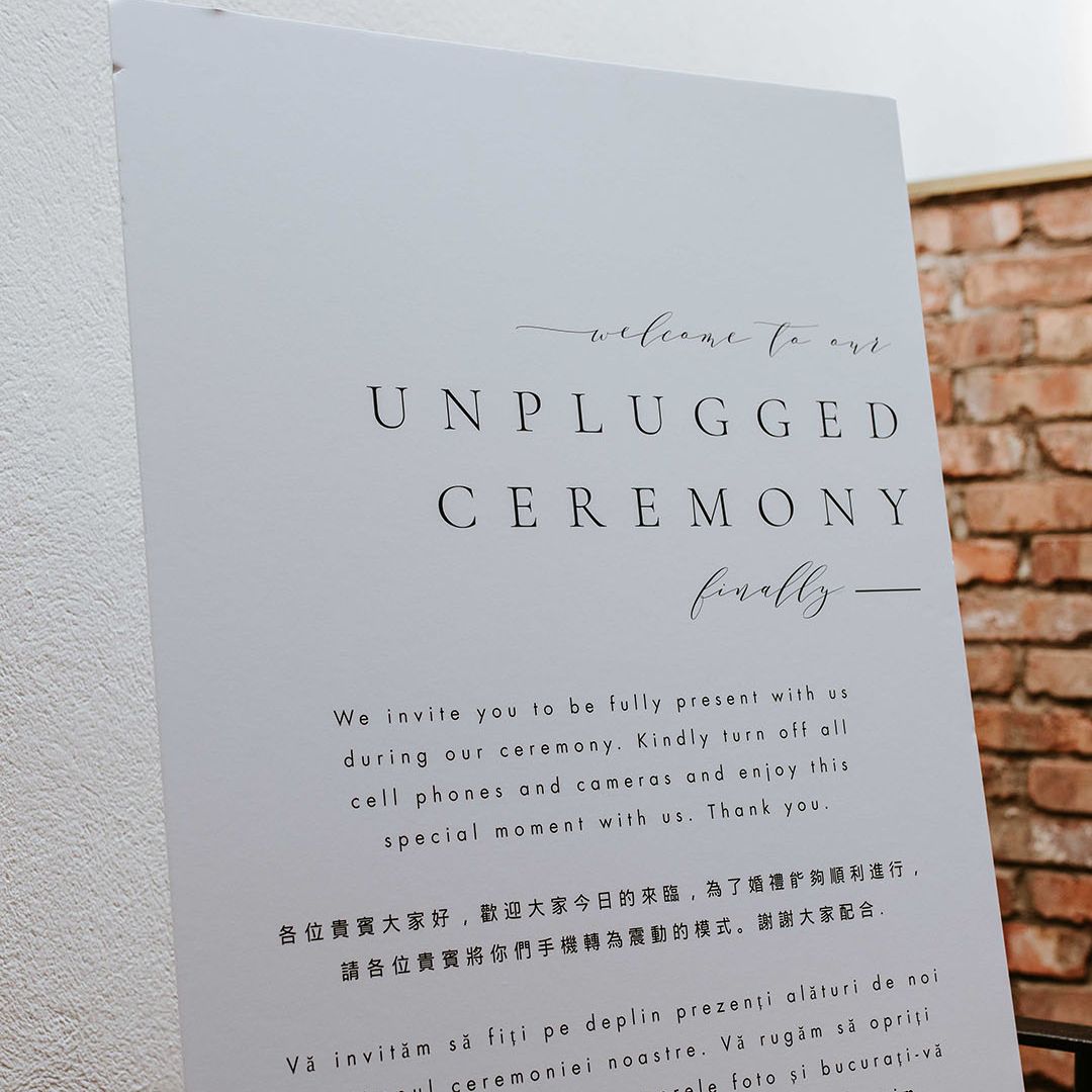 We’re seeing a rise in ‘unplugged ceremony’ signs, which make it clear that phones and screens are to be kept out of sight.