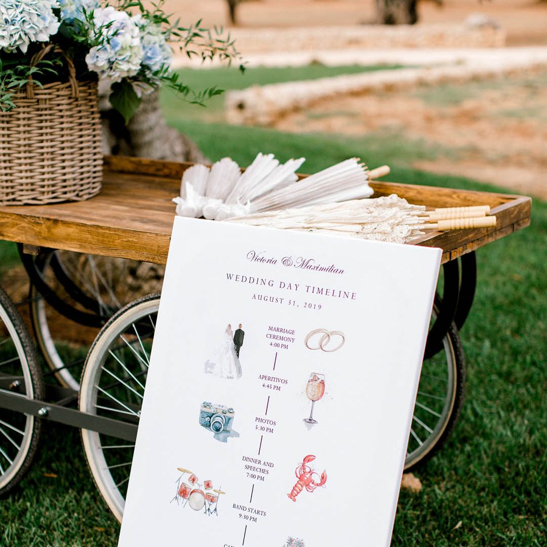 An order of the day sign is such a useful detail - it helps guests understand the flow of the day and keeps things running smoothly. And a seating plan sign is essential. It’s often one of the first things guests see, and when done simply and elegantly, it really helps set the tone for the celebration.