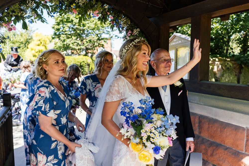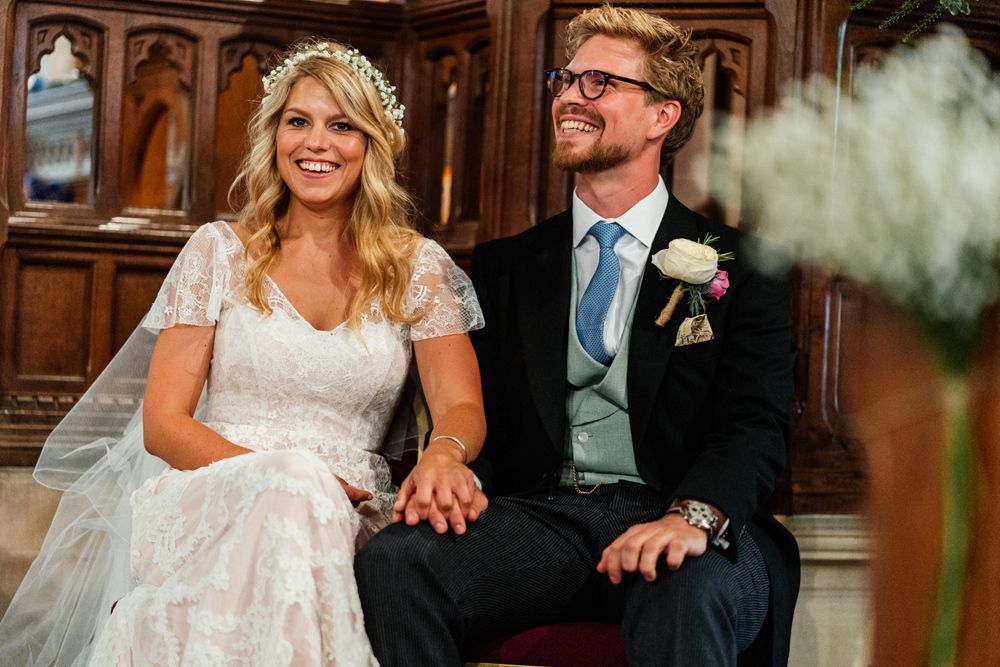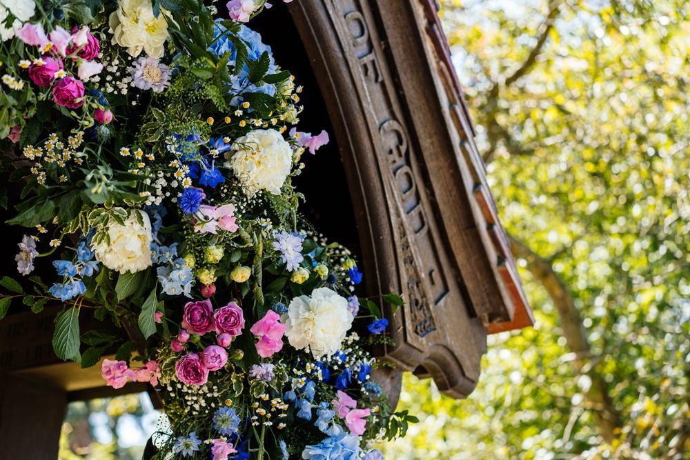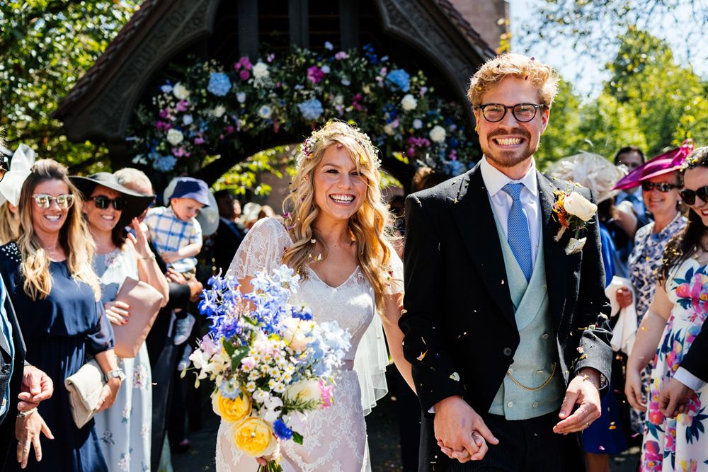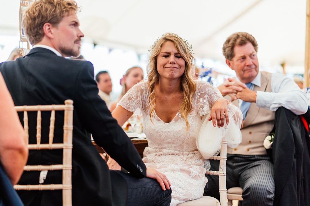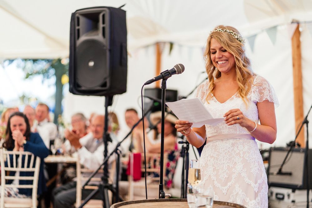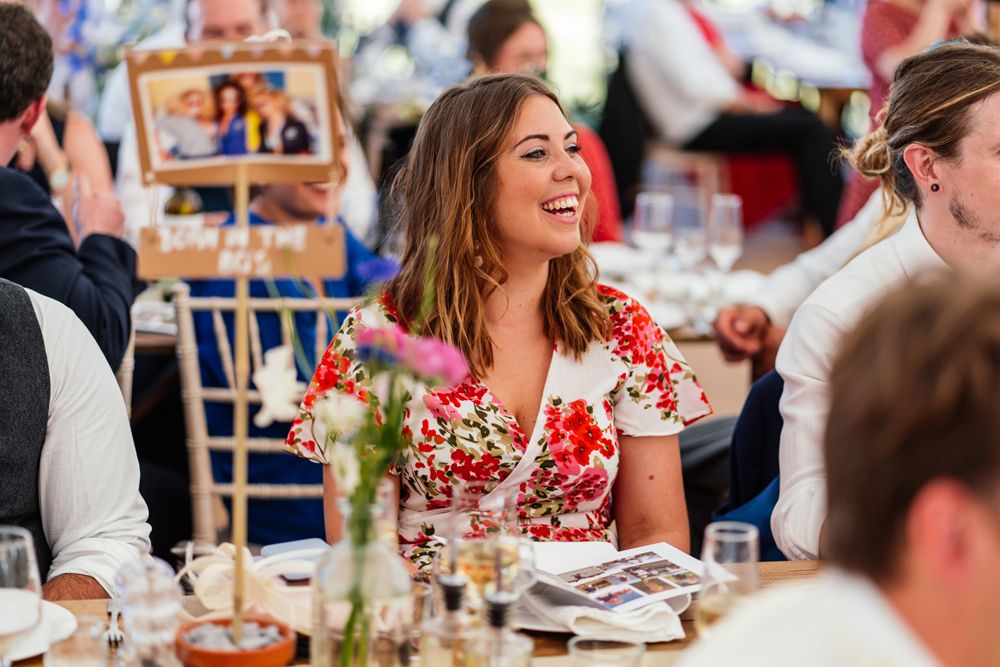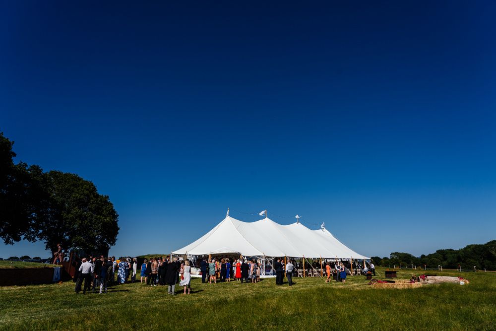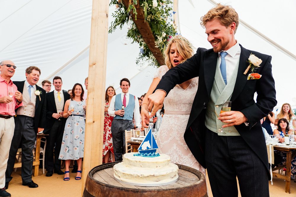 Our wedding planning started with a doodle of a little horse in a boat. Alex's family love sailing and the sea, and Lottie grew up at Berriewood, a riding stables in landlocked Shropshire! As well as being good procrastination this picture illustrated the coming together of our two worlds, and that turned into our little emblem! To continue the boat theme we would describe the vibe as “flotsam and jetsam” because we floated all of our ideas out there to consider… and then just decided to keep them all instead of having a specific theme. So it was a big old mix of horses, boats, fancy dress, wildflowers, delicious food, loads of booze, great music, glitter and a pair of shot skis for good measure!