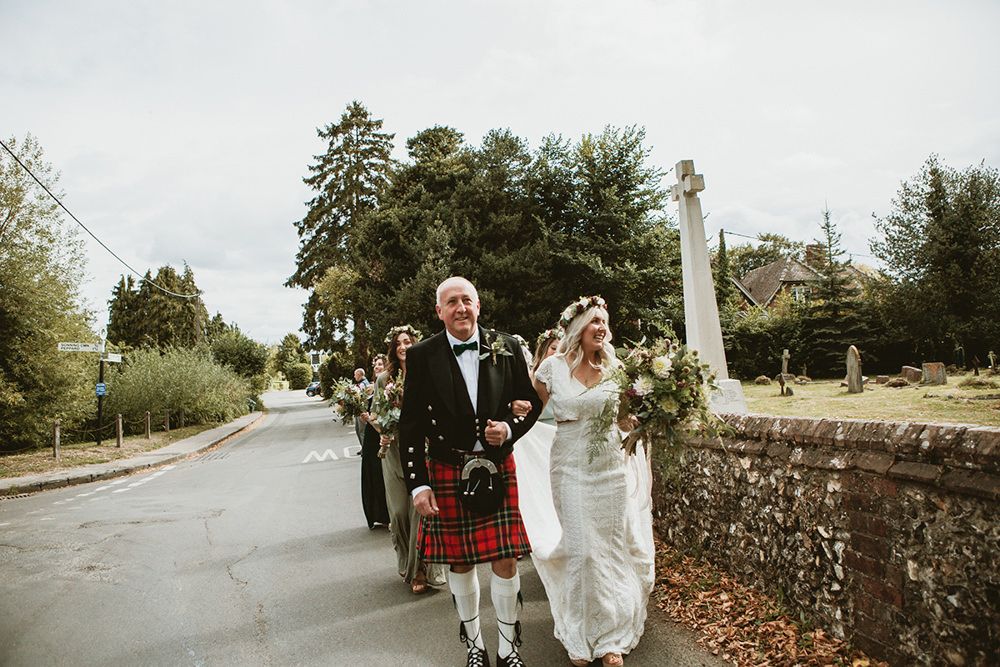 We had our ceremony in the village church next door to the primary school where we met 18 years ago. Walking through the village to the church with my bridal party, being greeted by lots of villagers who had come out to wave us along, felt very special. And I know its cliché, but seeing Will standing at the bottom of the aisle was just everything I had ever wished and hoped for. After the ceremony, we drove to the reception in a VW campervan and stopped off for some quiet woodland photos, which was a wonderful way to appreciate the moment. Seeing our vision of the tipi tent coming together so perfectly – and the nonstop laughter from our guests – are also things we’ll never forget.