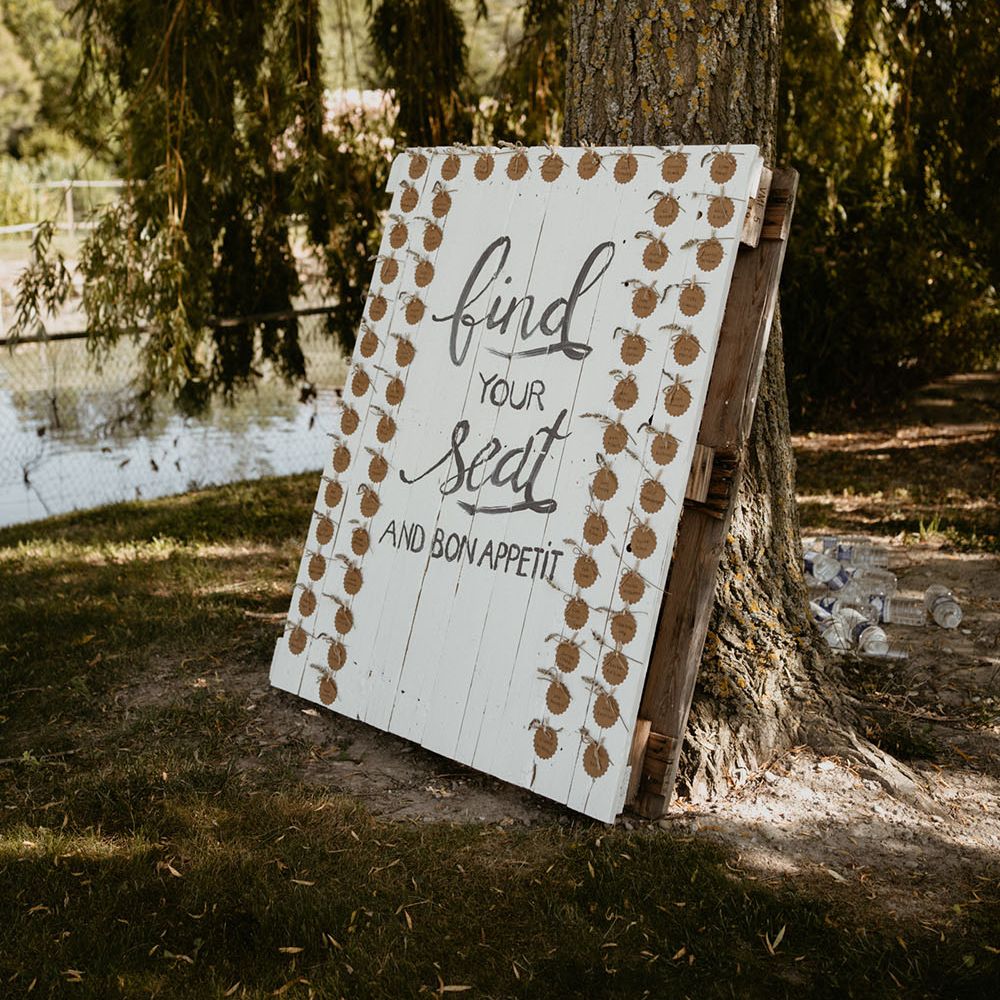 We made such special memories in the lead-up to our day. Our bar was made out of palettes from three vineyards. We also picked up all our wine from the vineyards in 3 car trips! Our friends all pitched in to make the seating plan sign. We made cocktails with our own designed labels and were even bartenders at the welcome dinner. It really was the most wonderful atmosphere.