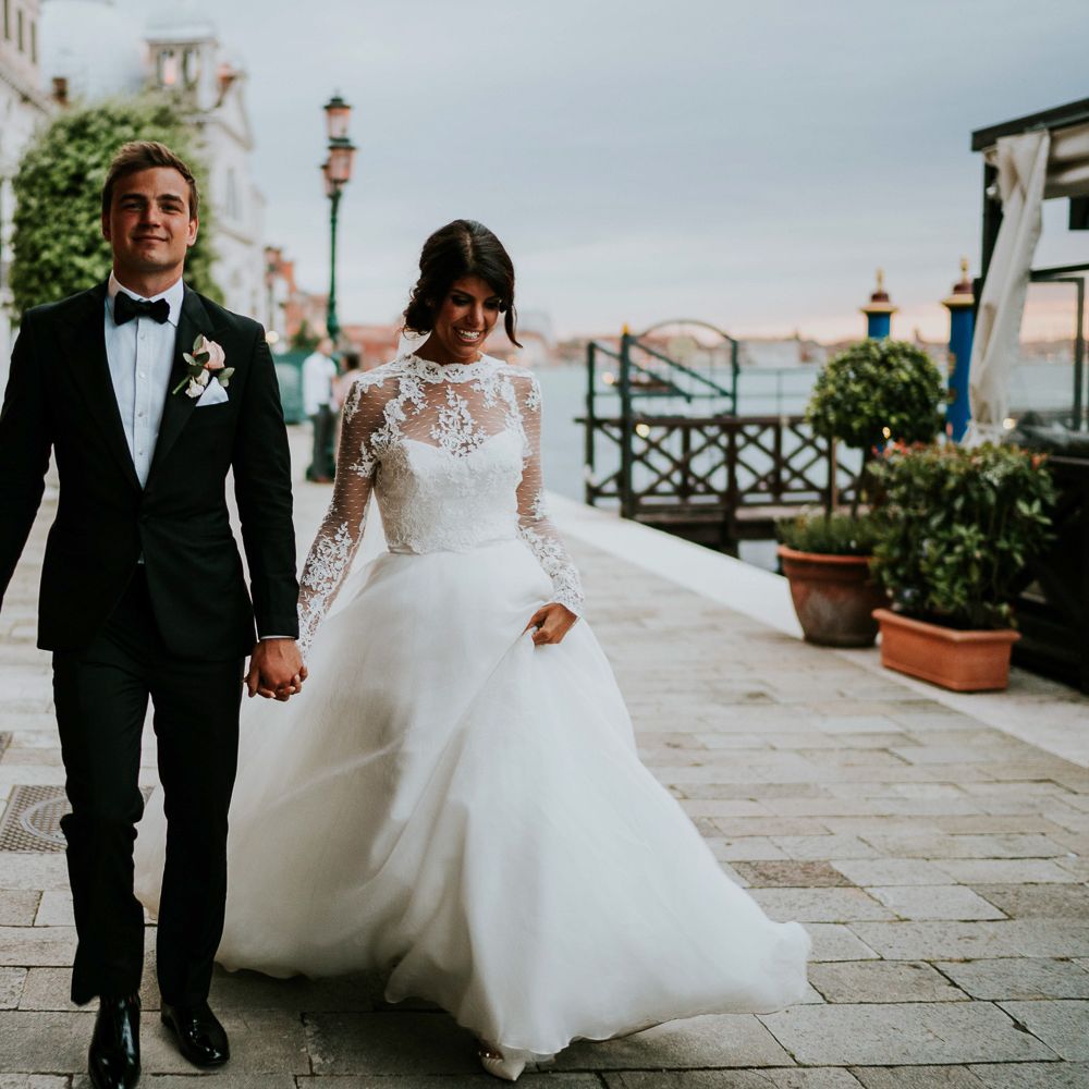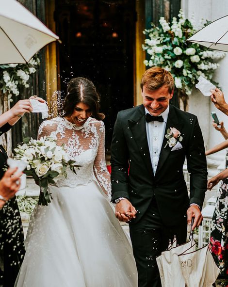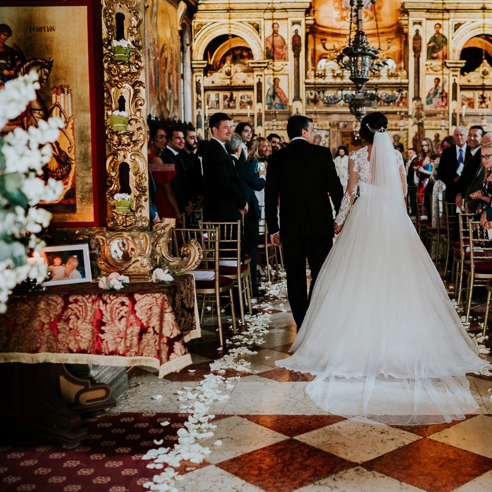 I tried on over 40 dresses in total – as I wanted to make the most of it! I knew I’d found my daytime dress when I saw the look on the faces of my mum and best friend. I felt like I was floating in a bridal bubble as soon as I put it on. My night dress was a showstopper – I felt like it was SO very me, before even seeing it in the mirror. I think a lot of guests expected me to show up to church in something like my Berta dress, so I enjoyed the element of surprise. Both dresses were from The Wedding Club in Knightsbridge.
