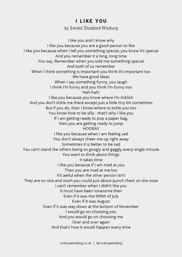 Then you're in the right place! You can download a free printable copy of I Like You by Sandol Stoddard Warburg down below.