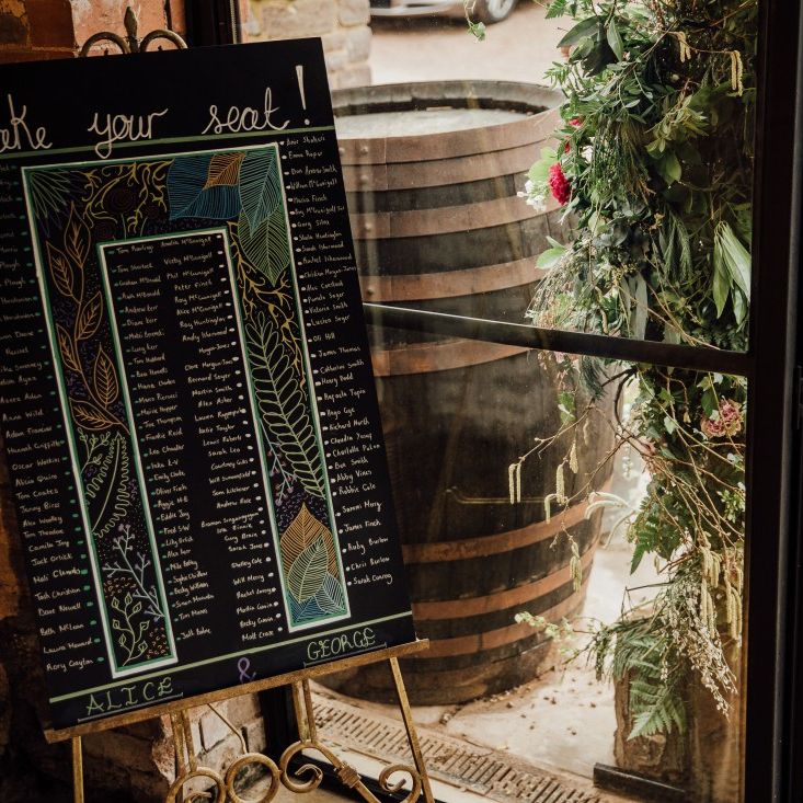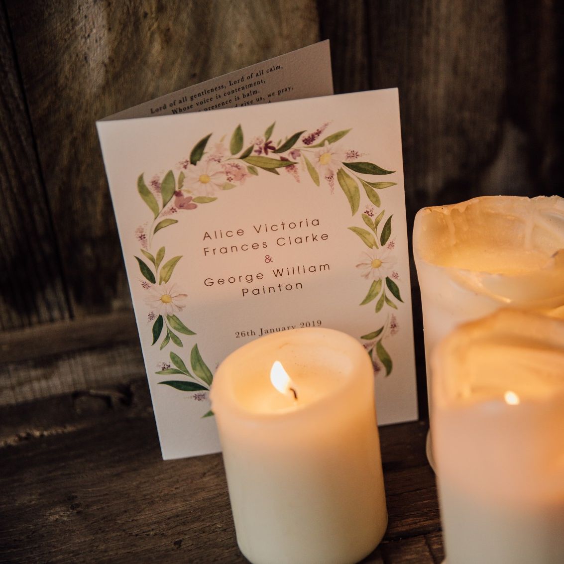 I put my art a-level to good use and designed the order of the day and the seating plan that would be displayed at the wedding. I certainly had some ‘Instagram vs Reality’ moments with some initial tries, but we got there in the end. We also loved the natural and rustic element of Dewsall Court and wanted to keep this alive by having all candles in vintage wine, spirit and medicine bottles. I am so pleased with how amazing this looked but it was a bit of a nightmare trying to get so many! Luckily trips to Chiswick and Pimlico car-boot sales proved fruitful and a very kind local pub donated a fair few to our cause. However, candles don’t fit in bottles so we set-up shop chiselling the bottom of the candles down so that they’d slot in. Not easy, but worth every minute.