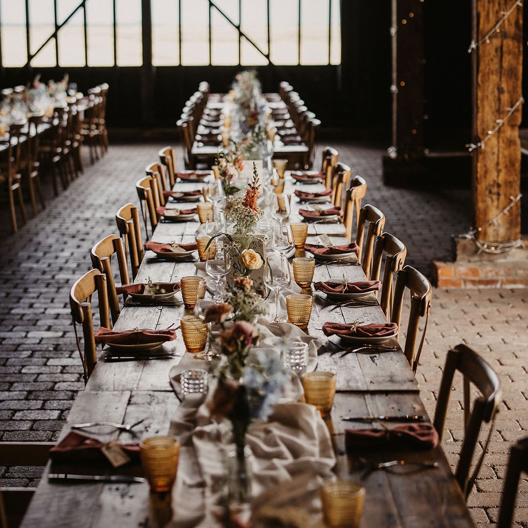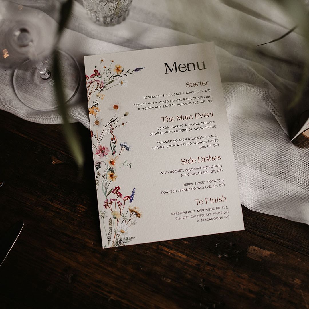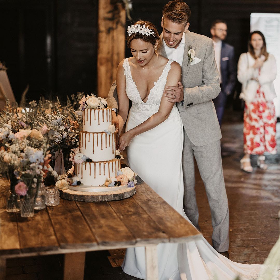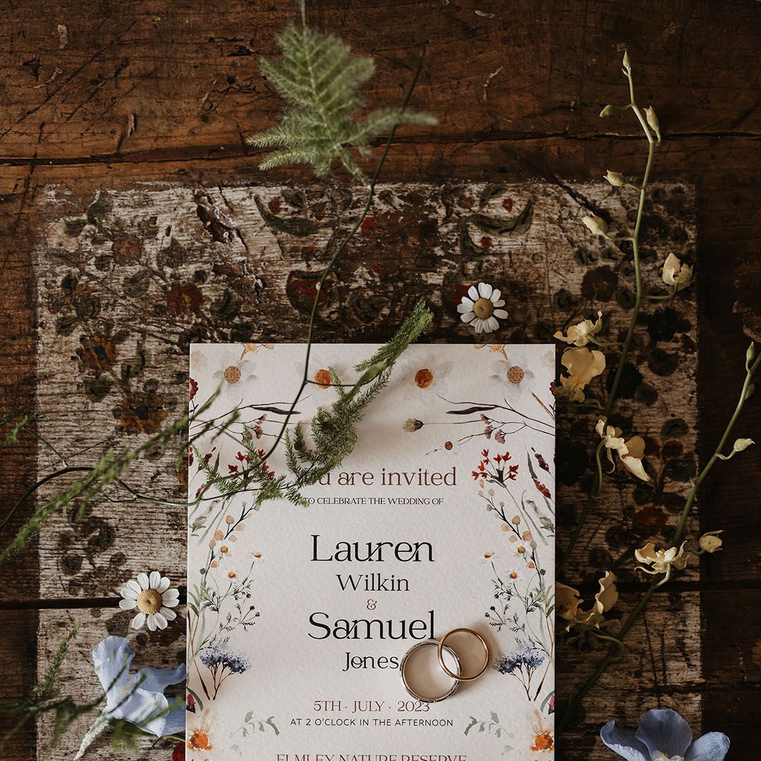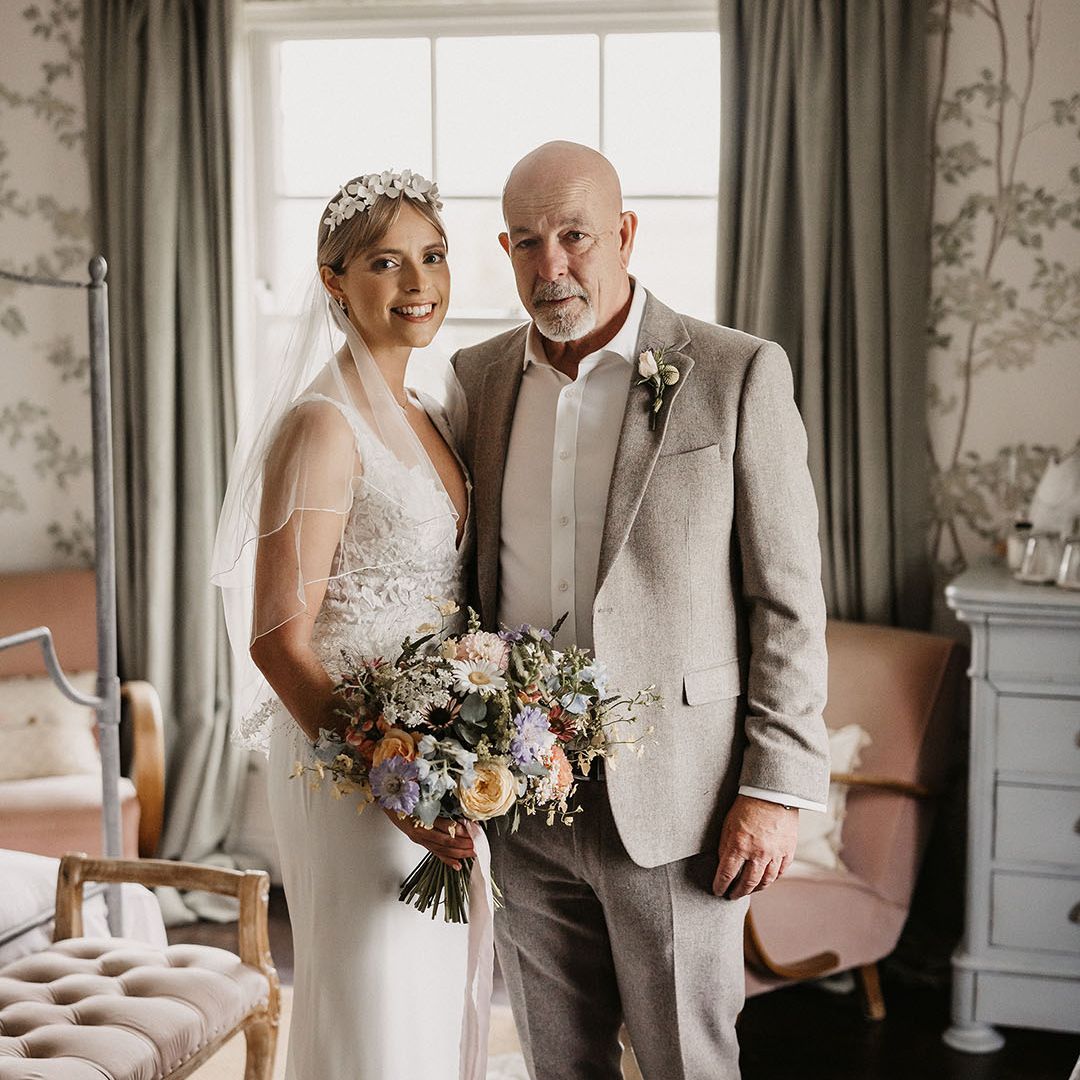 Lauren & Sam wanted their wedding to have a vibe that was a reflection of them, their interests and personalities. Their shared love of nature was a driving- force behind choosing the venue, with florals as the focal point of styling. The pastel blooms meant the rest of the decor was earthy with greens, amber and pinks. Sustainability-focused, Lauren & Sam ensured the blooms were reusable, moving them from ceremony to barn, bud vases for guests and pressing them post-wedding. Aisle flowers made perfect floor meadows at the end of each guest table and the ceremony meadows lined the front of the top table. Recommended Supplier, Moody Blooms, gave Lauren & Sam advice on how to press flowers from their arrangements to enjoy for years to come. Here’s what this fabulous florist has to say about wedding flowers.