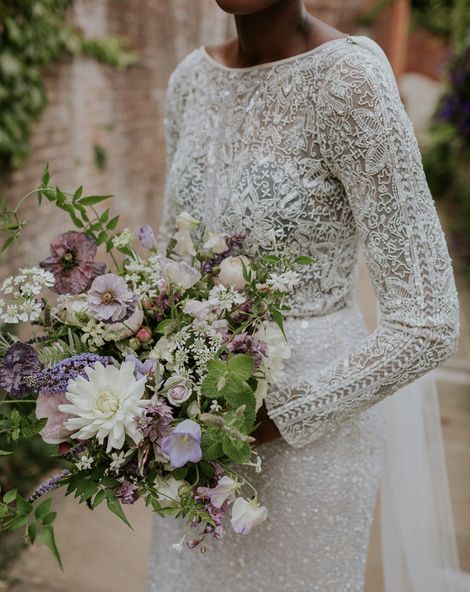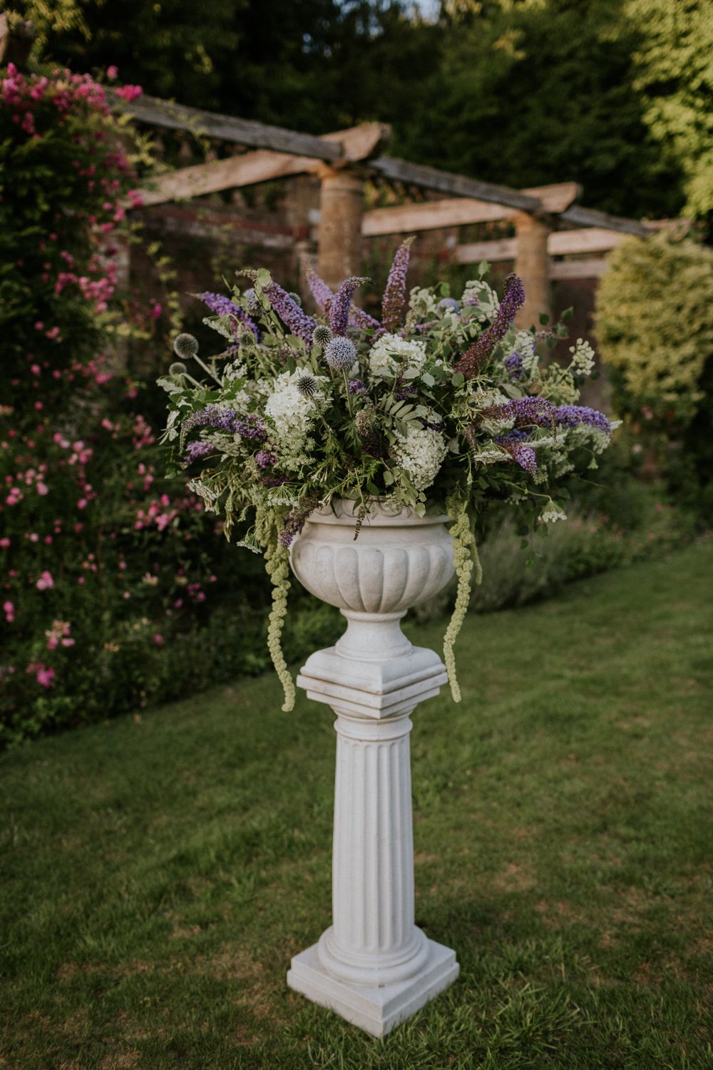 The flowers were chosen to be reminiscent of a long summer afternoon in Provence, with the scent of lavender & garden roses in the air. As such, I chose to use predominantly British flowers and foliage sourced from artisan local growers. The roses in the bouquet came from Wales and had that quintessential garden rose scent. Sweet peas, jasmine and mint also added to the summer fragrance.'Amazing Grey' Poppies were styled with longer stems for that 'just gathered' aesthetic. All of the flowers were arranged in water with no floral foam, I aim to keep my plastic use and flower air miles to a minimum